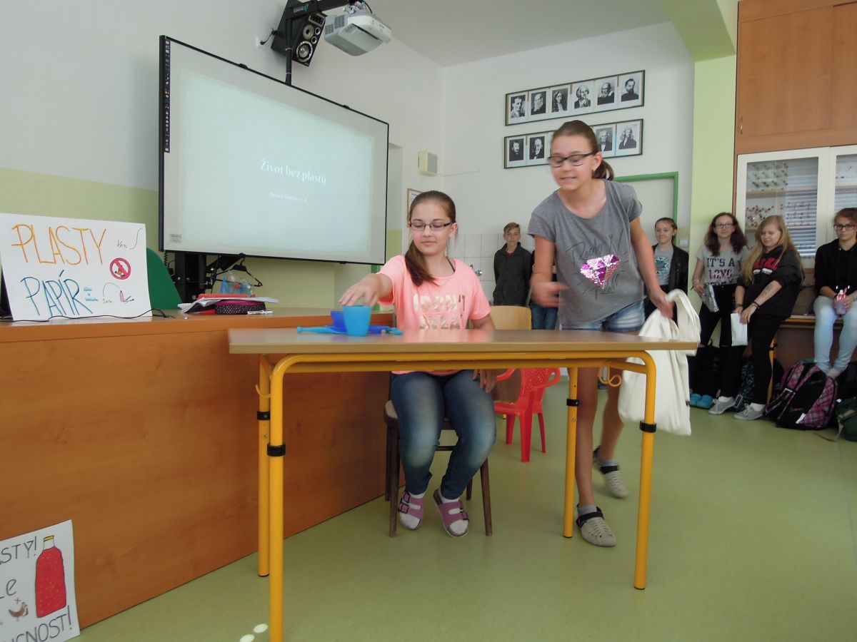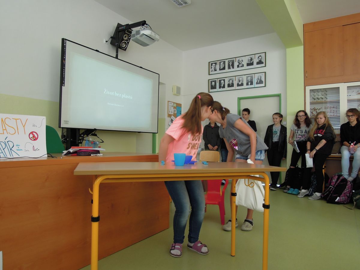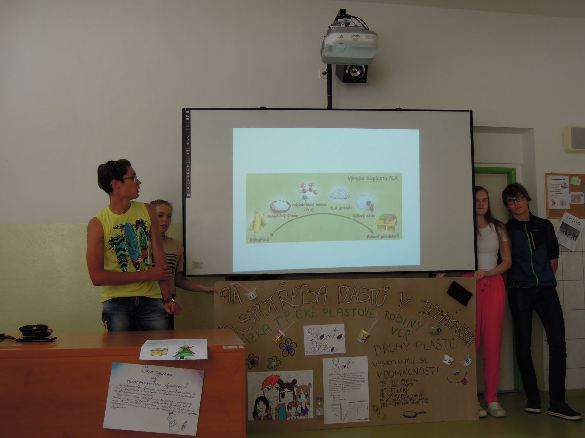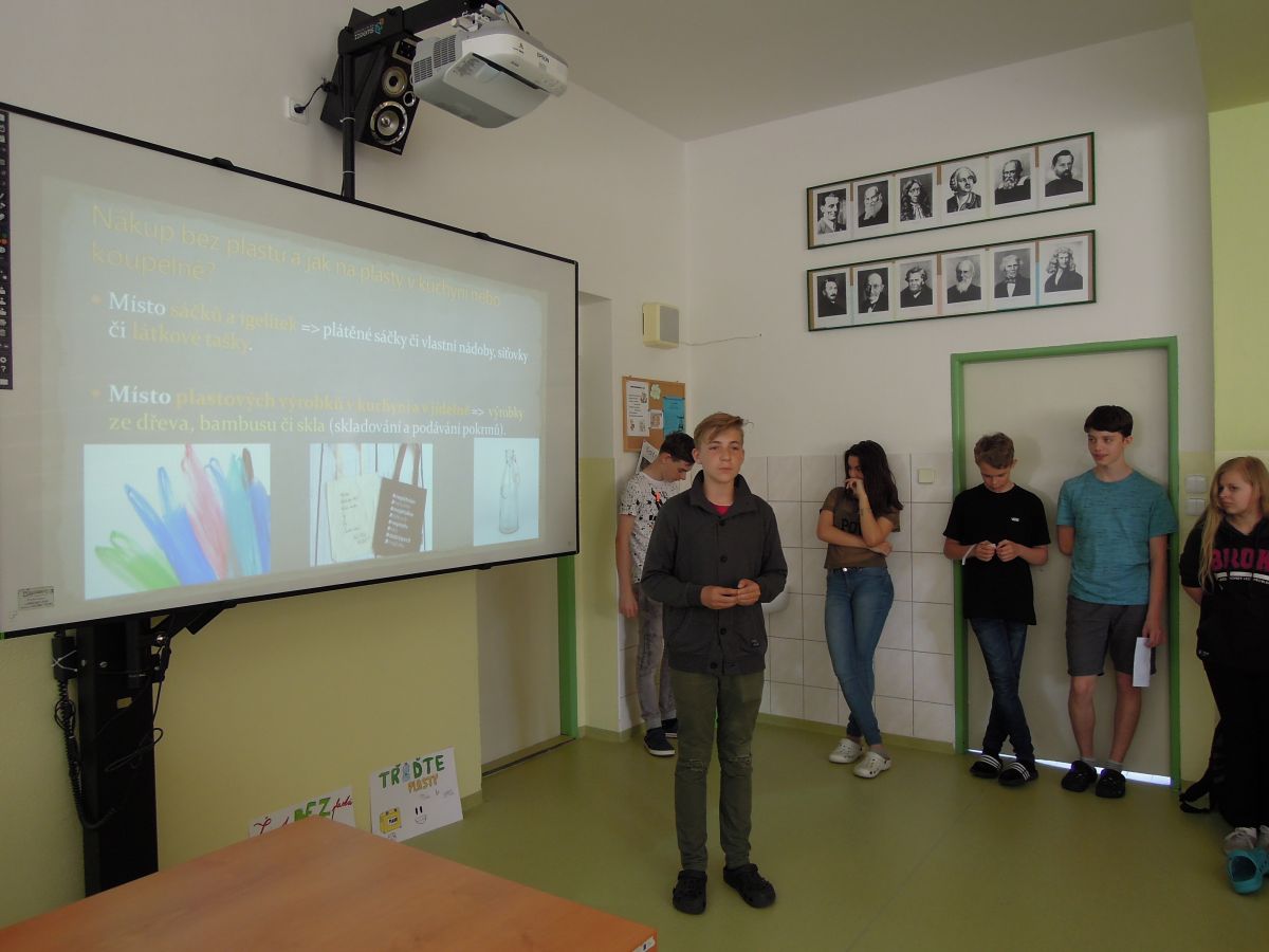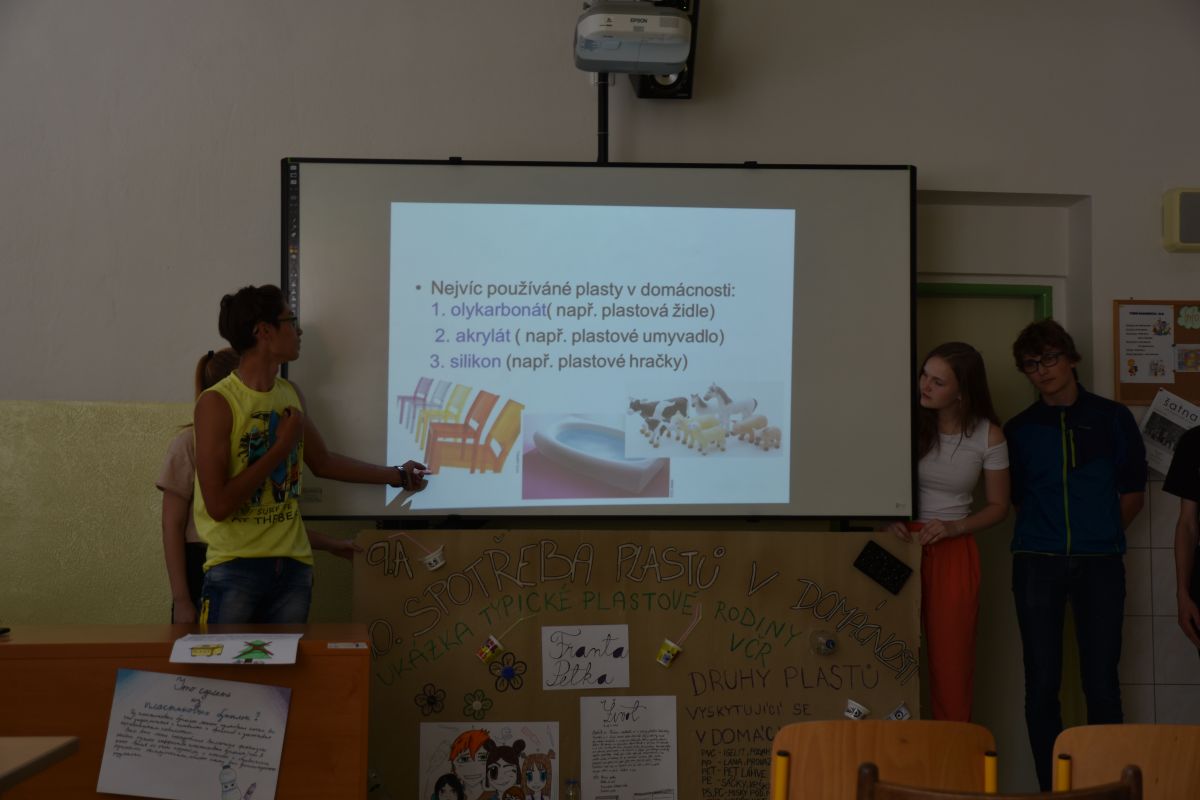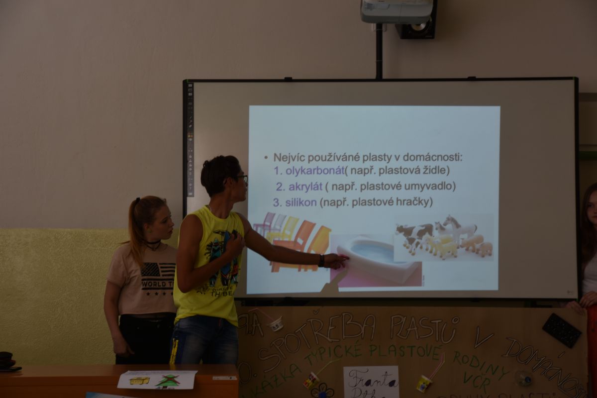 Na naší škole se uskutečnil projekt nazvaný Doba plastová. Jednotlivé třídy druhého stupně zpracovaly témata týkající se výroby, zpracování a především recyklace plastů.