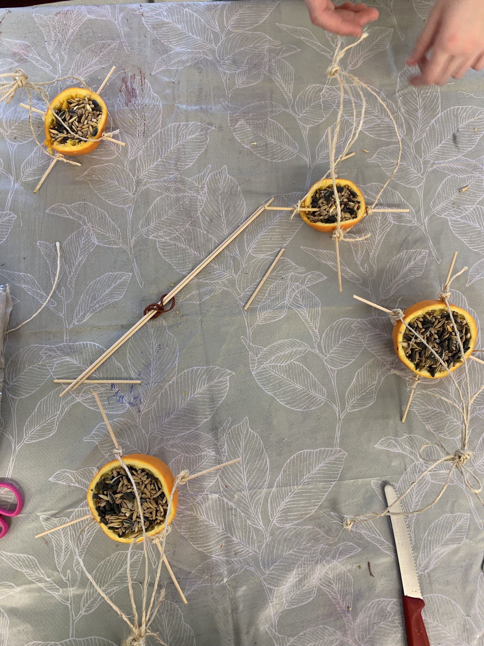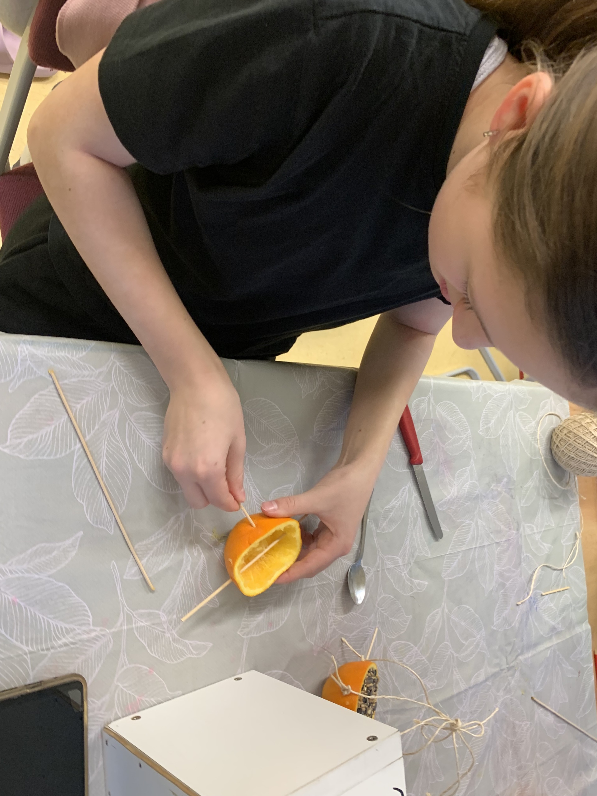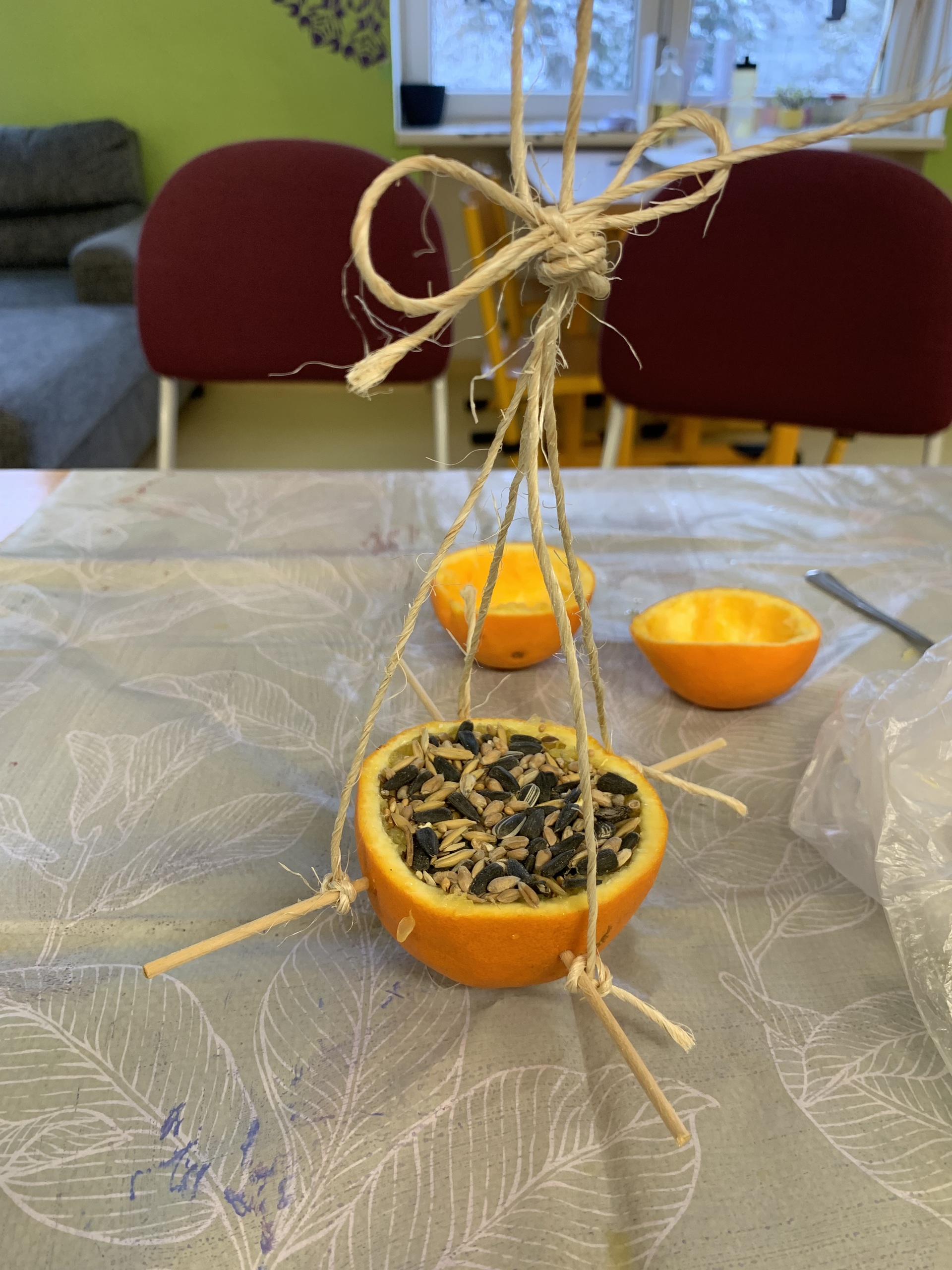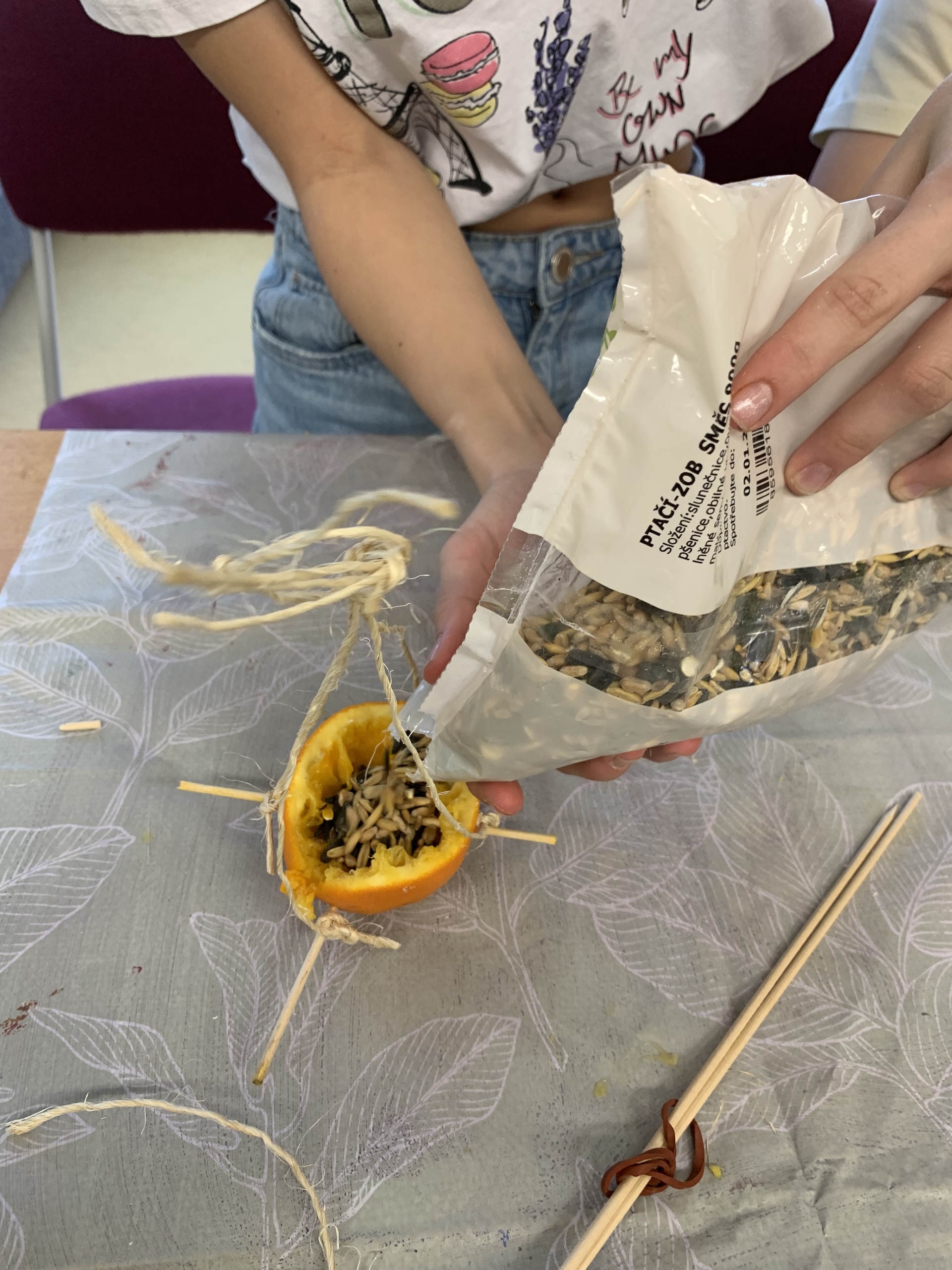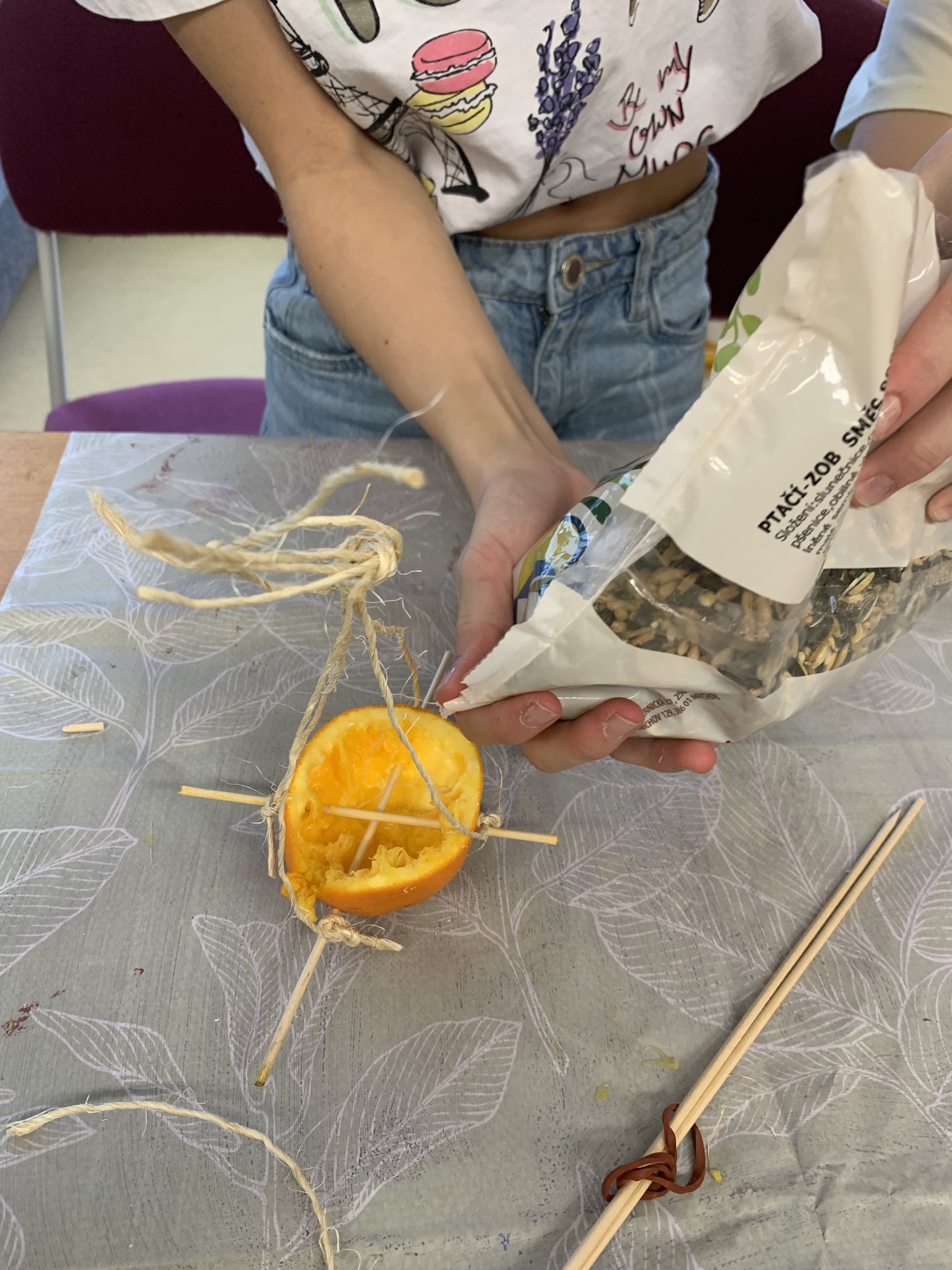 V našem školním klubu jsme se pustili do zimního ptačího tvoření. Děti vyráběly originální krmítka z vydlabaných pomerančů, která naplnily směsí semínek a pověsily na dvoře školy. Doufáme, že barevná a voňavá krmítka přilákají co nejvíce hladových opeřenců. Tím však naše ptačí dobrodružství nekončí. V klubu chceme společně pozorovat, kteří ptáčci naše krmítka navštíví, a postupně se o nich dozvídat více – jak vypadají, čím se živí i jak je můžeme v zimě podpořit.