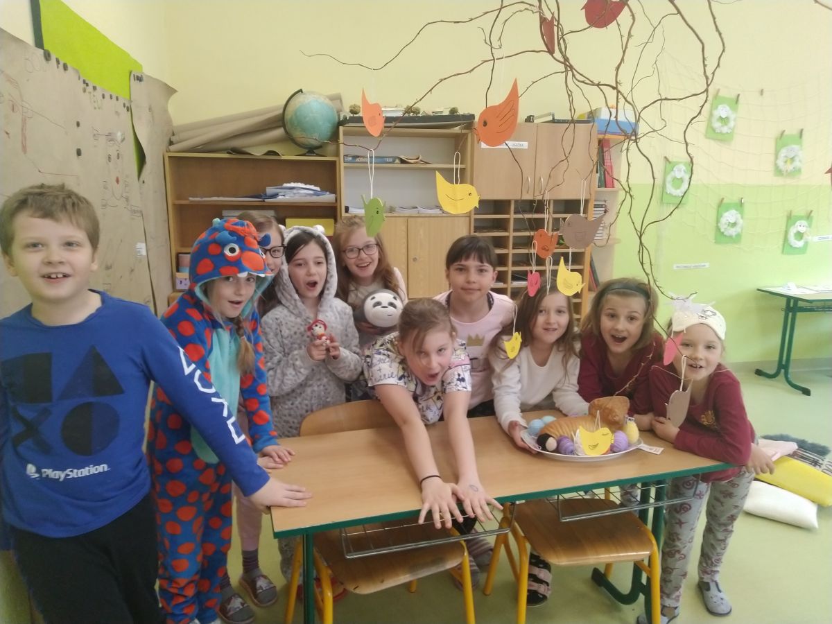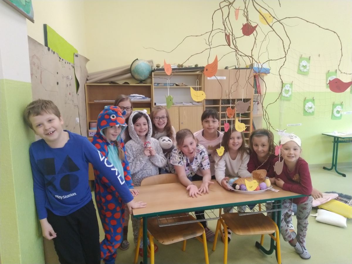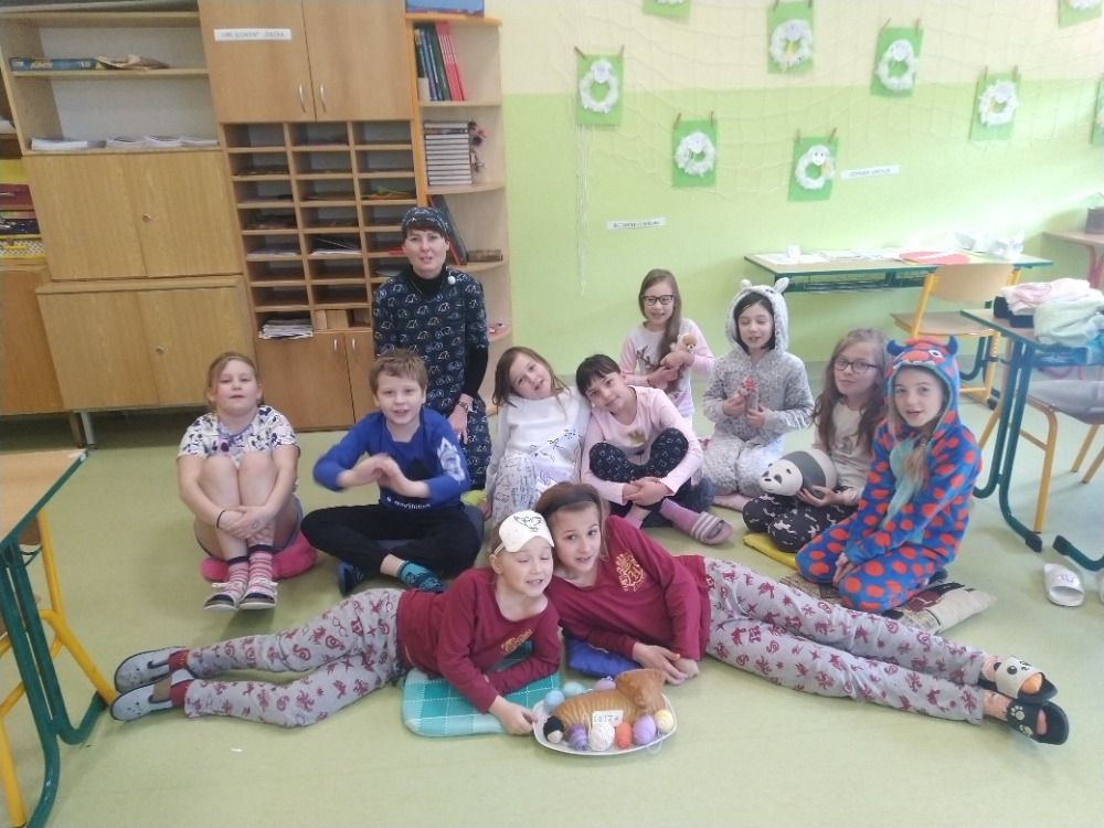 V pátek 8. dubna jsme ve 3.B měli pyžamový den. Do třídy v pyžamu přišli opravdu všichni, někteří si vzali i plyšového kamaráda na spaní. Všem to v pyžamku moc slušelo! Celý den jsme si užili o to víc díky tomu, že třída byla krásně velikonočně a jarně vyzdobená a jako občerstvení jsme si vychutnali velikonočního beránka, kterého děti upekly v rámci hodin pracovních činností a výtvarky s paní učitelkou Lazárkovou. Mgr. Iva Magnagová