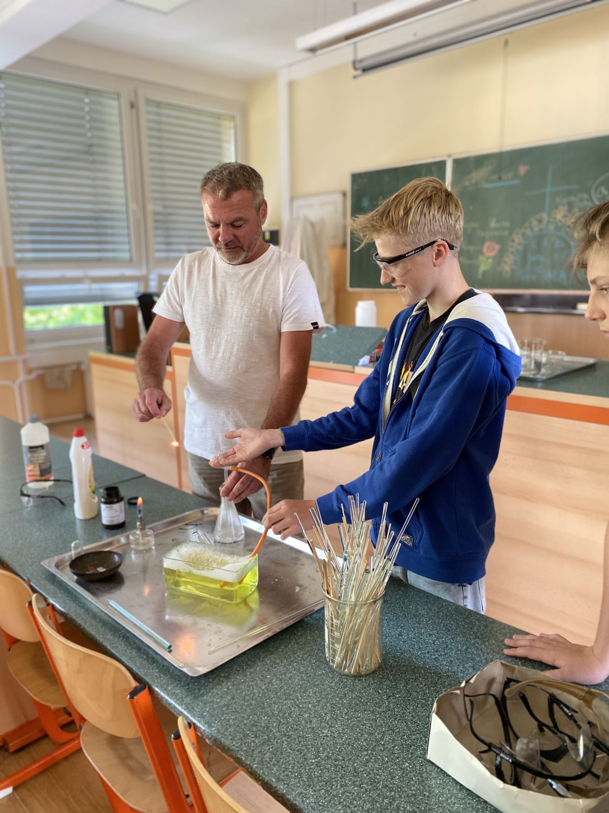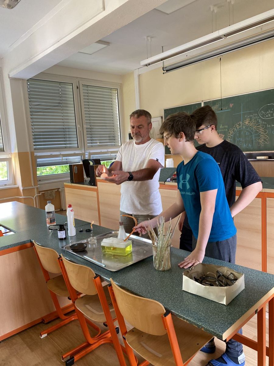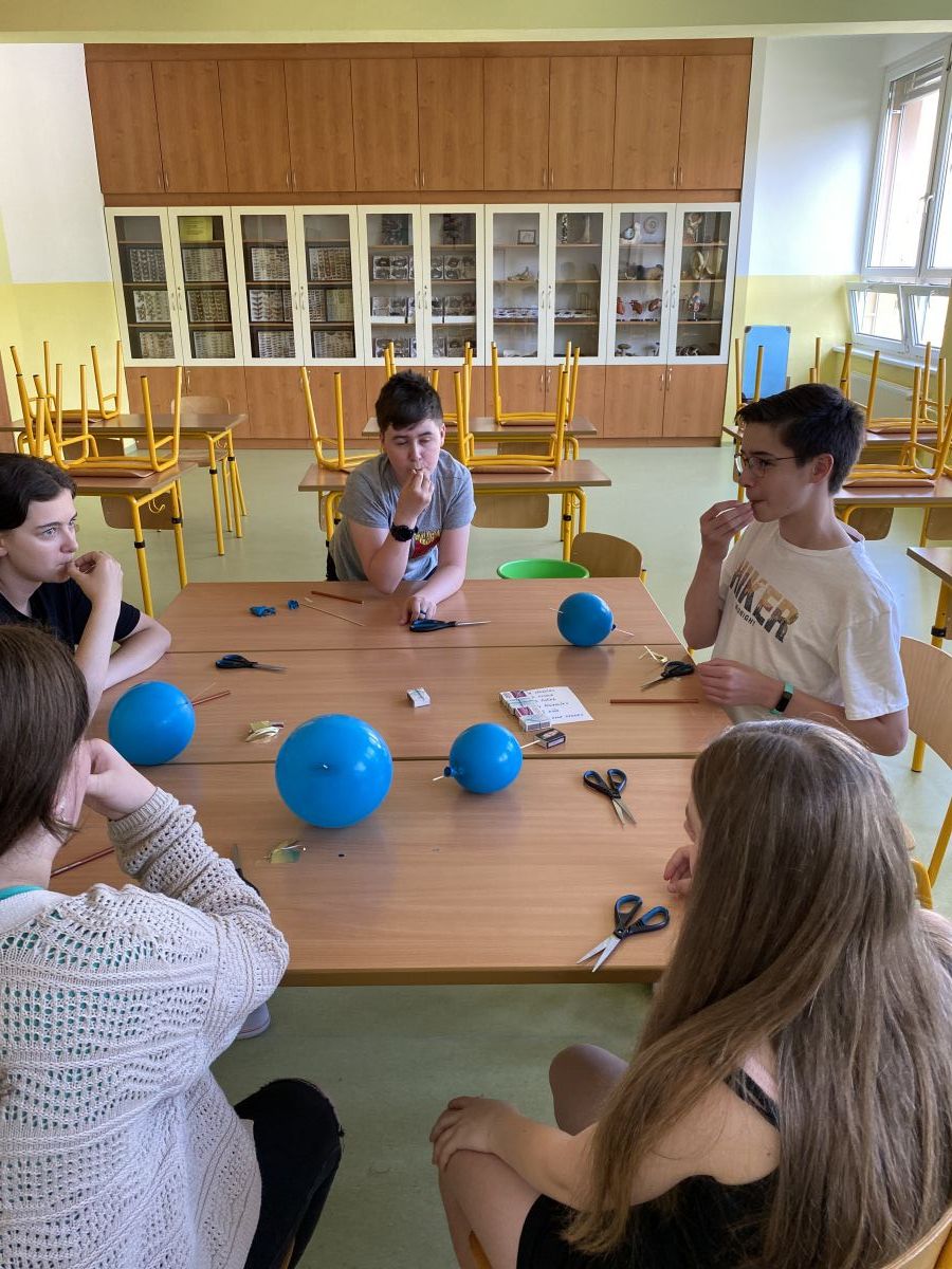 Další den pokračuje Rande na půdě školy, kde žáci na různých stanovištích experimentují s fyzikou, chemií, přírodopisem a také s ozoboty či 3D brýlemi. A protože se randí hlavně večer, i osmáci pokračovali pozorováním noční oblohy na hvězdárně.