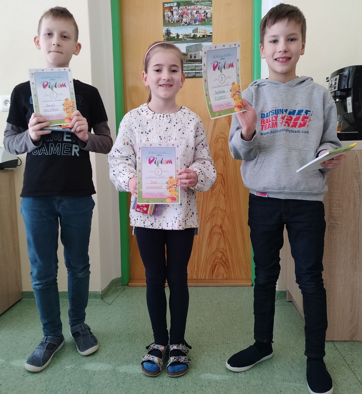 Vítězové obdrželi diplomy a drobné dárky, ostatní soutěžící dostali sladkou odměnu. Všem účastníkům děkujeme za snahu a odvahu vystoupit před neznámým publikem.