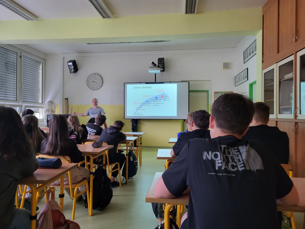 Naše osmáky navštívil adiktolog a pracovník Státního zdravotního ústavu Agarta z.s. pan Mgr. Jiří Habarta. Přiblížil jim rizika nových trendů v návykovém chování, a to užívání kratomu, nikotinu a neúměrném používání mobilního telefonu. Pevně věřím, že přednáška zanechala v žácích silnou stopu, a s panem Habartou se po pracovní stránce již nesetkají. Mgr. Zuzana Šerá