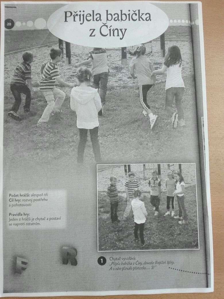 Děti ze školní družiny se vrátily do světa her svých prarodičů. Vyzkoušely si hry jako čára, přijela babička z Číny, školku se švihadlem, zaskákaly si panáka, gumu. Velký úspěch měla i hra na slepou bábu nebo „šprtec“.