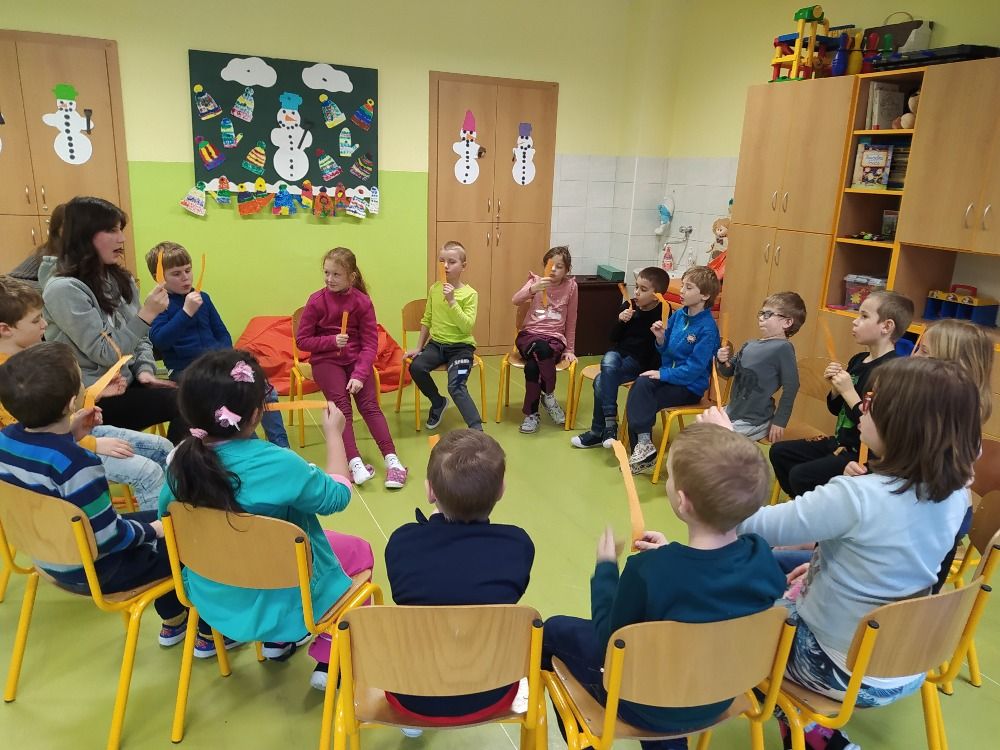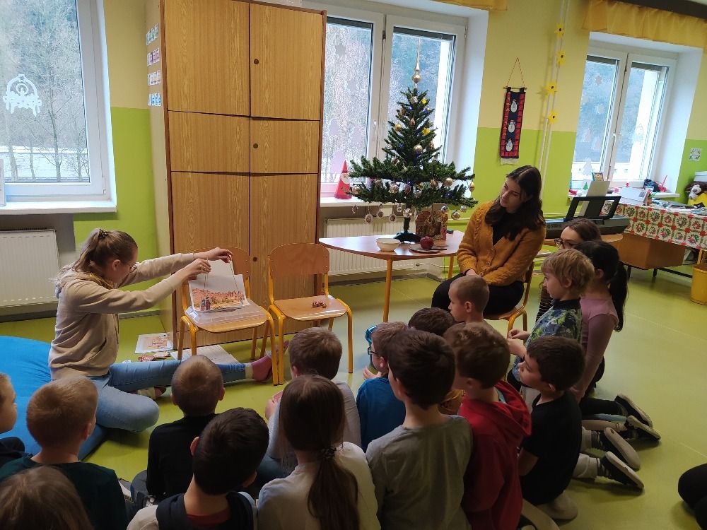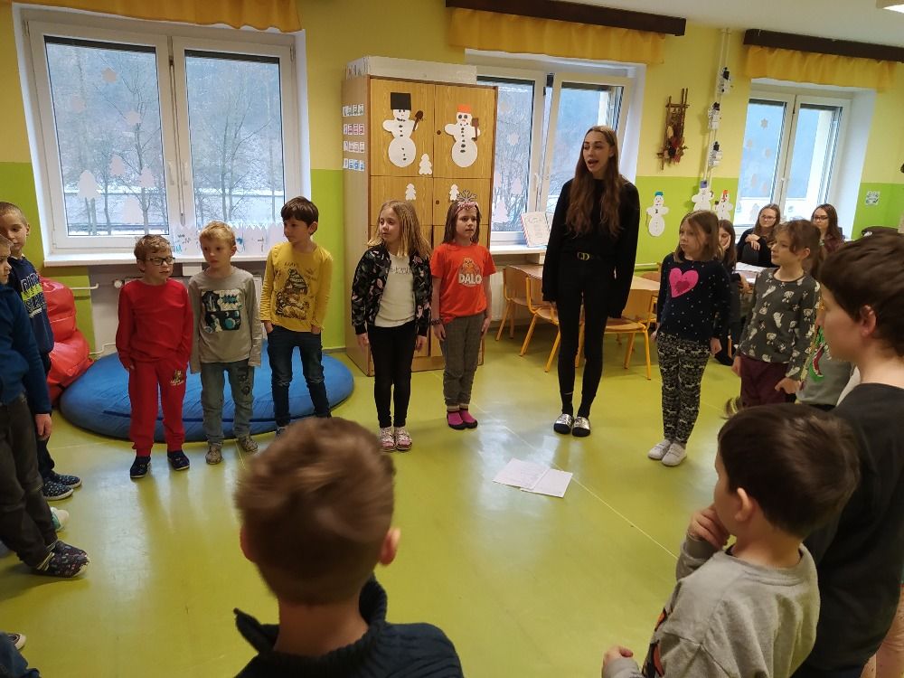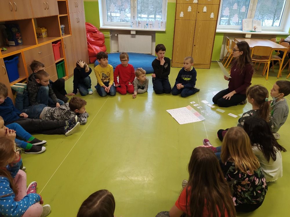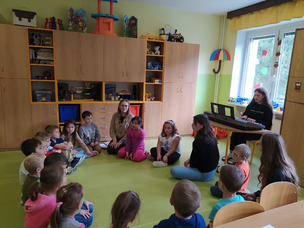 Od října pravidelně jednou v týdnu docházejí Dominika, Zuzana, Kristýna, Tereza a Terka do naší družinky a vytvářejí přínosný program pro žáky v oddělení Motýlků. Děti se na děvčata těší a s nadšením a zájmem spolupracují.
