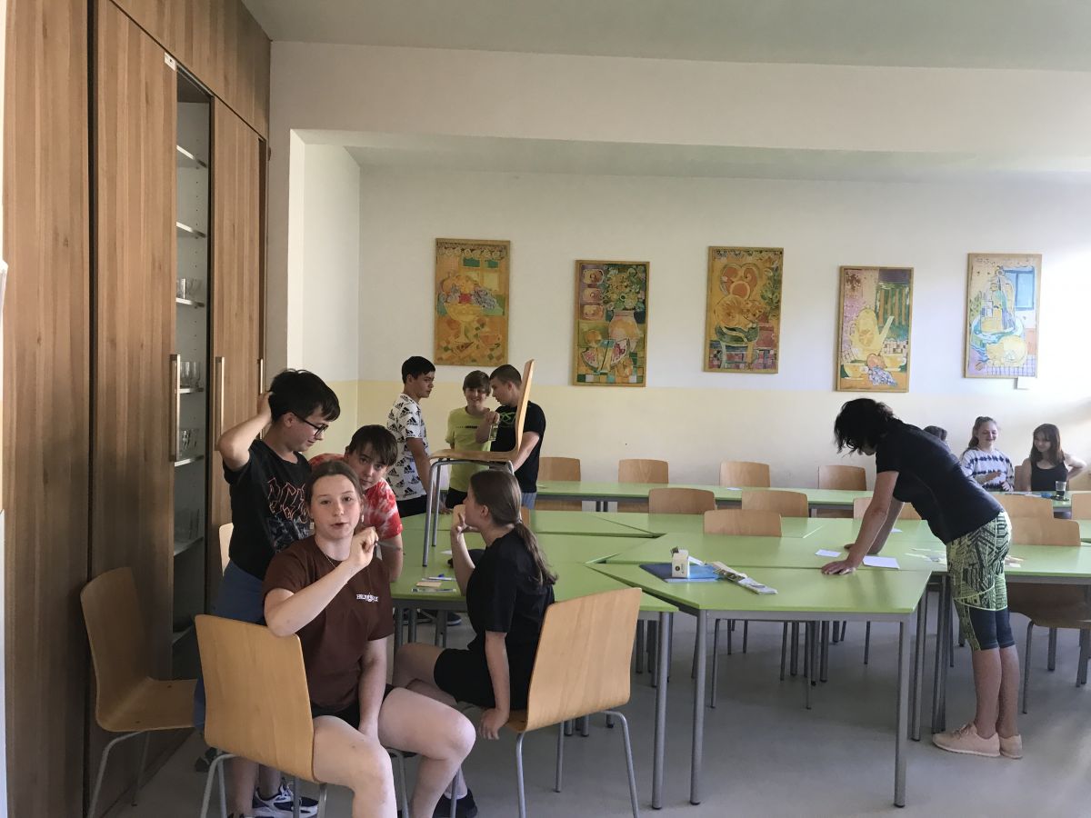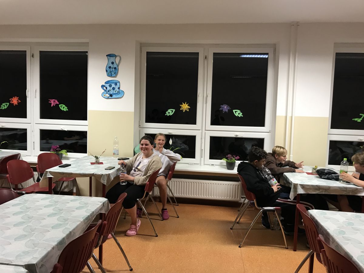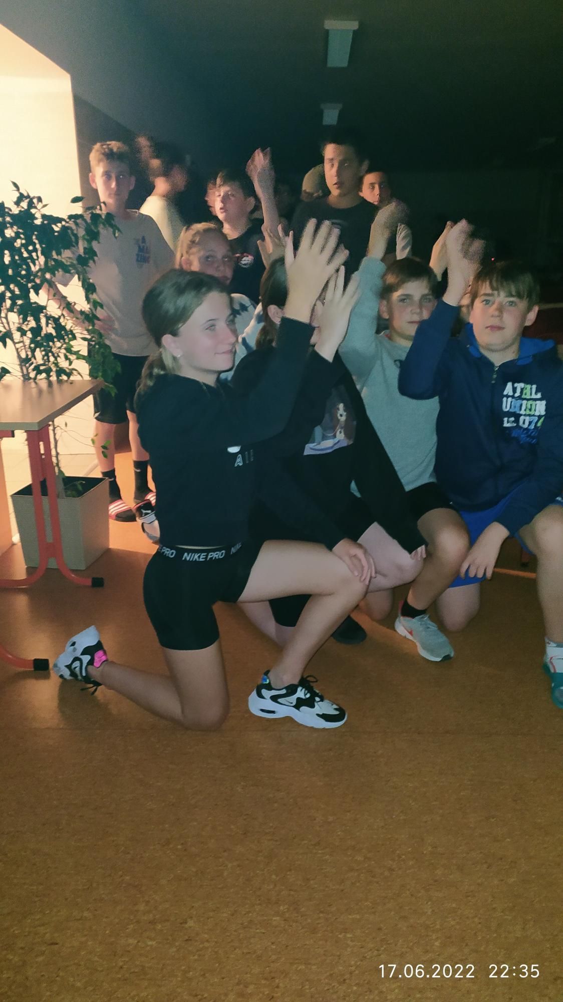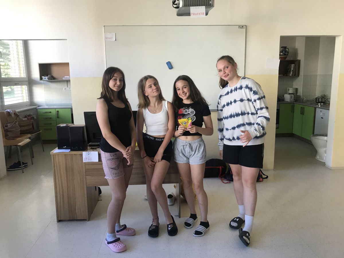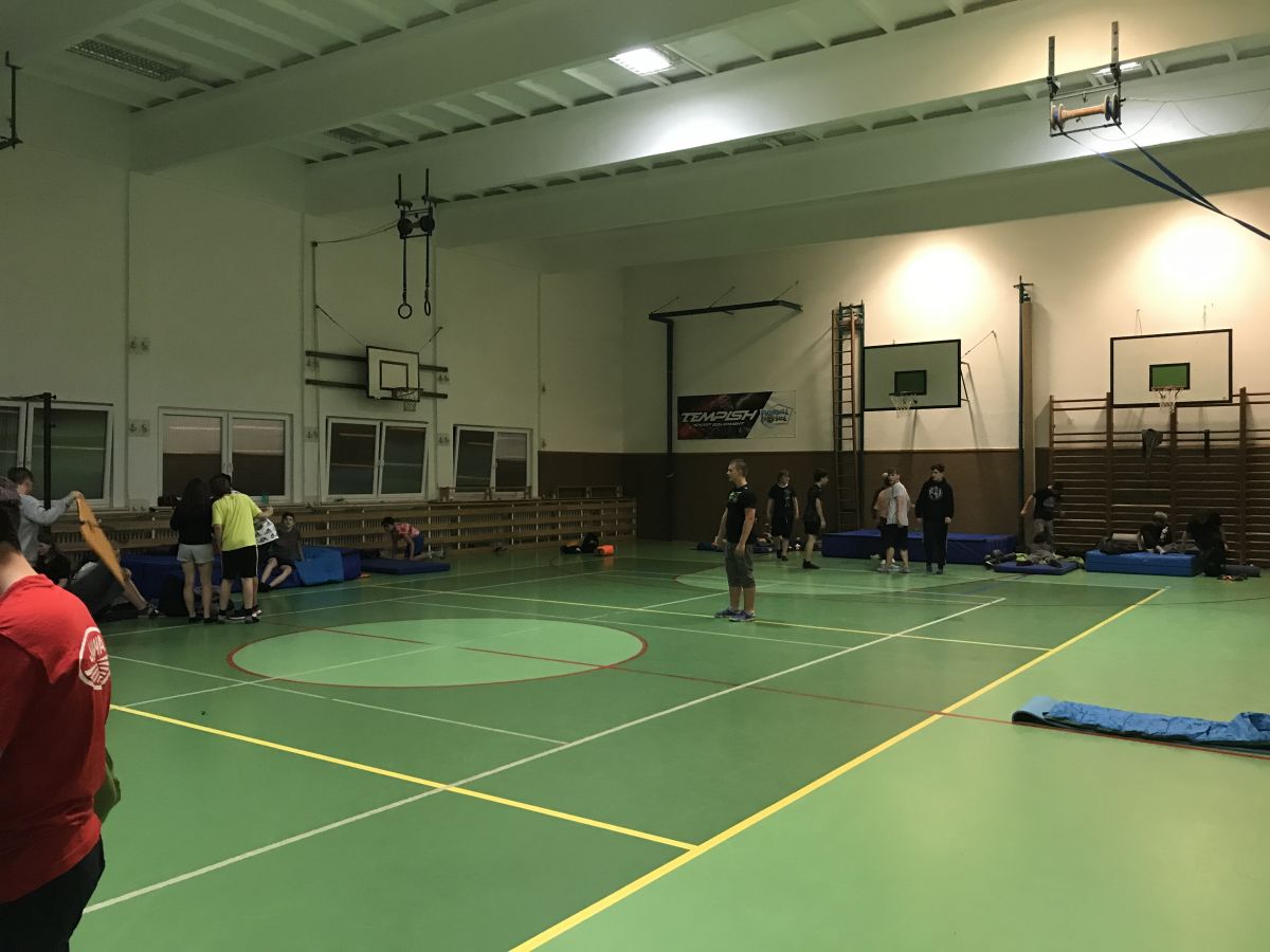 Děti ze sedmé třídy nocovaly z pátku na sobotu ve škole. Program byl pestrý a nabitý. Nejprve trávily čas soutěžemi v kruhu své třídy, poté pekly pizzu, zasportovaly si v tělocvičně (odvážní si zkusili i lezení na stěně). Když nastala tma, čekala na ně strašidelná stezka noční školou. Tou naštěstí všichni v pořádku prošli!