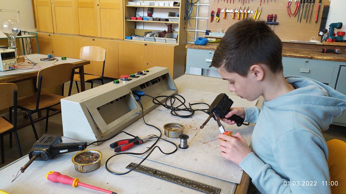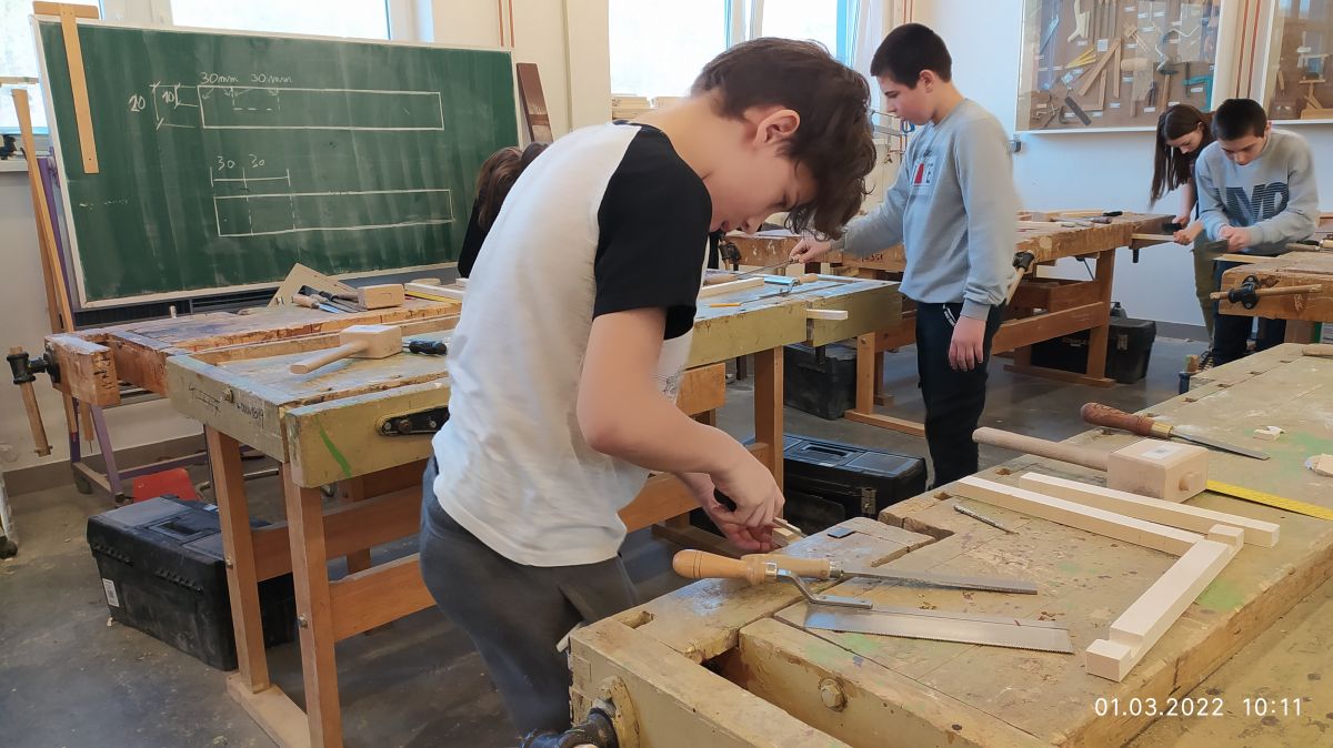 Žáci VII.A navštívili v úterý 1. března dílny SOU Josefa Sousedíka. Řadu věcí si mohli přímo vyzkoušet – v truhlářské dílně vyráběli rámeček, elektrikáři si odnesli vlastnoručně vyrobený hlavolam.