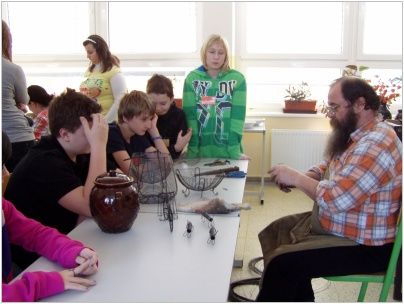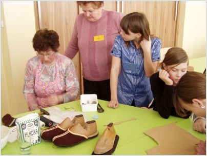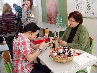 Byli to žáci 2.stupně tří základních škol – Vsetín Luh a Rokytnice, Pruské ze Slovenska a senioři. Program byl velmi pestrý a zajímavý pro obě věkové skupiny. Byly vytvořeny 4 členné pracovní týmy, v nichž byli zastoupeni vždy žáci z jedné školy a jeden senior. Moto dopolední části znělo „Žáci ukazují seniorům dnešní školu“. Týmy se postupně vystřídaly při aktivitách v odborné učebně ICT a v učebně s interaktivní tabulí. Každý tým vypracoval na počítači s využitím internetu a dle zadaných pokynů krátký referát na dané téma (řemesla), který potom krátce prezentoval ostatním. Na interaktivní tabuli byl spuštěna krátká prezentace, na jejímž základě týmy zpracovávaly téma z oblasti finanční gramotnosti – Peníze, aneb „money, money, money“ . Na interaktivní tabuli si také jednotlivci mohli zasoutěžit. V odpoledních hodinách se role vyměnily a žáky začali učit senioři. Byly připraveny dílny, ve kterých senioři prezentovali své řemeslné umění. Se samotnými řemesly se žáci seznámili již v dopoledních hodinách při zpracovávání svých referátů. Nyní se mohli v praxi podívat a sami vyzkoušet, jak byla v dřívějších dobách těžká obživa. Pan Malučký z Janové pletl košíky, klukům pomohl vyrobit „tatar na mrskání cérek „ o Velikonocích a ukázal ručně šitá a krásně zdobená kožená pouzdra a různé jiné obaly. Z Vizovic navštívili naši školu manželé Adamcovi. Pan Adamec – zdatný dráteník – nejenže drátoval hrnce, ale z drátu přímo na místě vyráběl dětem na přání různá zvířátka a závěsy. Paní Adamcová přivezla na ukázku překrásné kraslice a všelijaké pomůcky, se kterými si zájemci sami voskem malovali kraslice. Všechny velmi zaujal „stroj“ na vyfukování vajíček. Z Valašských Kloubouk, kde vždy mělo tradici papučářství, přijela prezentovat toto řemeslo paní Dořáková. Na vlastní oči všichni viděli kopyto, na které se papuče napínají, lepidlo vyráběné z mouky a vody, prošívání podešví a jak papuče postupně vznikají. Zajímavostí je to, že tyto podomácky vyráběné papuče (na rozdíl od původních) vznikají ze starých kabátů a jiných látek, čili se tak vlastně recyklují již nepoužívané materiály. Paní Langová (taktéž z Valašských Klobouk)učila především holky drátkování , o které byl velký zájem. Stejně jako malování kraslic bylo i drátkování pro děti v podstatě nejjednodušeji proveditelné. O ostatních řemeslech prohlásily, že je to velmi těžké a brzy je bolely ruce. Tento den přinesl všem zúčastněným spoustu nového, poučného a hlavně zajímavého. Všichni se loučili s úsměvy na tváři a ujištěním, že to byl velmi hezký den.