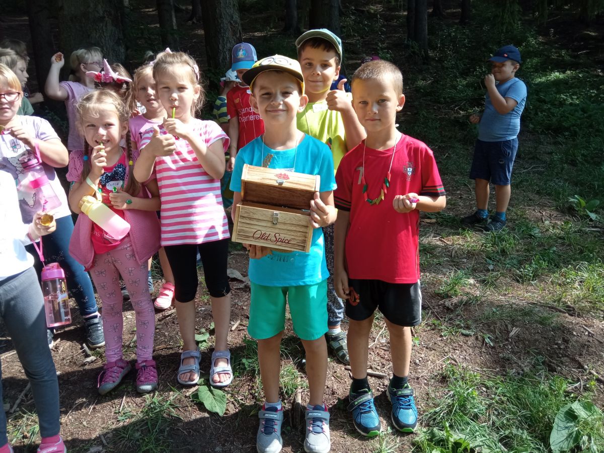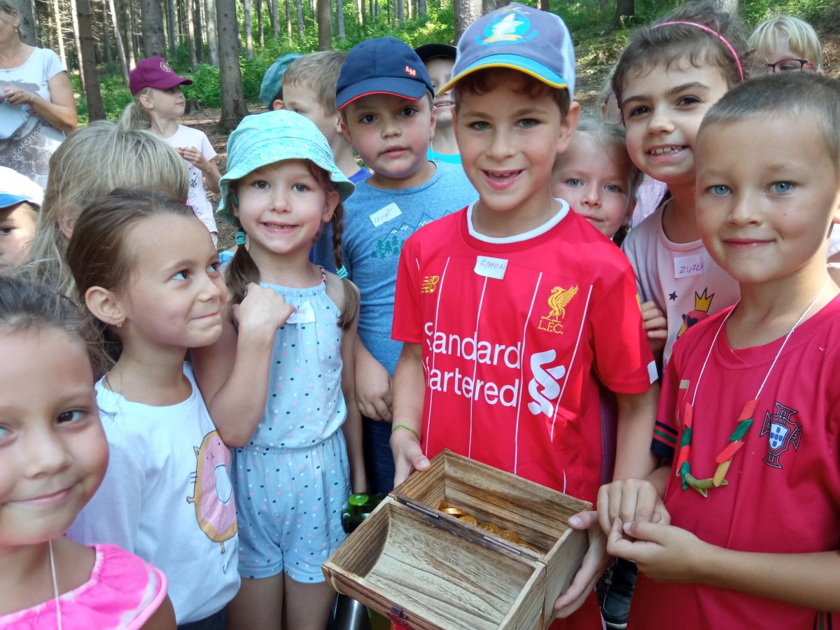 Závěr týdne byl velmi napínavý, protože děti hledaly poklad v lese, jehož součástí byly zlaté čokoládové mince i další věcné ceny.