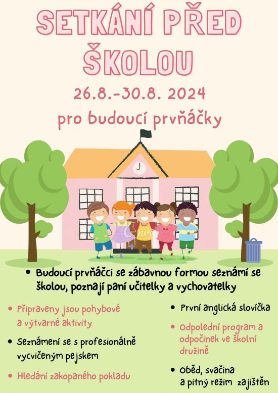 Akce pro budoucí prvňáčky, kteří se zábavnou formu mohou seznámit se školou, poznat nové paní učitelky a vychovatelky. Připravujeme spoustu skvělých aktivit. Přihlášení do 21 .6. 2024.