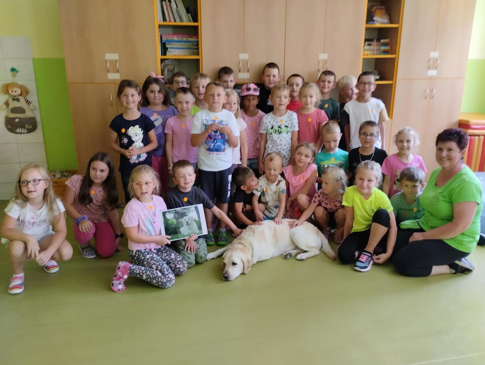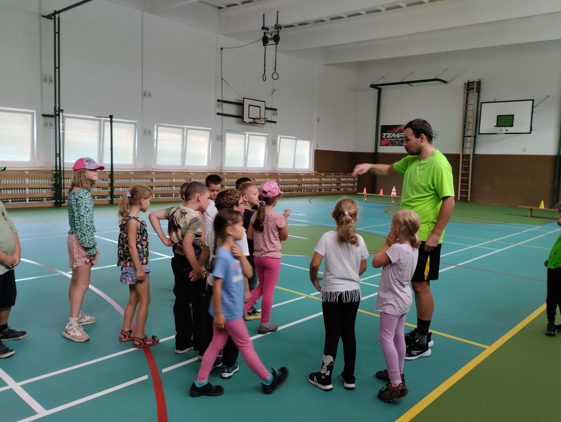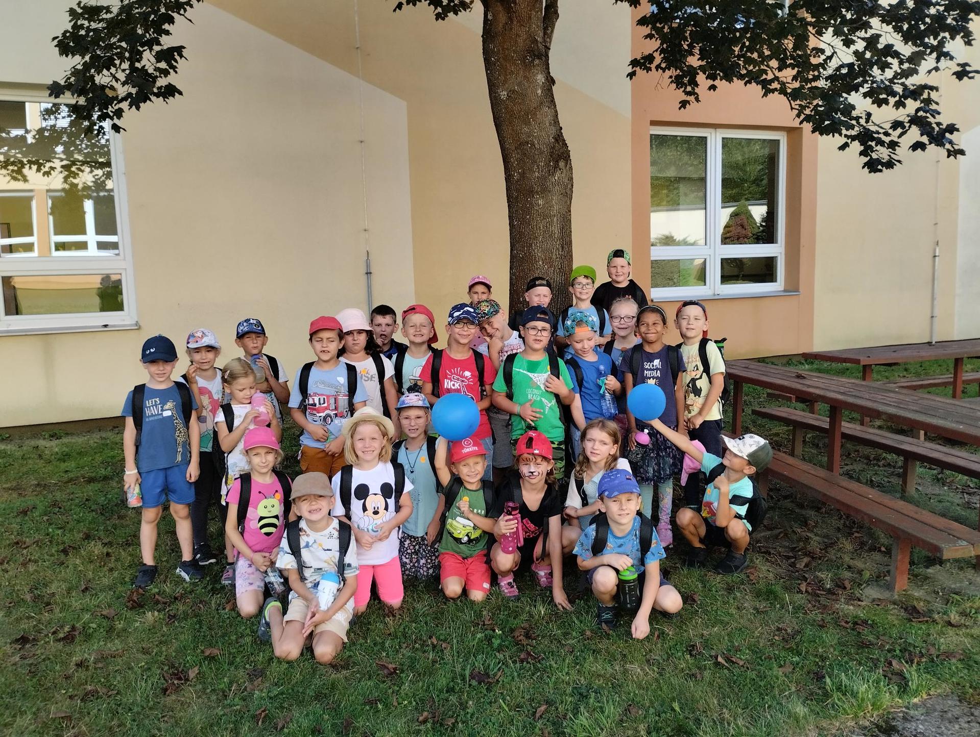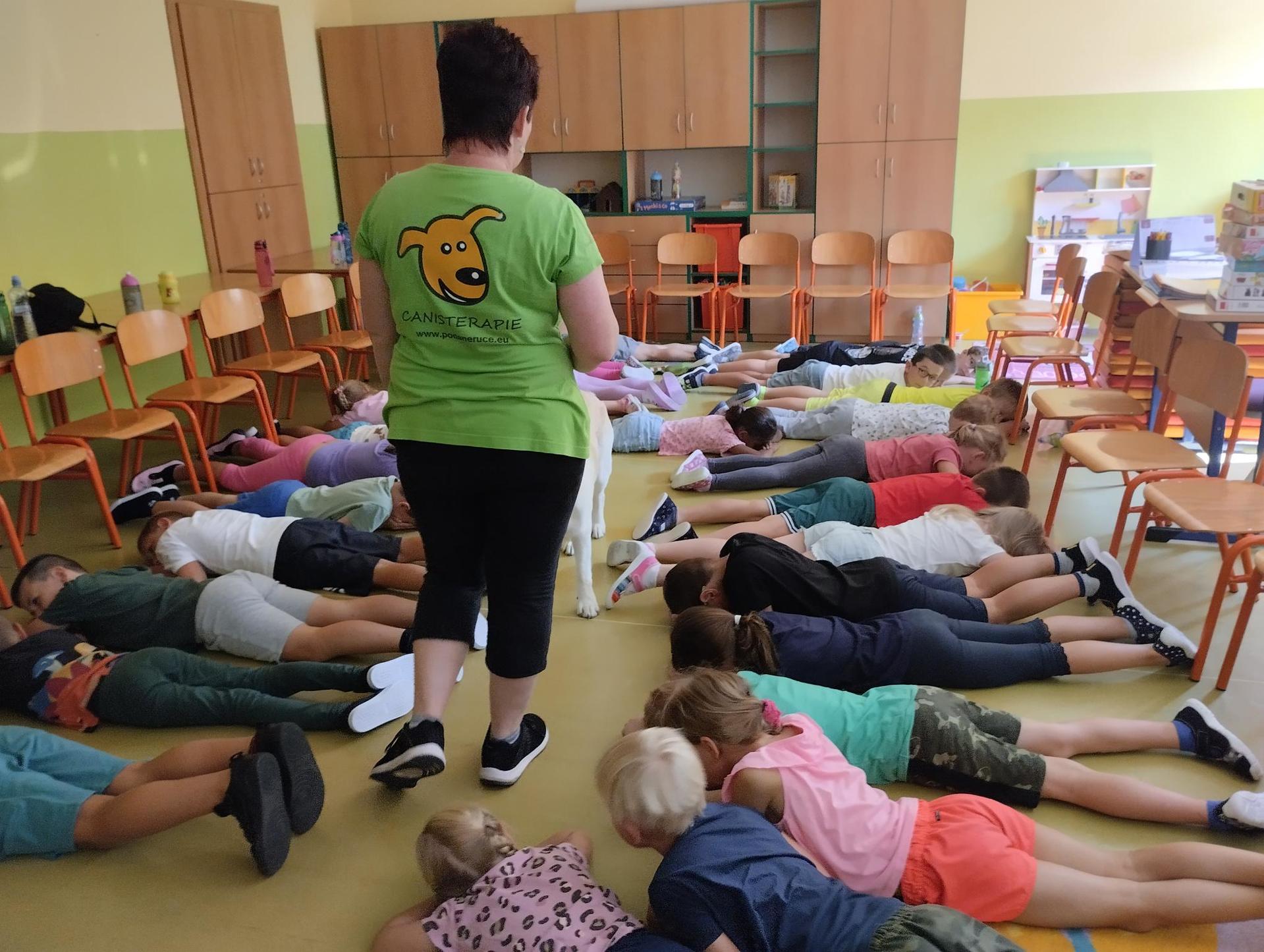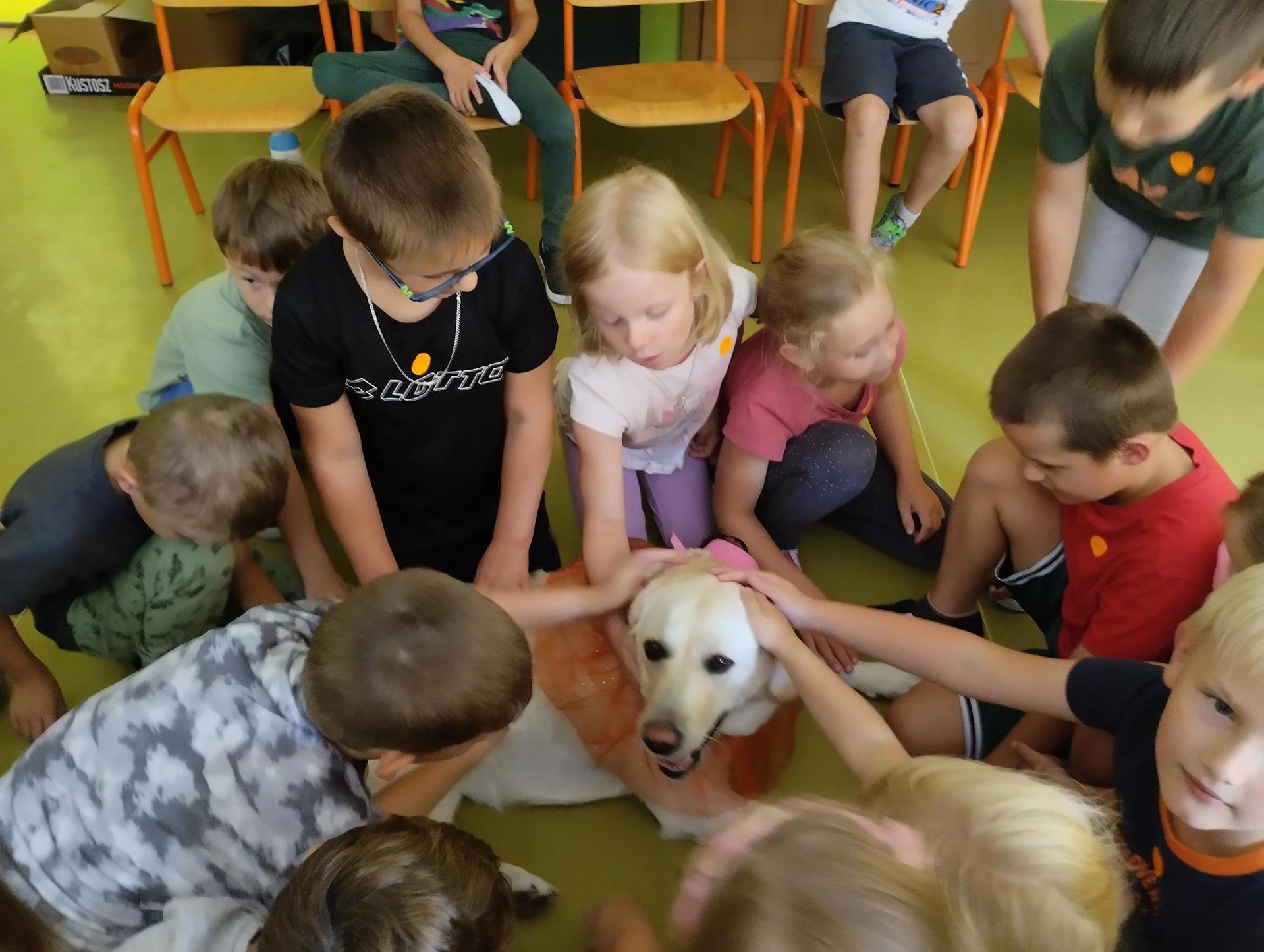 Děti si během dopoledne mohly zkusit zábavnou formou " výuku" ve škole, která byla obohacena o výtvarnou výchovu, anglický jazyk, atletické disciplíny na hřišti, florbal. Druhý den děti přišla navštívit fenka Elza, labradorský retrívr, profesionálně cvičený pejsek pí. Pavlínou Dujkovou. V canisterapii Elza předvedla dětem co všechno dokáže, nosit léky nemocnému, reagovat na povely a navodit krásnou, zklidňující atmosféru. Na závěr tábora si děti našly 'poklad', batůžek plný překvapení i pár sladkostí. Setkání se nám zadařilo, děti odcházely s úsměvem na tváři a my dospělí doufáme, že ten školní začátek budou mít děti opravdu radostný.