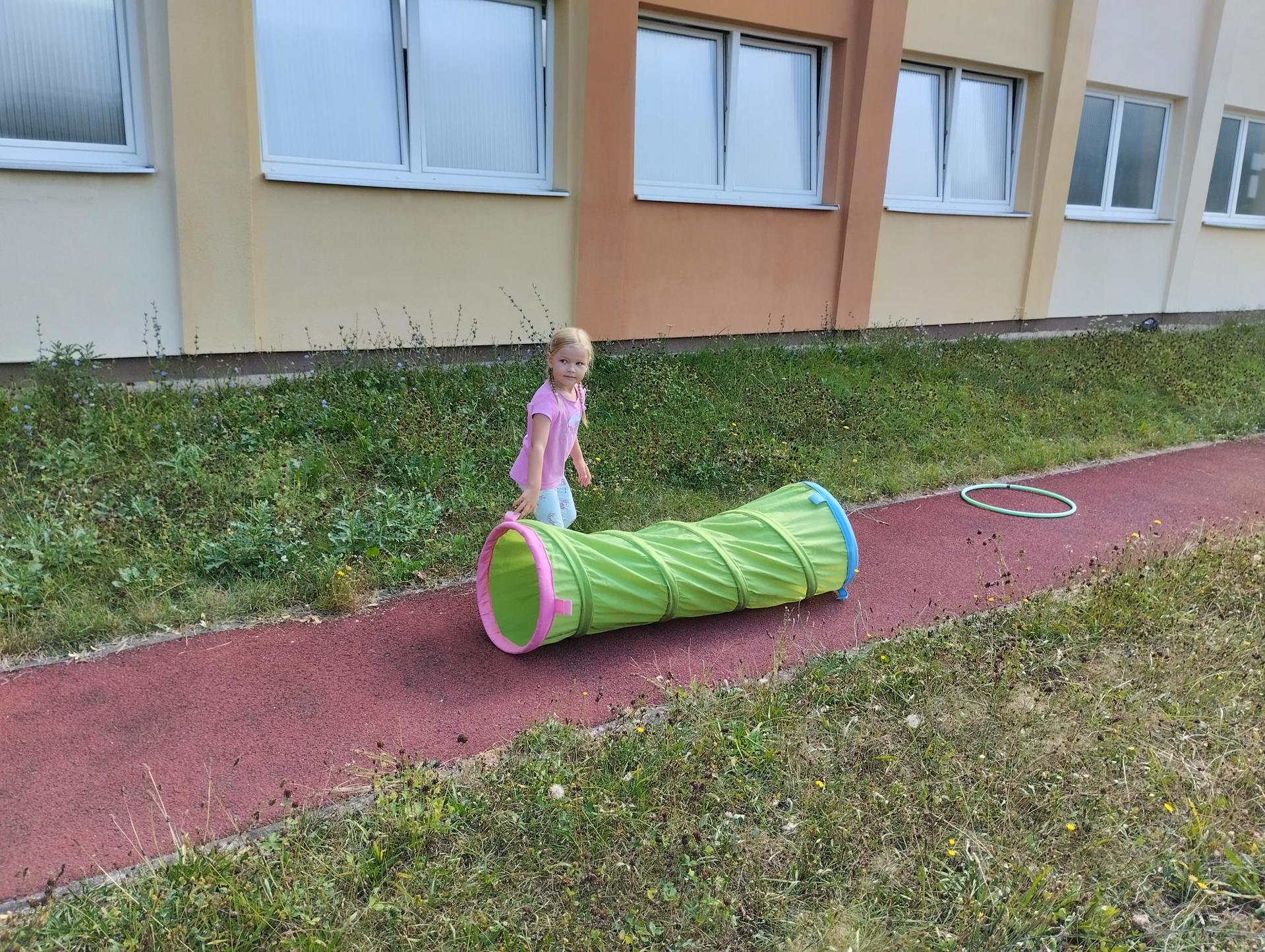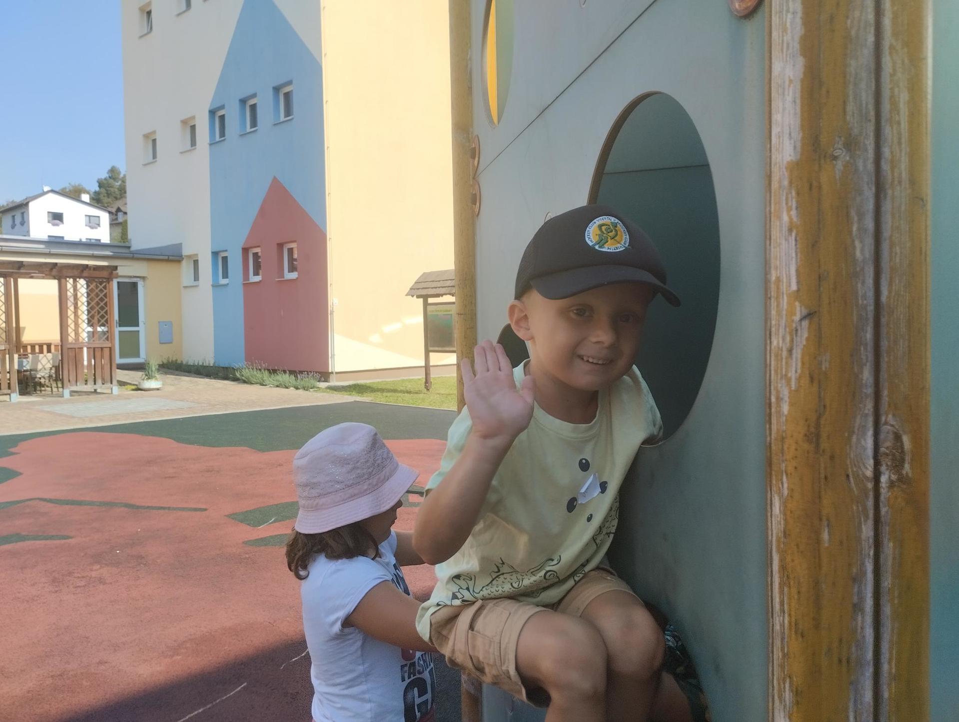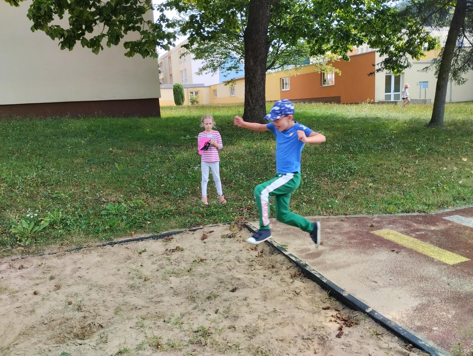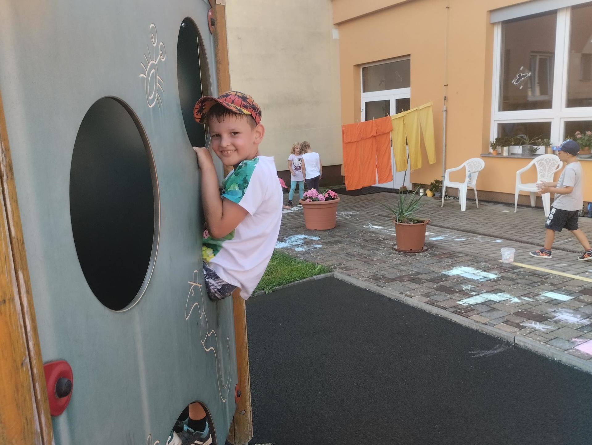 Děti si během dopoledne mohly zkusit zábavnou formou " výuku" ve škole, která byla obohacena o výtvarnou výchovu, anglický jazyk, atletické disciplíny na hřišti, florbal. Druhý den děti přišla navštívit fenka Elza, labradorský retrívr, profesionálně cvičený pejsek pí. Pavlínou Dujkovou. V canisterapii Elza předvedla dětem co všechno dokáže, nosit léky nemocnému, reagovat na povely a navodit krásnou, zklidňující atmosféru. Na závěr tábora si děti našly 'poklad', batůžek plný překvapení i pár sladkostí. Setkání se nám zadařilo, děti odcházely s úsměvem na tváři a my dospělí doufáme, že ten školní začátek budou mít děti opravdu radostný.