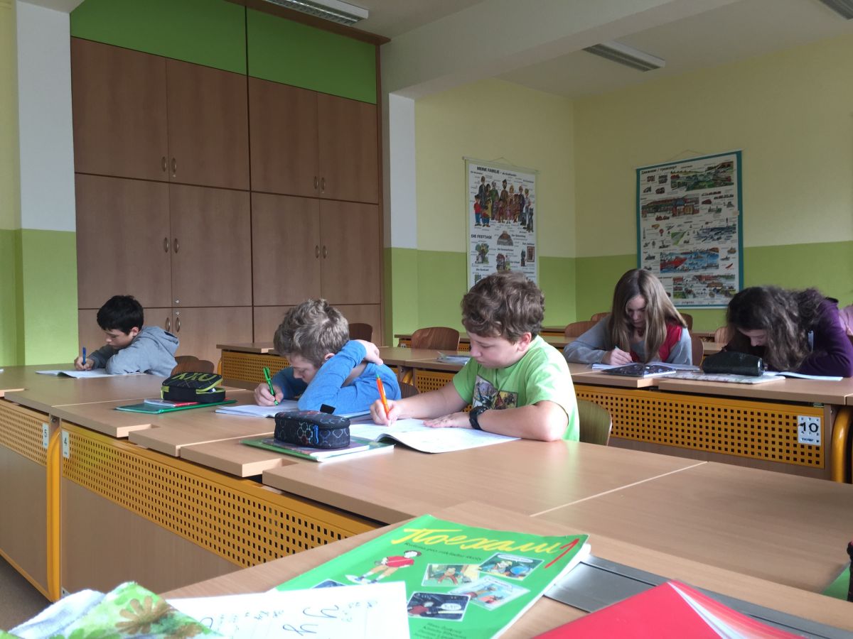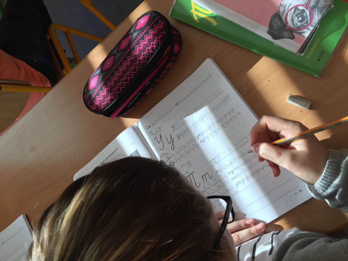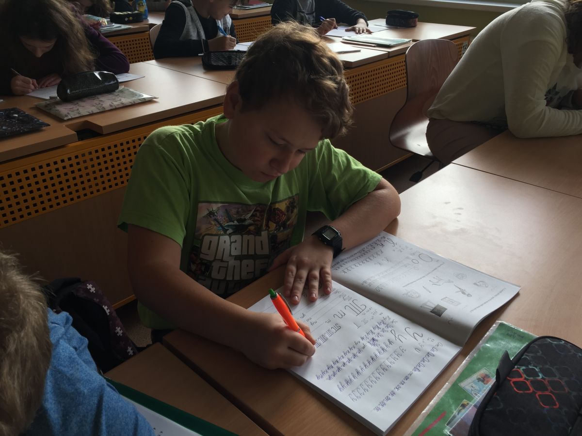 Žáci sedmého ročníku se učí ruské azbuce.