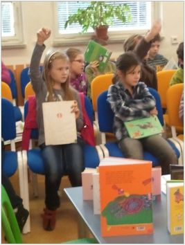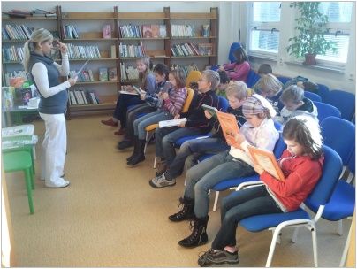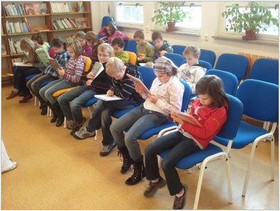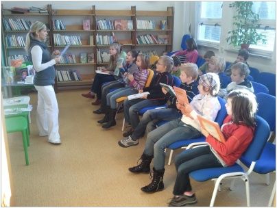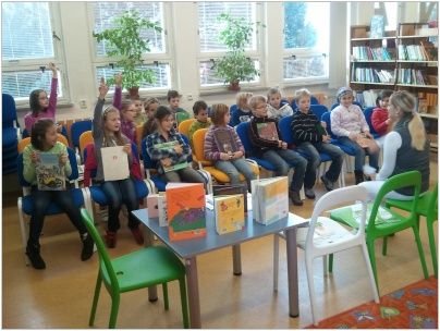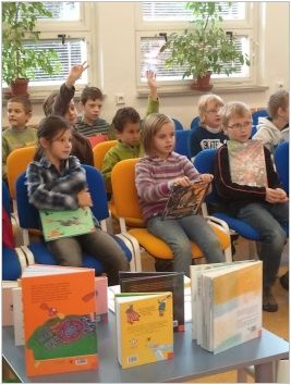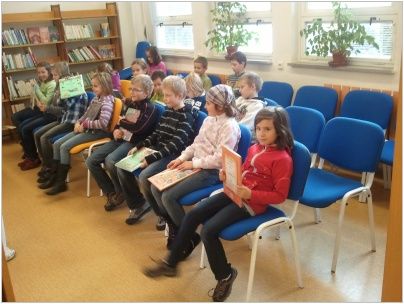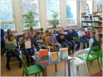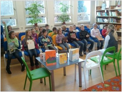 Paní knihovnice MgA. Petra Kašparová vysvětlila dětem pojem verš a rým. Žáci byli seznámeni se jmény nejznámějších básníků pro děti a také jim byly doporučeny knihy ke čtení. V příjemném prostředí knihovny si mohli sami vyzkoušet, zda je snadné být básníkem. Dle vlastní fantazie vymýšleli rýmy na křestní jména a závěrem napsali báseň o podzimu.