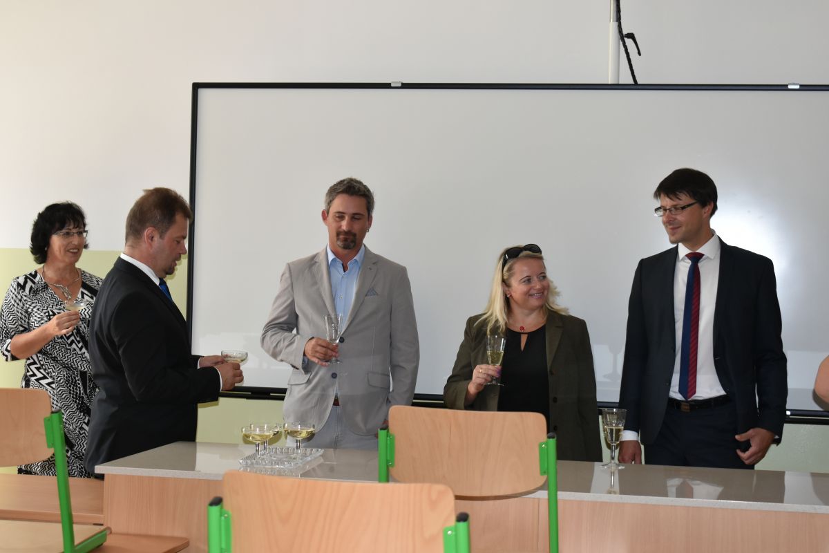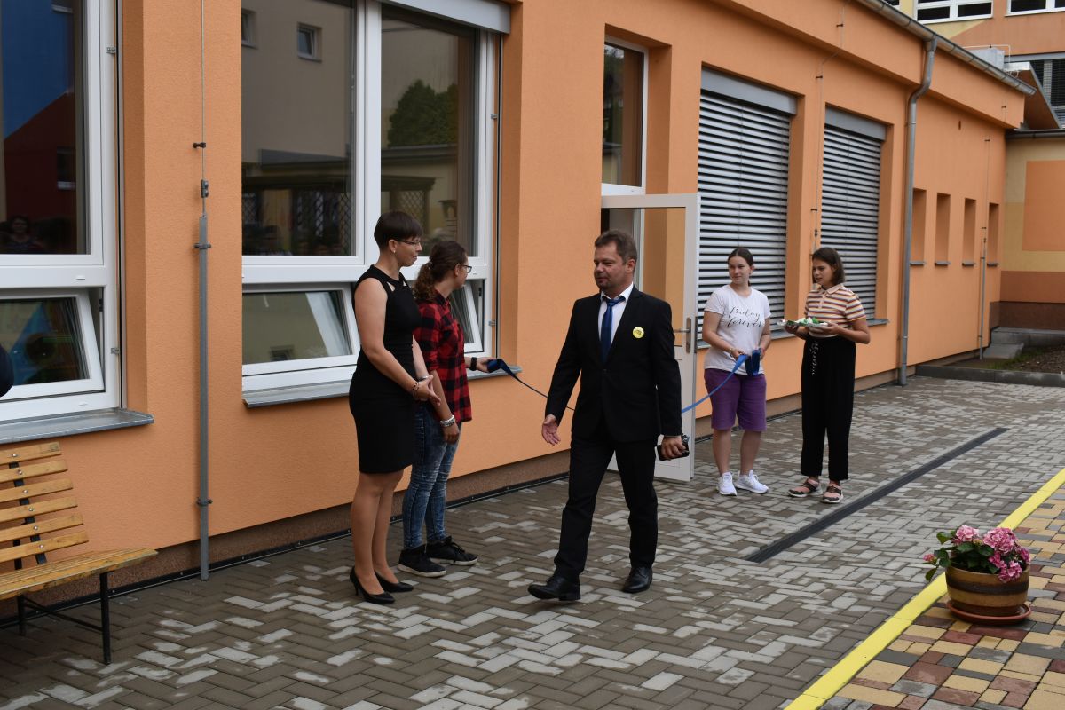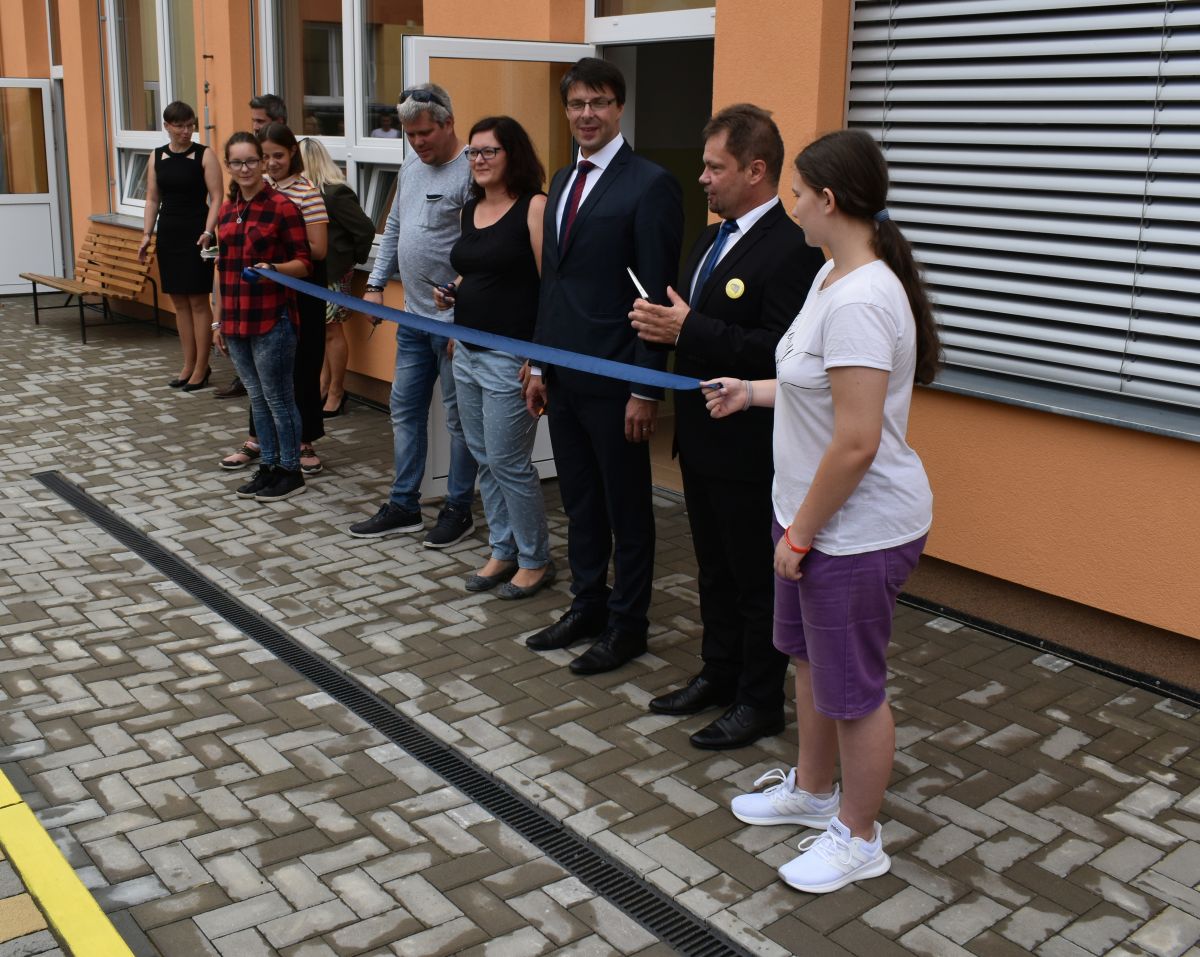 Pásku přestřihl starosta města Mgr. Jiří Růžička, ředitel školy Mgr. Petr Kořenek, zástupce realizační firmy Michal Mikeš, jednatel firmy TM stav, s r.o. a zástupkyně rodičů ve školské radě JUDr. Lenka Fialová. Svůj školní den si spolu se žáky zopakovali i bývalí učitelé, kteří měli spolu s ostatními možnost si nové prostory prohlédnout.