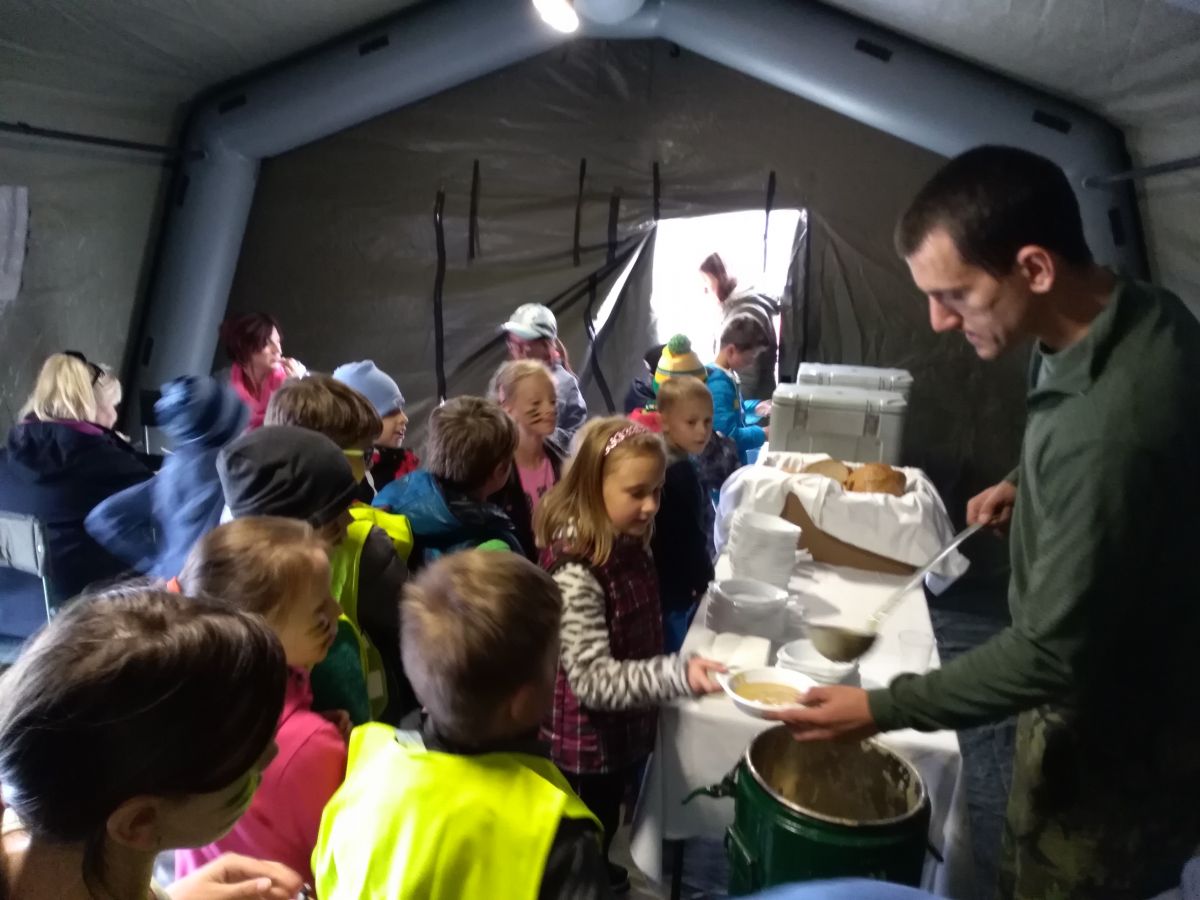 Děti měly možnost za doprovodu vojáků vidět armádní vozy, vyzkoušet si "hod granátem", střelbu z dětské pistolky, namalovat si tváře jako opravdoví vojáci a vojandy. Největší úspěch měla ovšem překvapivě polní kuchyně, ve které si děti pochutnaly na hrachové polévce s chlebem a zahřály se ovocným čajem.