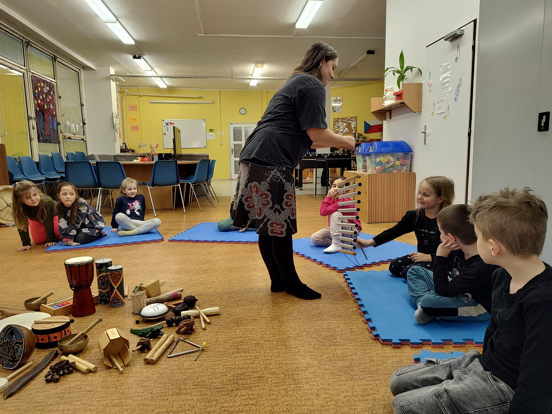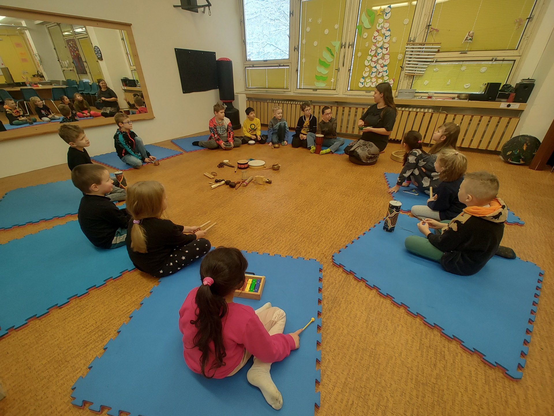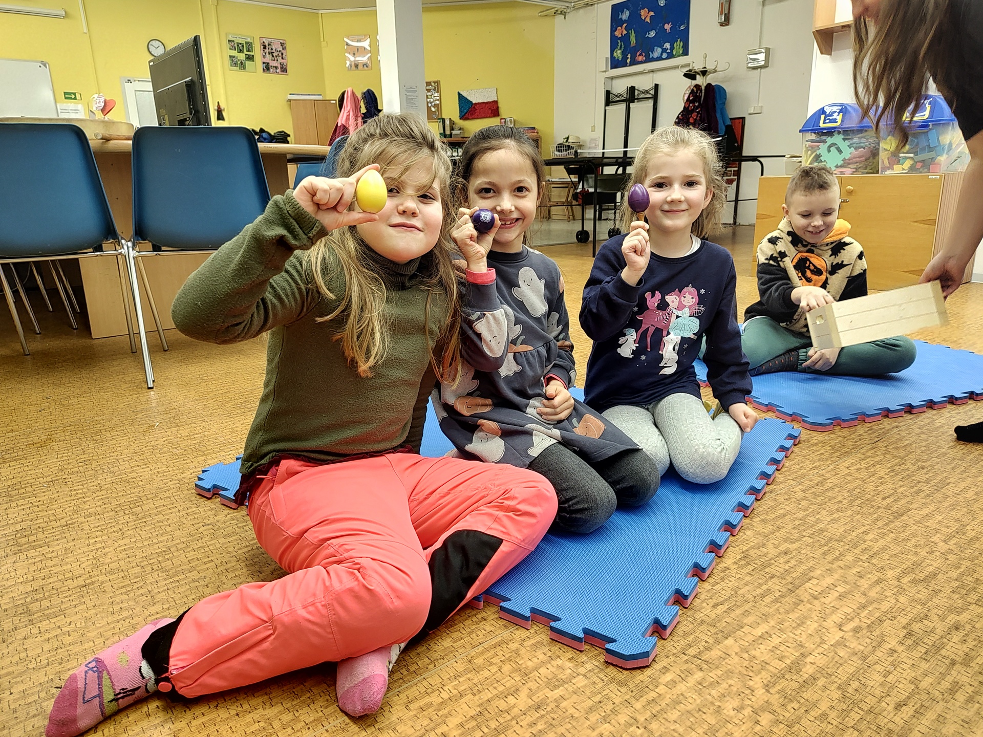 V pondělí 16. února se děti v rámci návštěvy ve Zrnku zúčastnily zajímavého programu zaměřeného na muzikoterapii. Během tohoto setkání měly možnost se seznámit s novými hudebními nástroji, které si i samy vyzkoušely. Program byl veden hravou a prožitkovou formou, která je velmi zaujala. Na závěr si všichni užili krátkou hudební relaxaci za doprovodu jemných tónů netradičních nástrojů, jako je deštný sloup nebo ocean drum. Děti odcházely obohacené o nové zážitky a zkušenosti s hudbou, která může být nejen zábavou, ale i cestou k odpočinku.