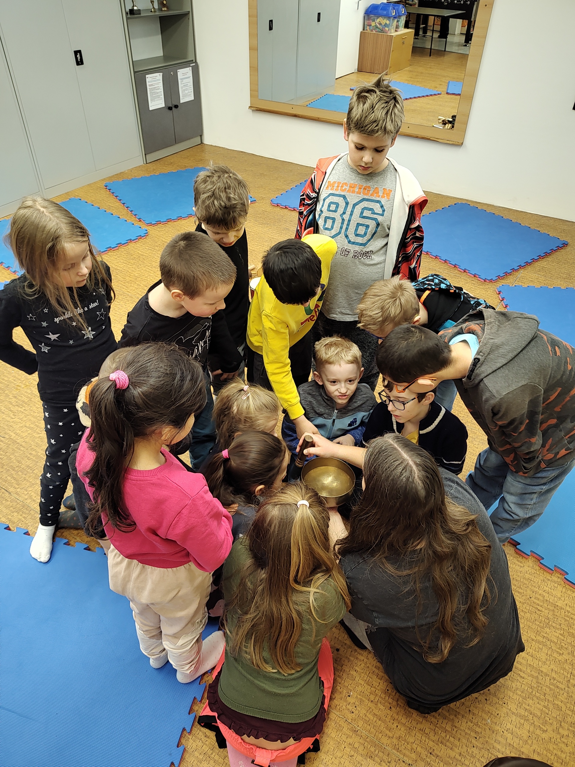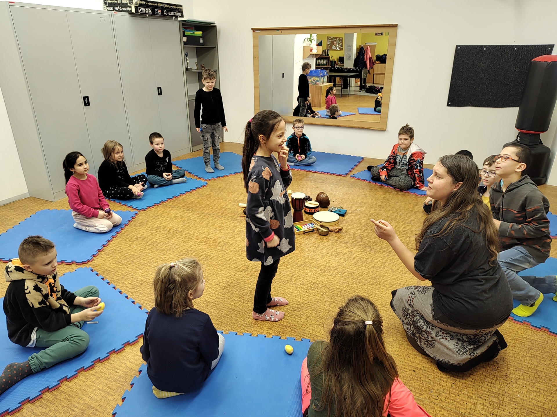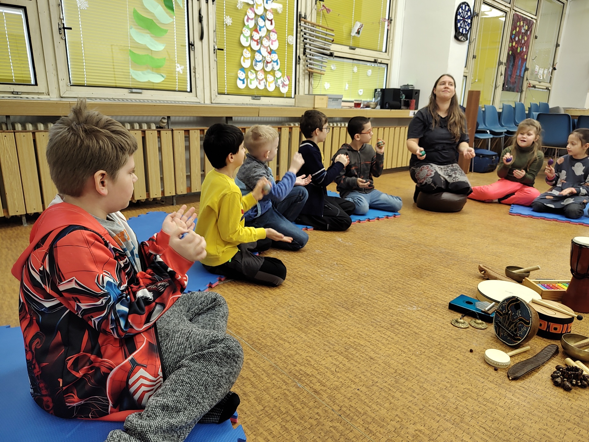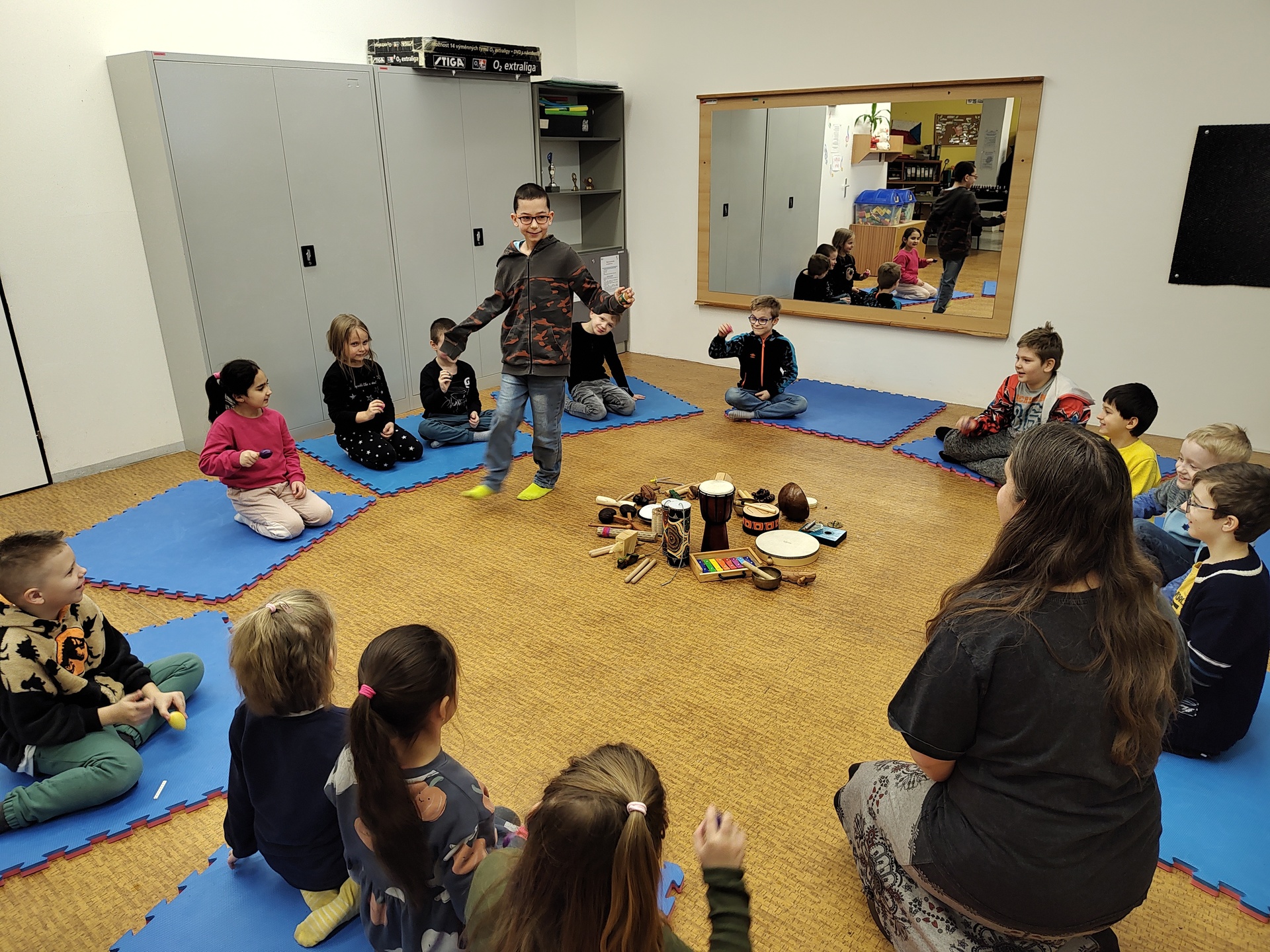V pondělí 16. února se děti v rámci návštěvy ve Zrnku zúčastnily zajímavého programu zaměřeného na muzikoterapii. Během tohoto setkání měly možnost se seznámit s novými hudebními nástroji, které si i samy vyzkoušely. Program byl veden hravou a prožitkovou formou, která je velmi zaujala. Na závěr si všichni užili krátkou hudební relaxaci za doprovodu jemných tónů netradičních nástrojů, jako je deštný sloup nebo ocean drum. Děti odcházely obohacené o nové zážitky a zkušenosti s hudbou, která může být nejen zábavou, ale i cestou k odpočinku.