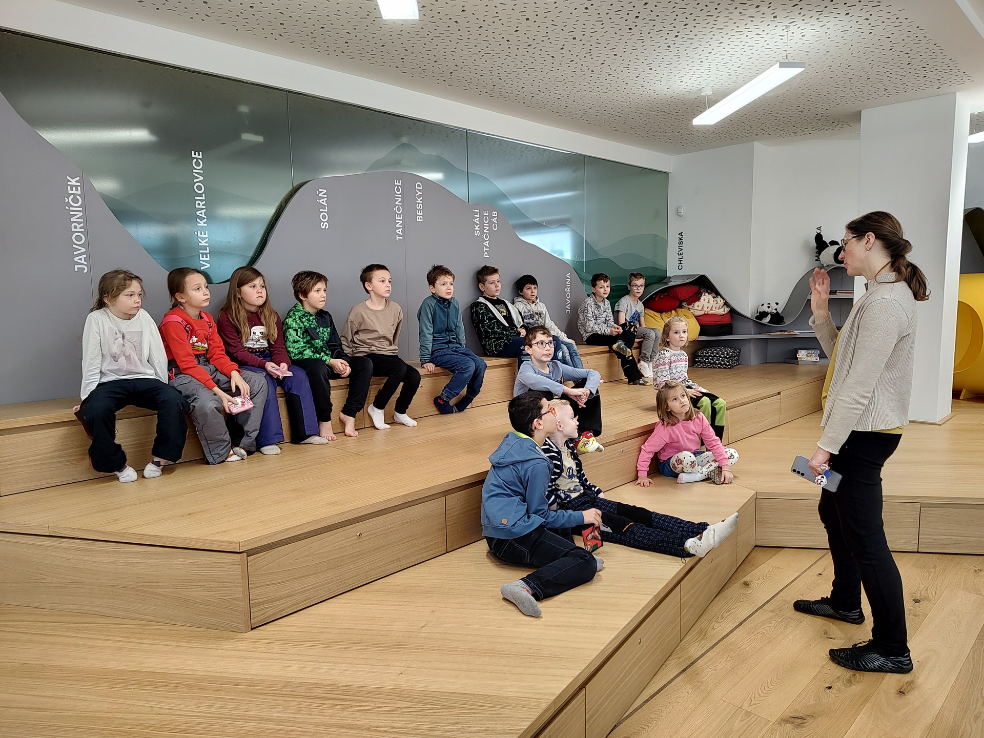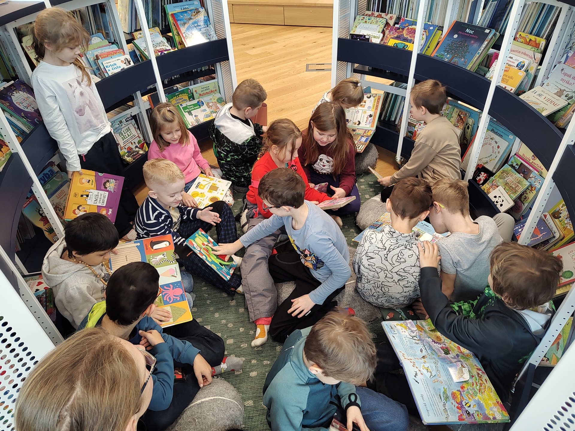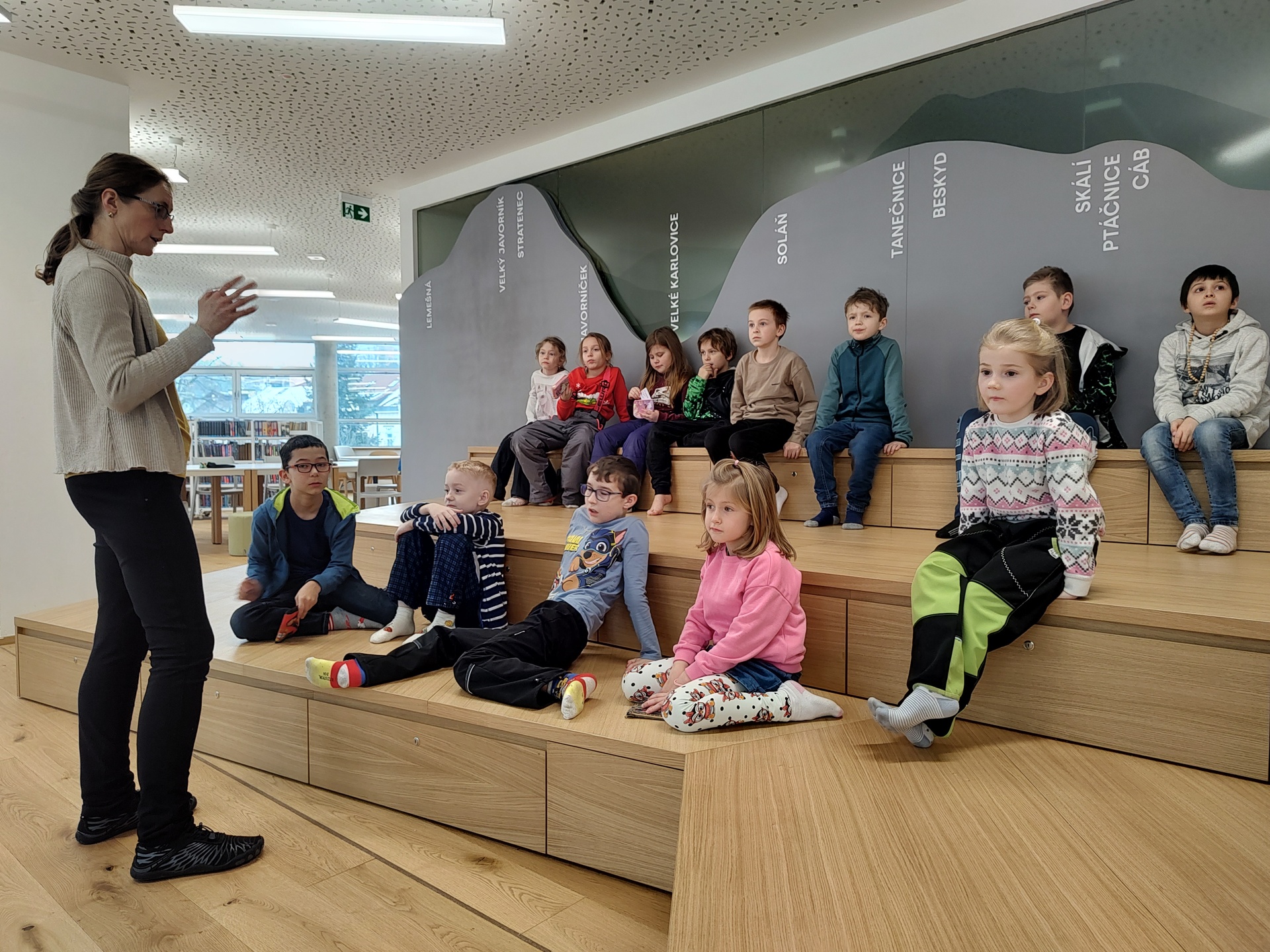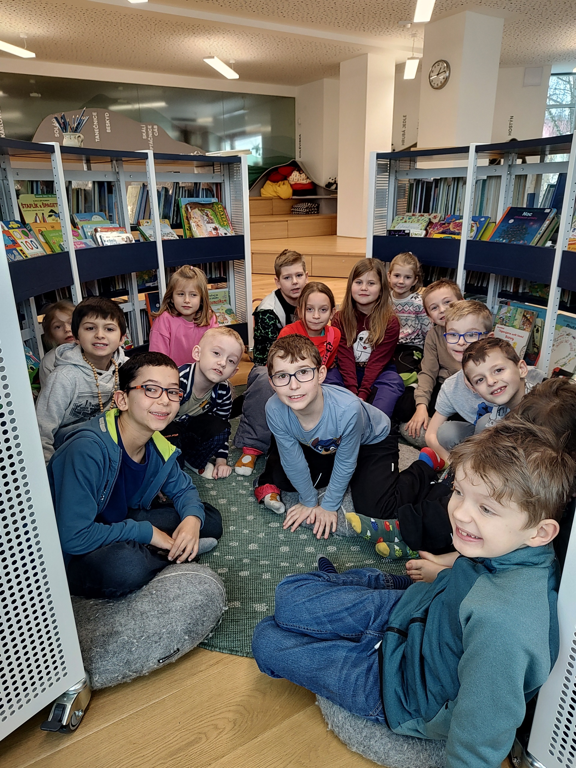 V pátek 16.1. se děti vydaly na návštěvu do nově zrekonstruované knihovny na Dolním náměstí. Hned po příchodu nás přivítala milá paní knihovnice, která nás celou knihovnou provedla a seznámila nás s jejím fungováním. Dětem ukázala, kde si mohou vybrat knížky, jak se knihy půjčují a jak se o ně správně starat. Knihovna se nám velmi líbila a už se těšíme, až ji znovu navštívíme.