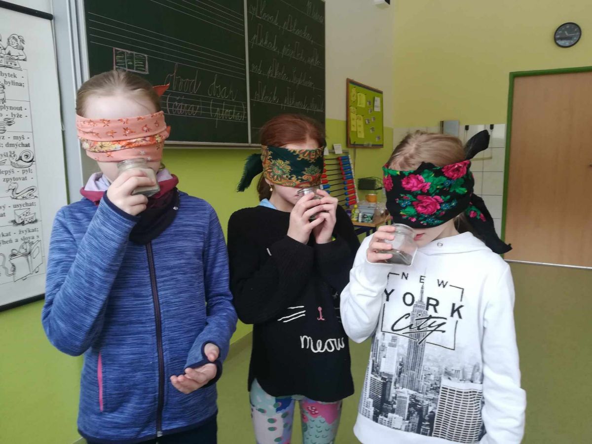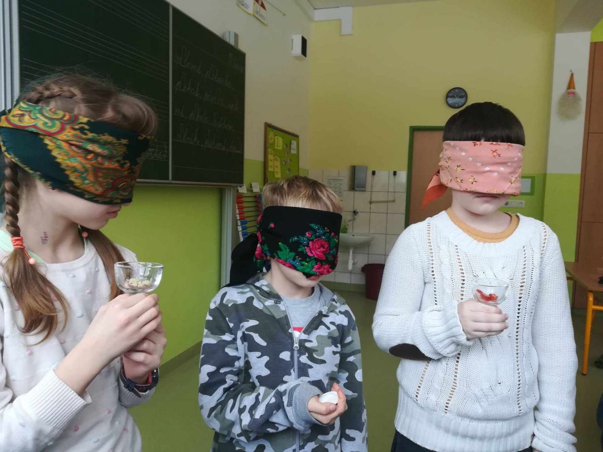 My jsme žáci 3.C, učíme se velice. Smysly máme v malíčku, známe vůni balíčků. Chutě máme vytříbené, daly zabrat, ne že ne. Takto učit se nás baví, my jsme žáčci hloubaví. Chutnali jsme sůl i cukřík, víme, kdo je lepší kuchtík. Kdo v kuchyni často kutí, poradí si s každou chutí.