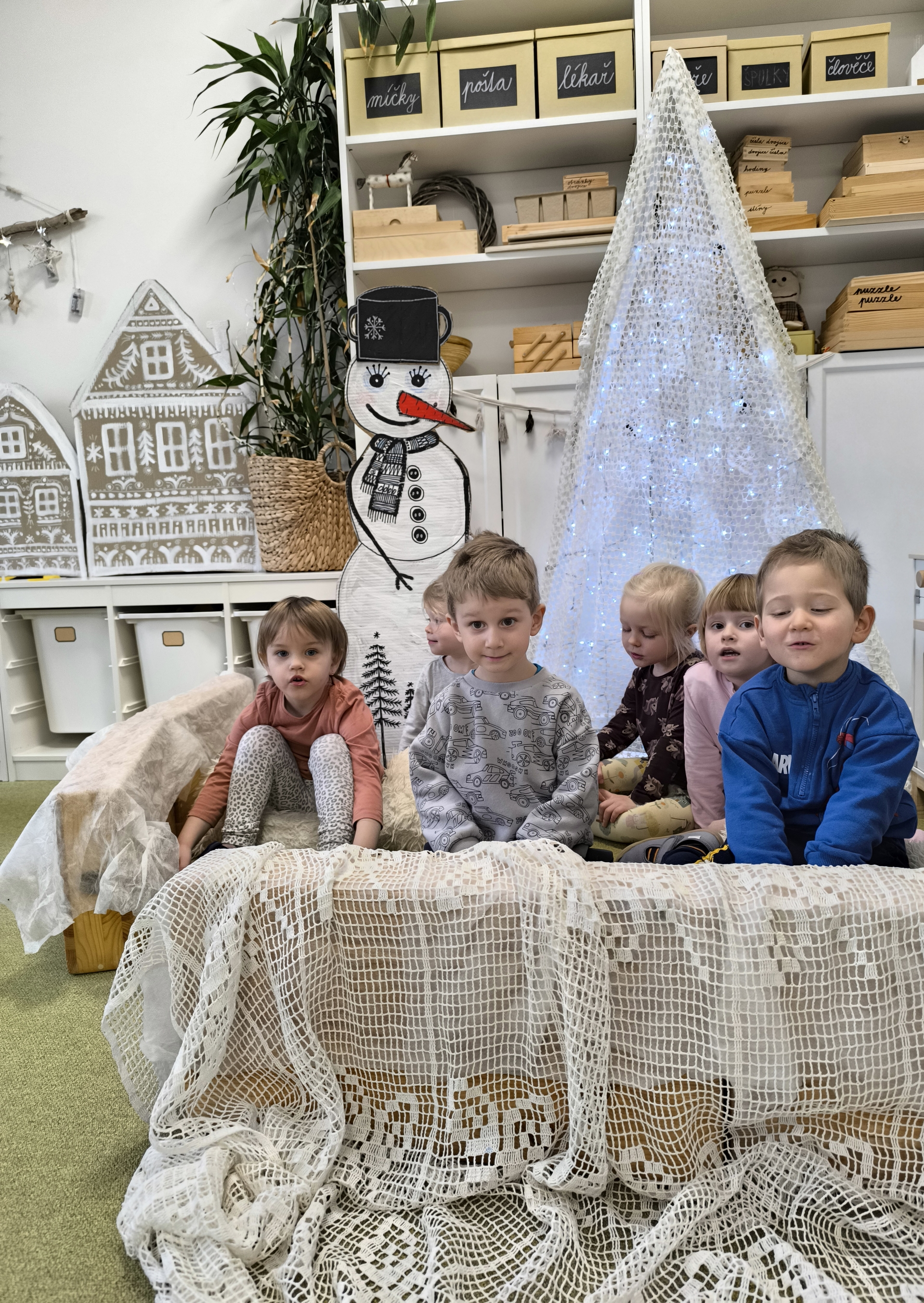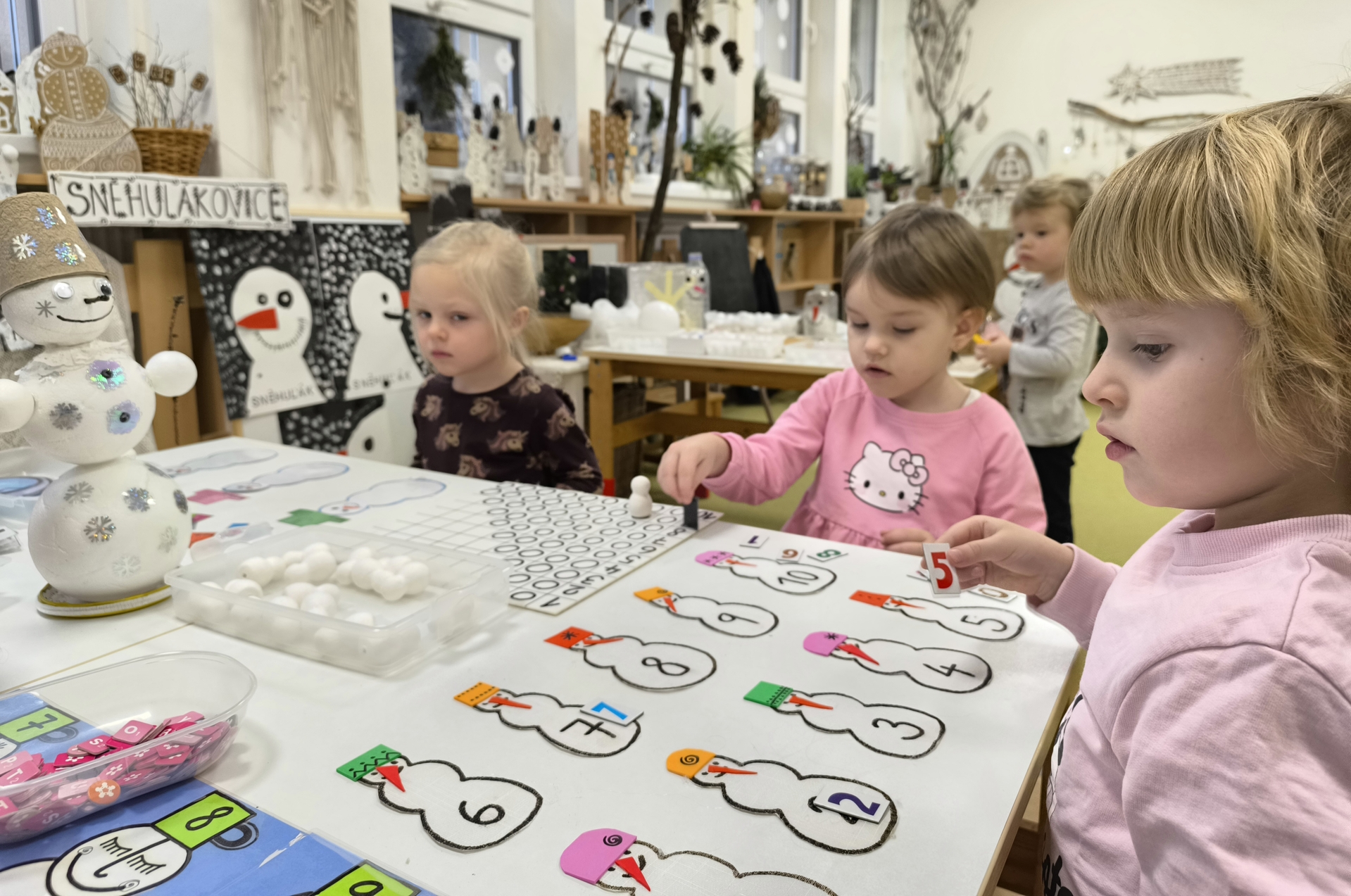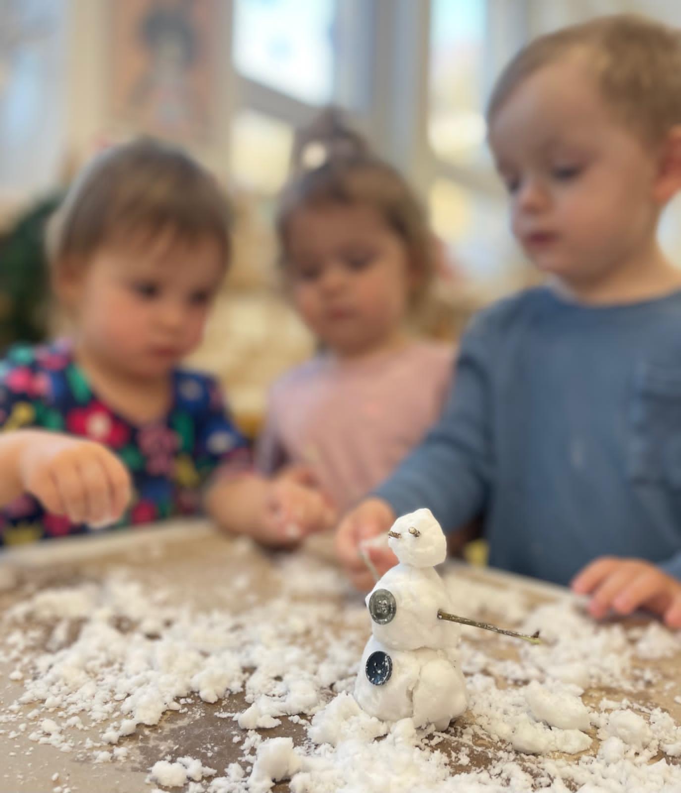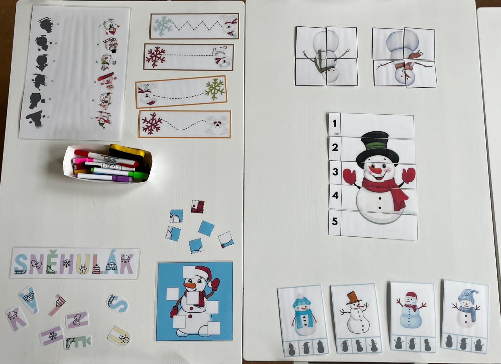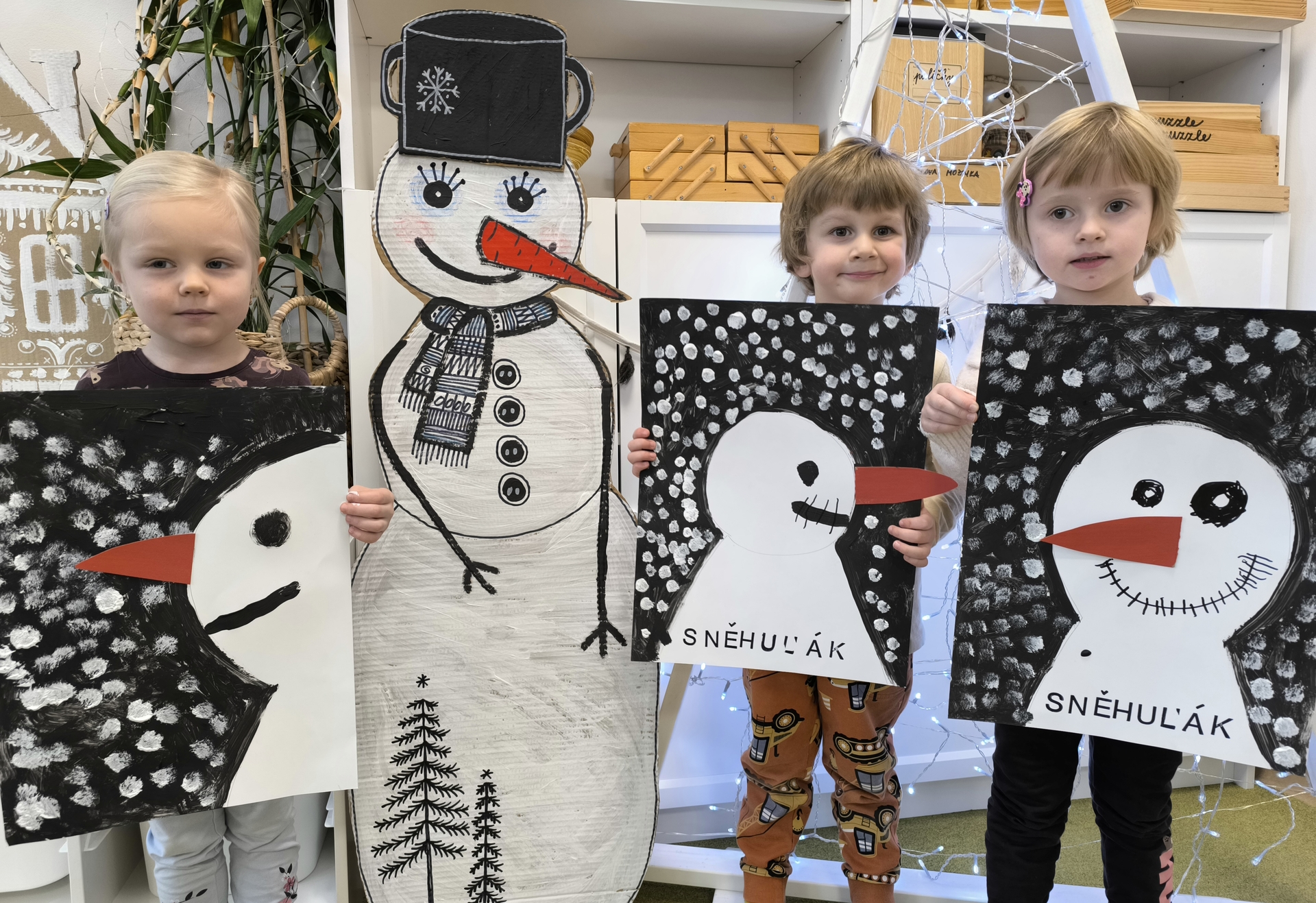 Sněhuláci všude kolem nás. Děti objevovaly svět sněhu a zimy všemi smysly a zapojily se do pestrých činností. Nechyběla radost, smích ani spousta zimní zábavy.