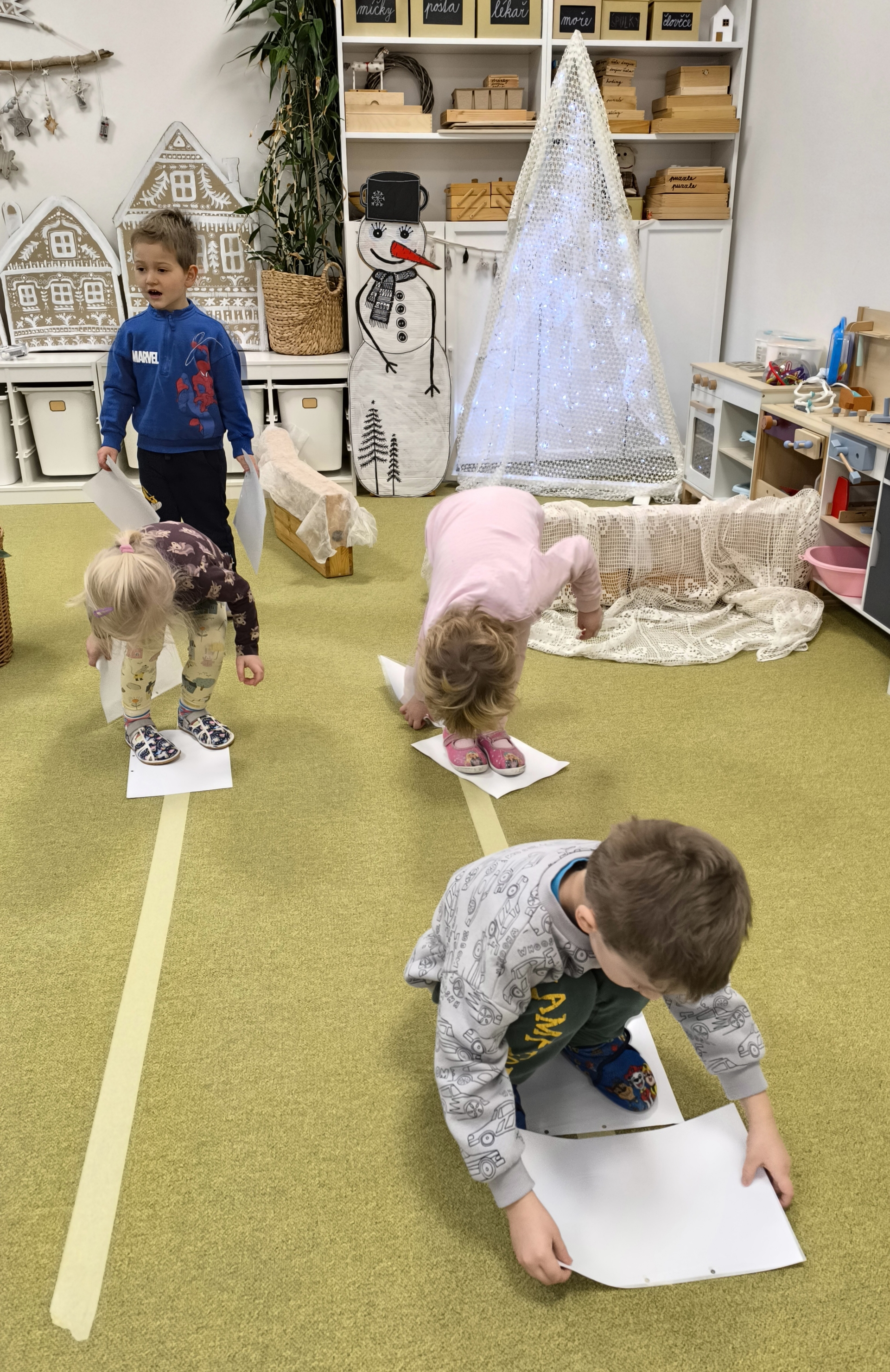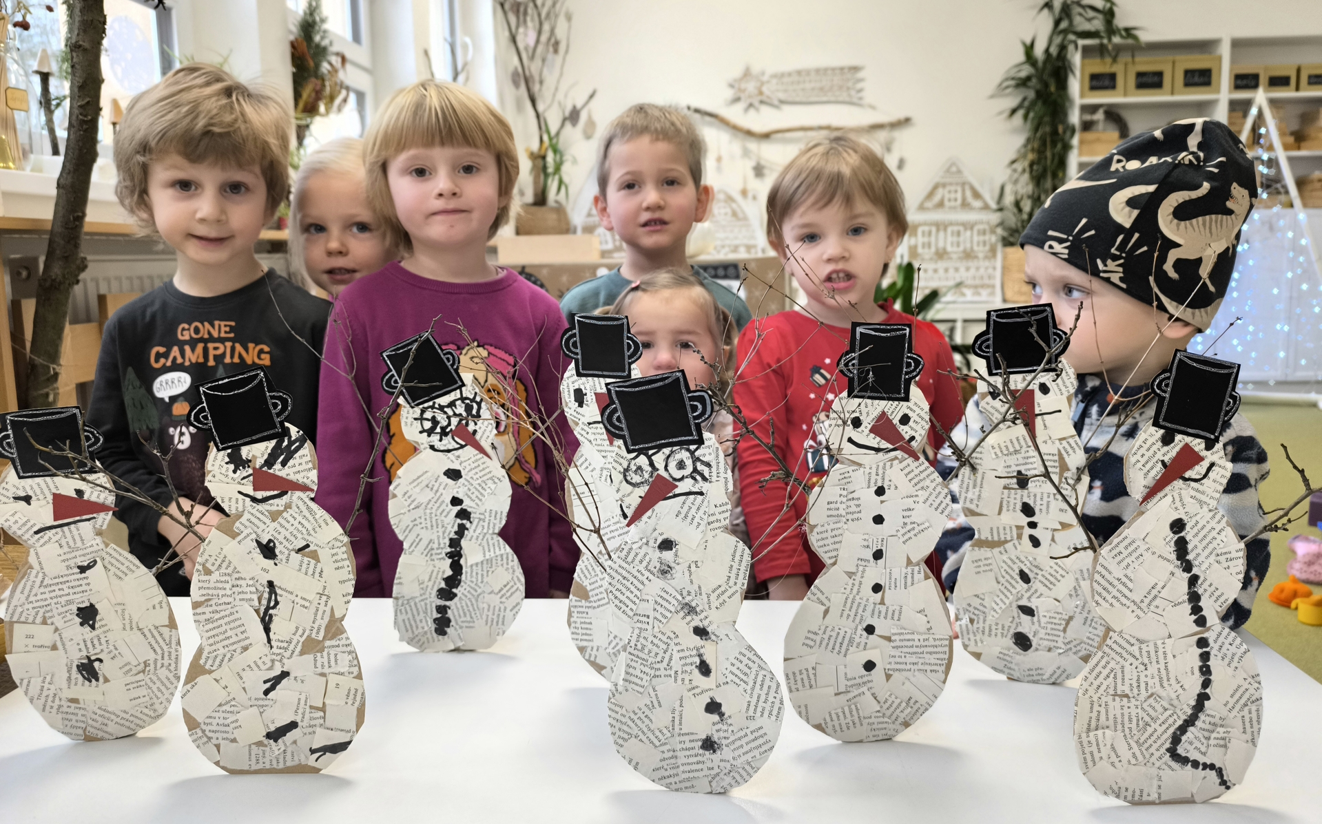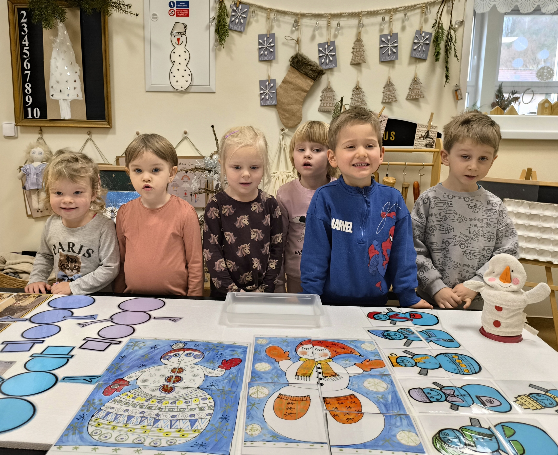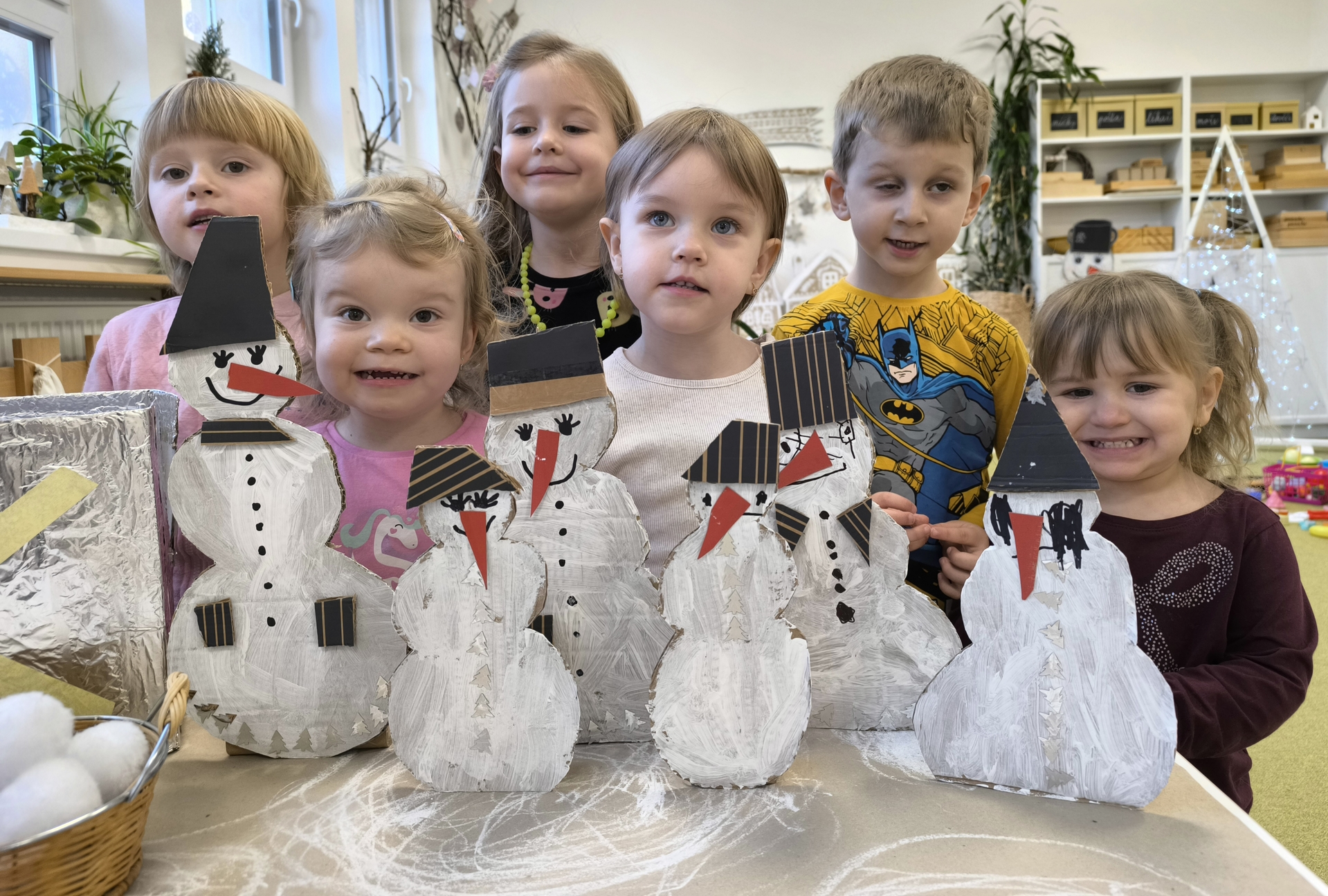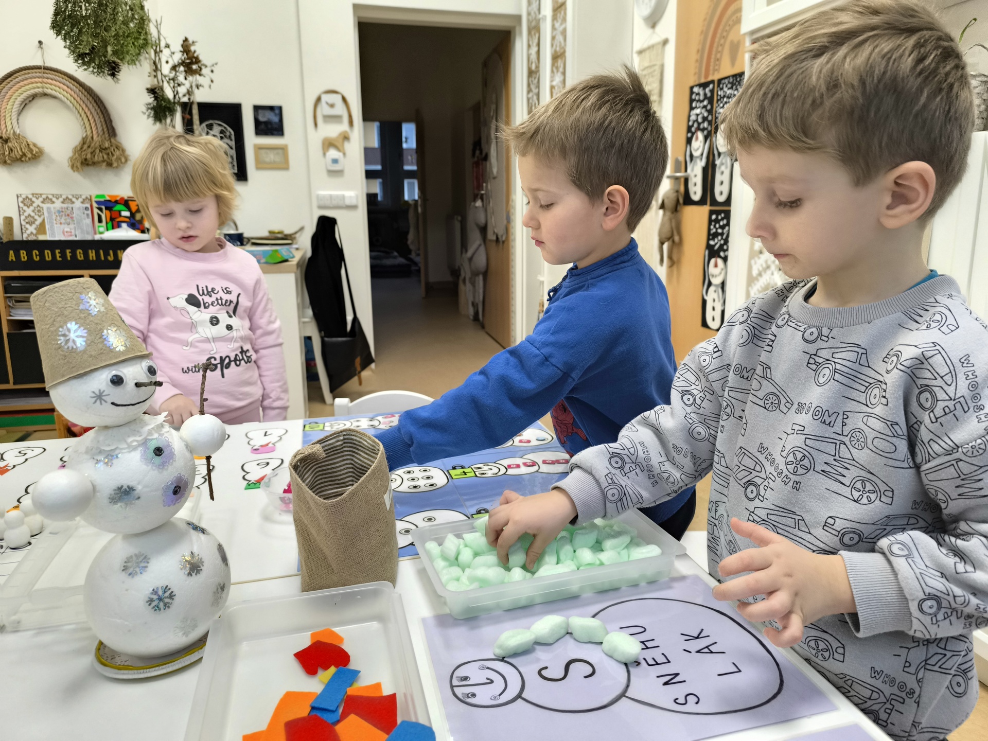 Sněhuláci všude kolem nás. Děti objevovaly svět sněhu a zimy všemi smysly a zapojily se do pestrých činností. Nechyběla radost, smích ani spousta zimní zábavy.
