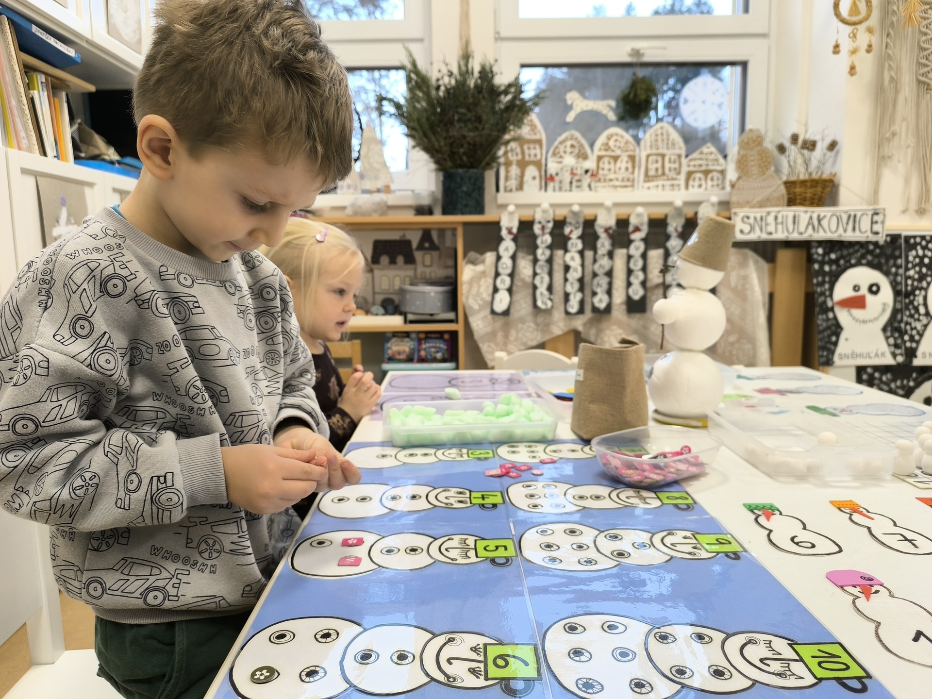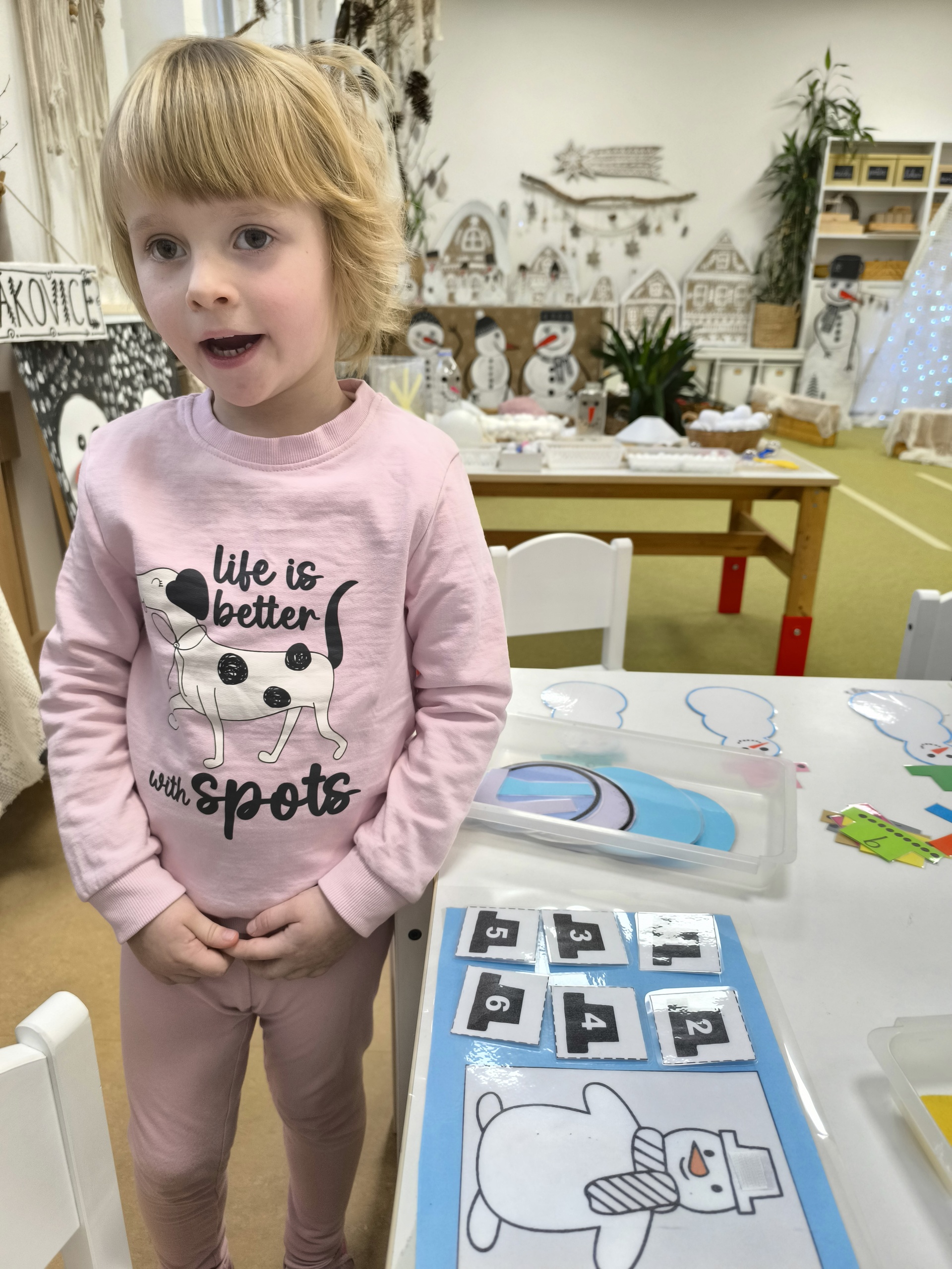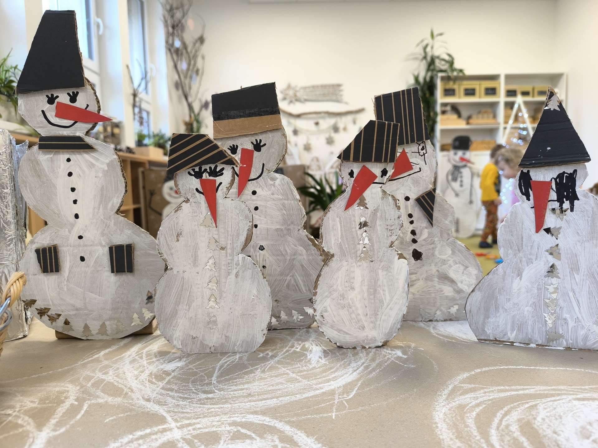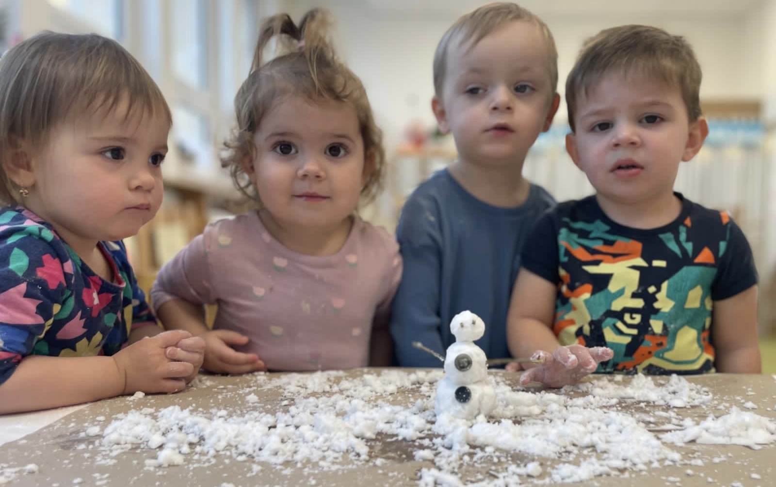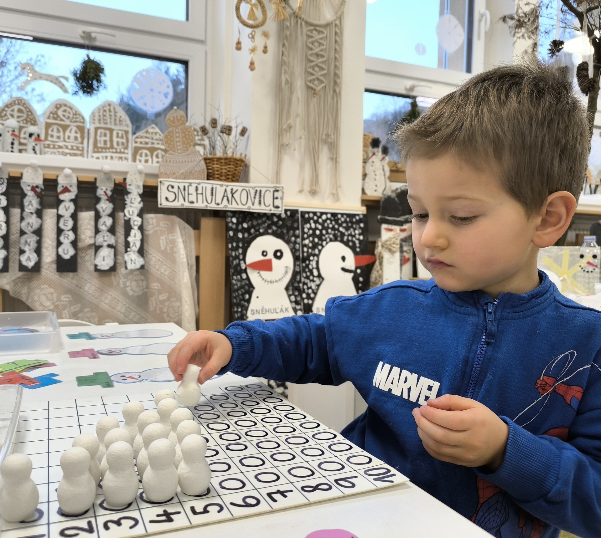 Sněhuláci všude kolem nás. Děti objevovaly svět sněhu a zimy všemi smysly a zapojily se do pestrých činností. Nechyběla radost, smích ani spousta zimní zábavy.