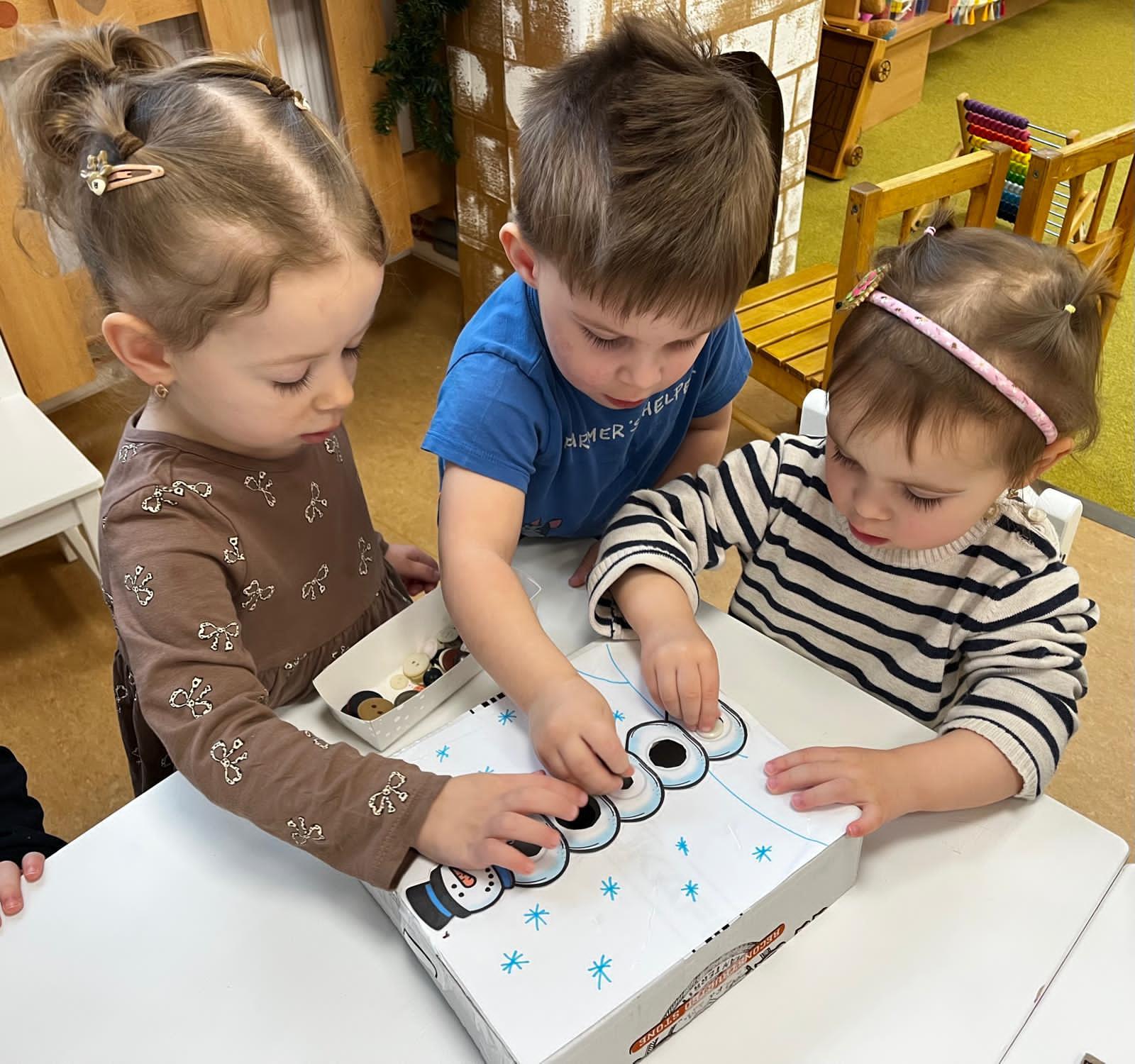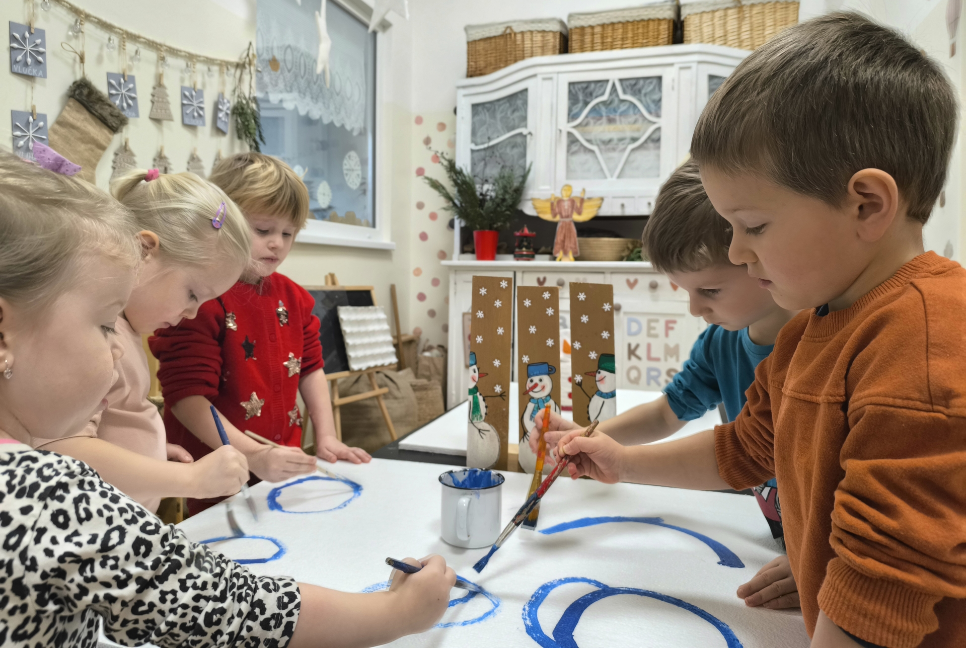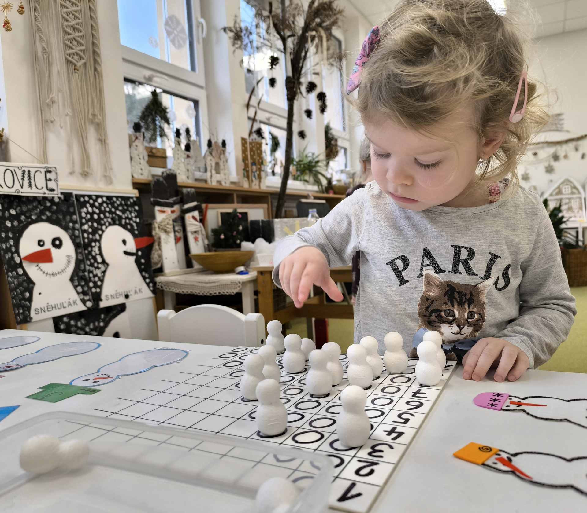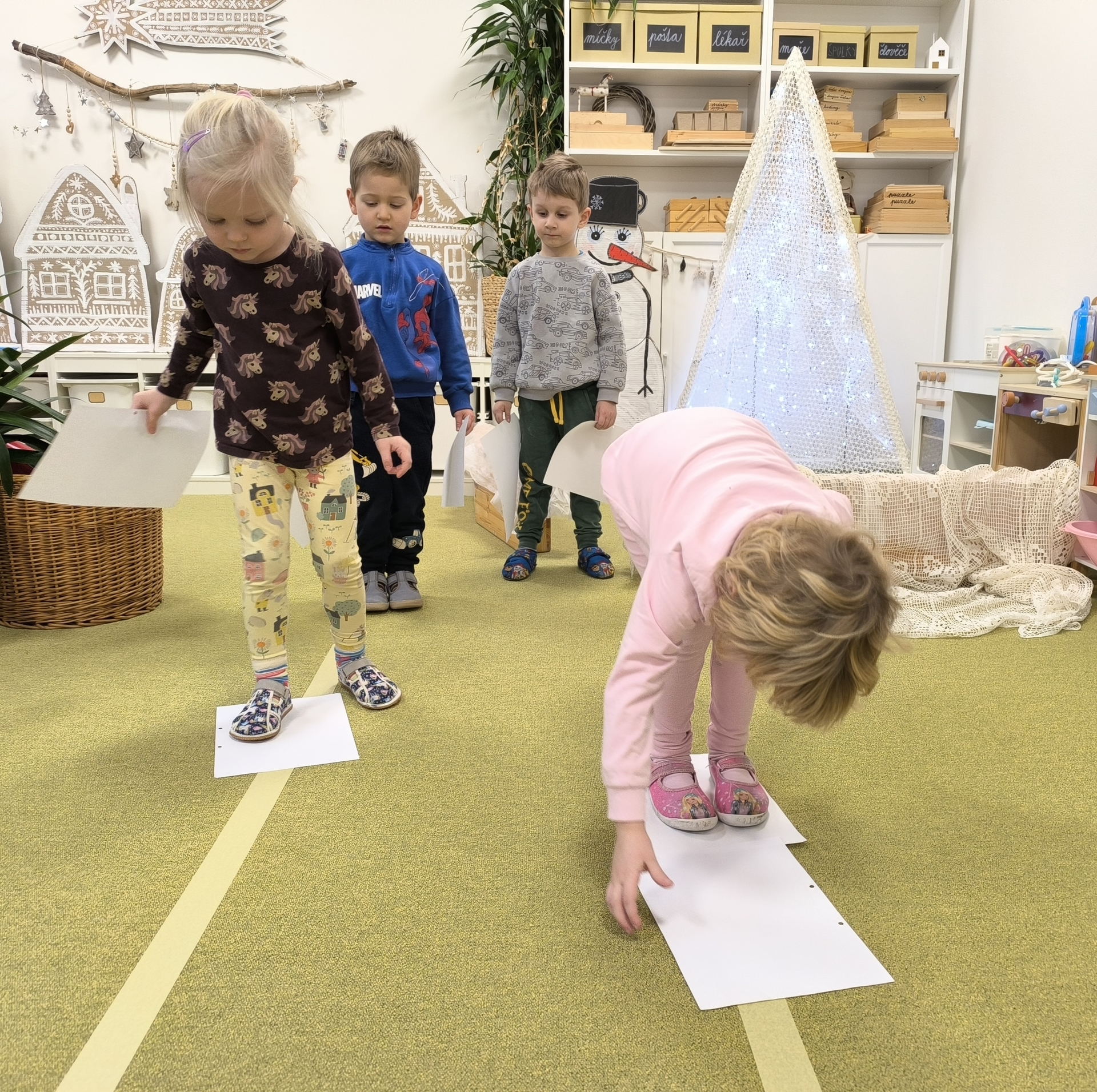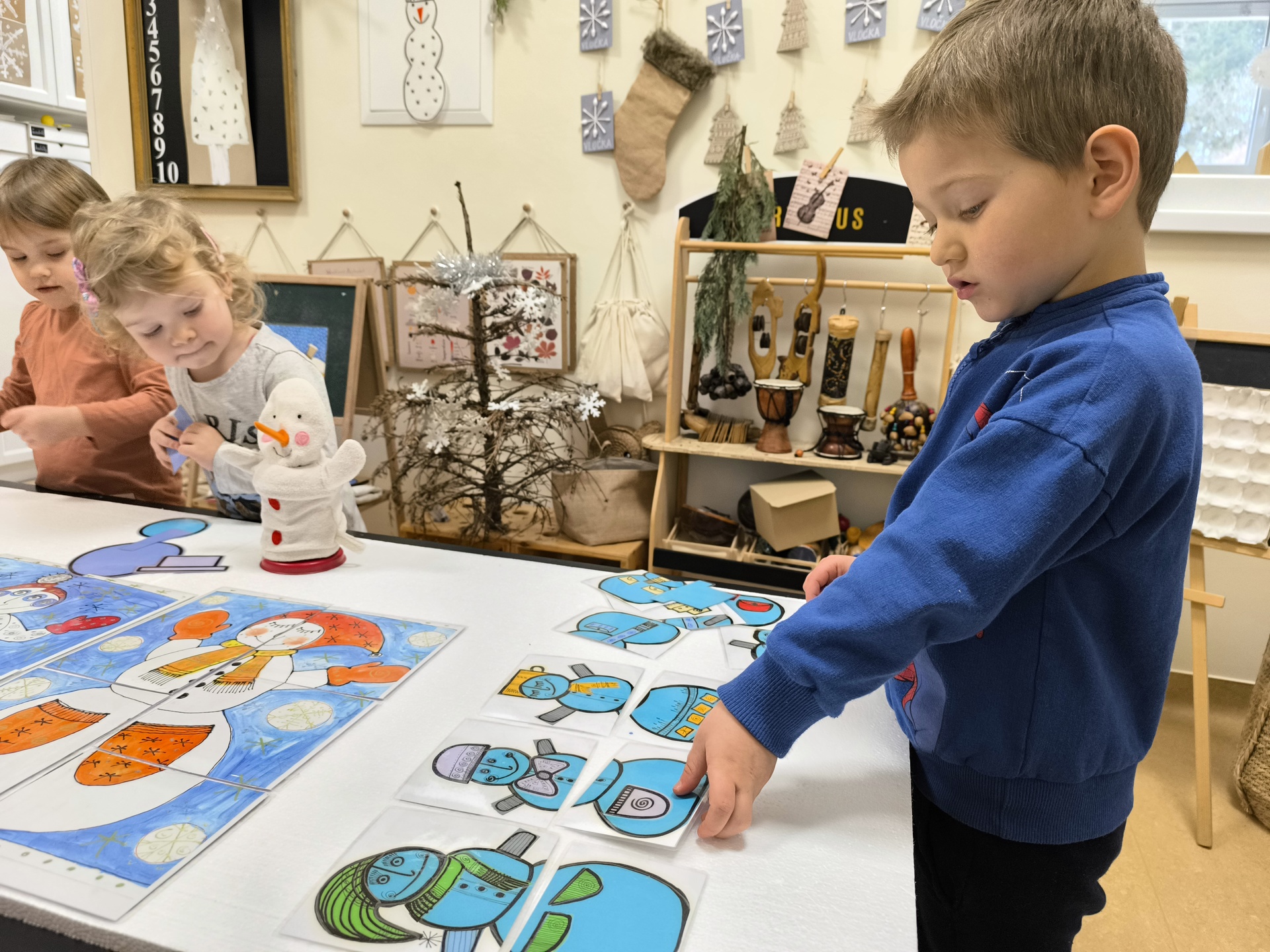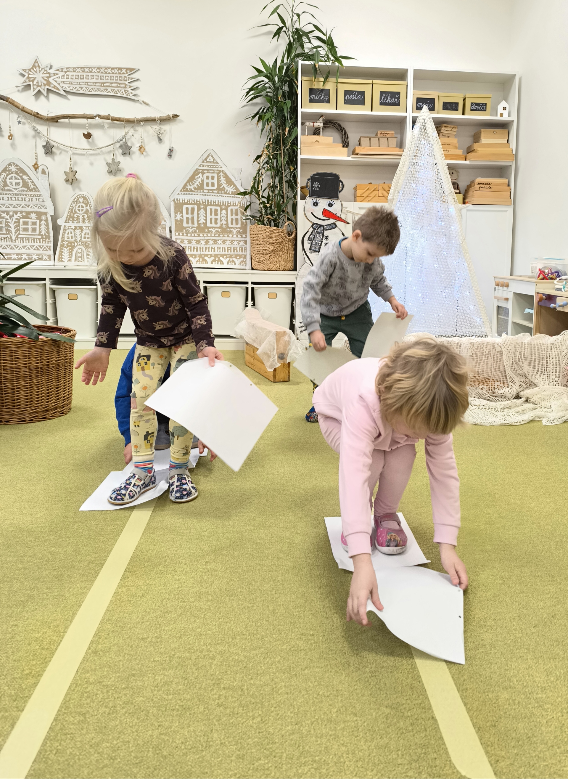 Sněhuláci všude kolem nás. Děti objevovaly svět sněhu a zimy všemi smysly a zapojily se do pestrých činností. Nechyběla radost, smích ani spousta zimní zábavy.