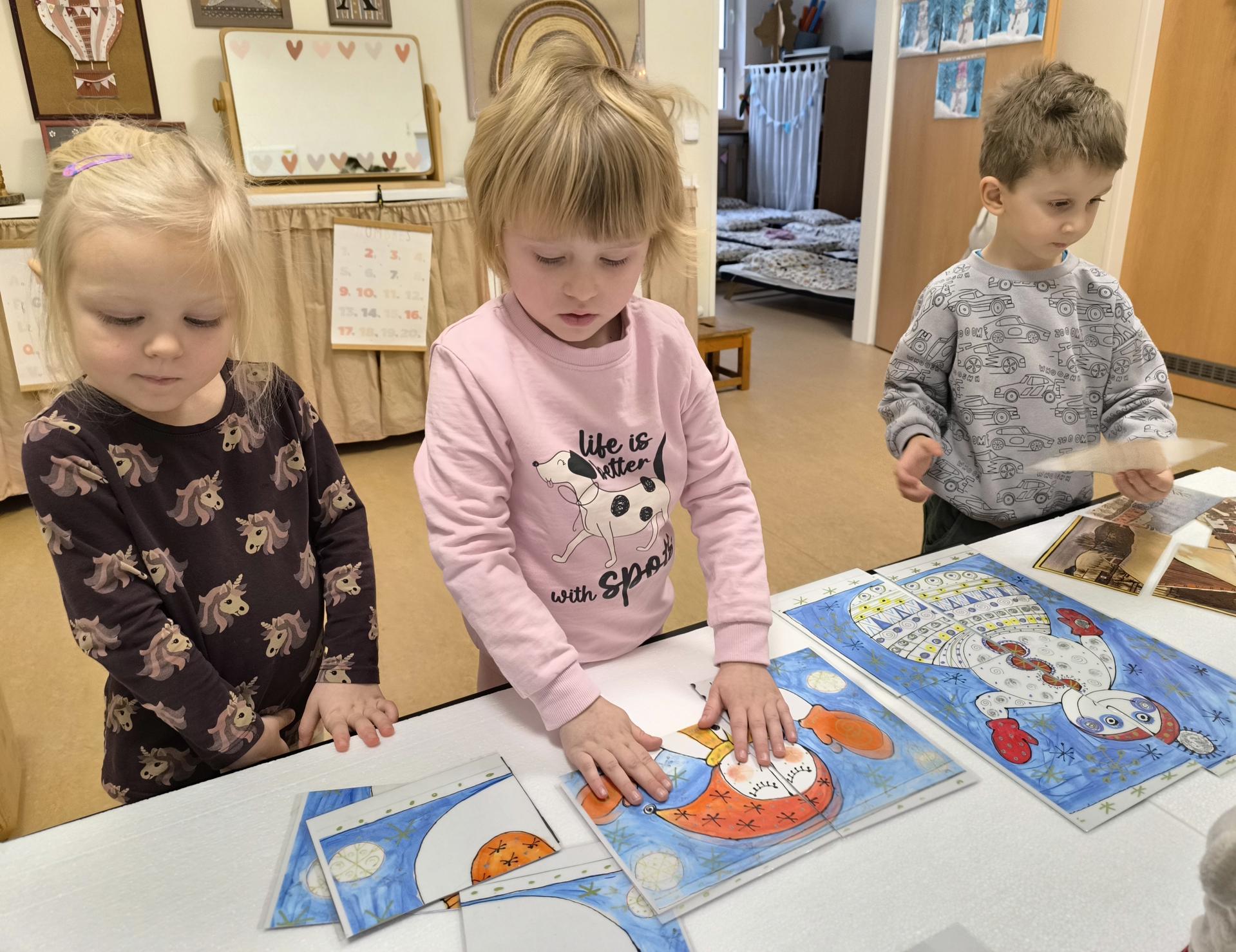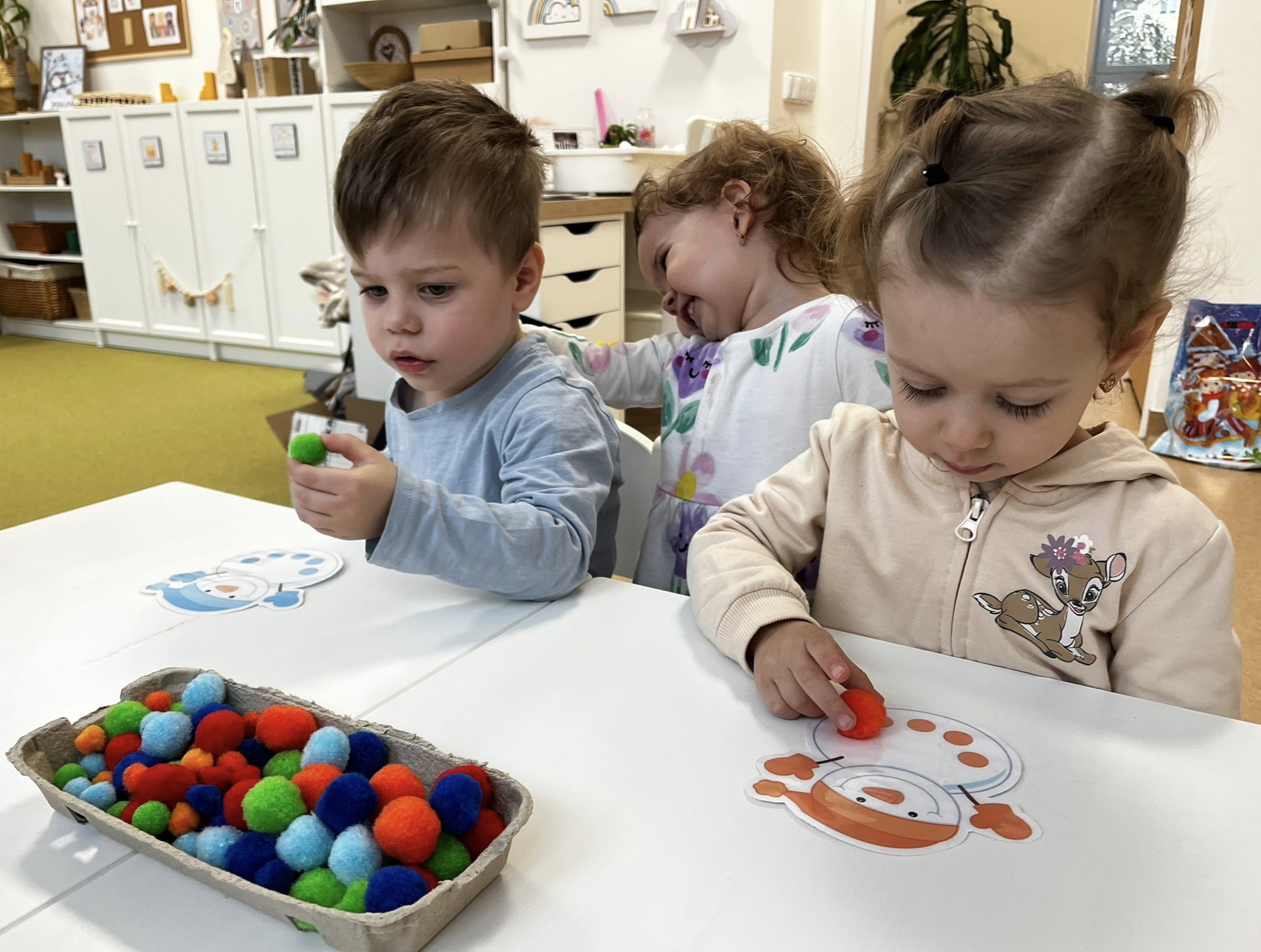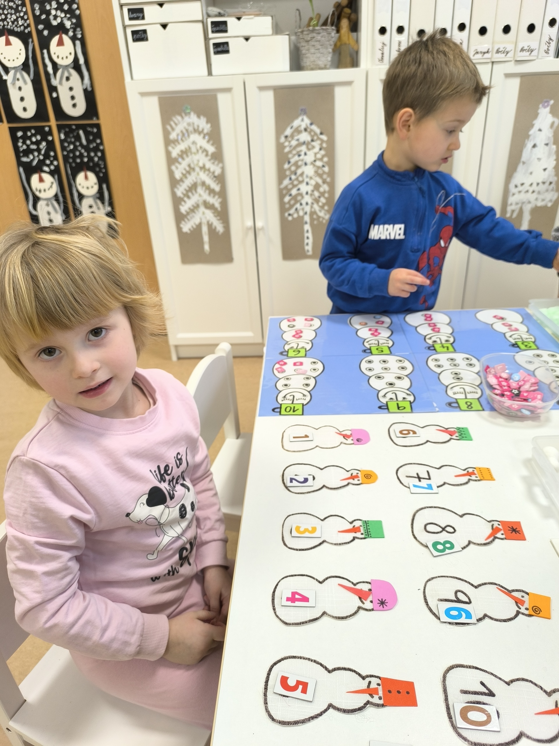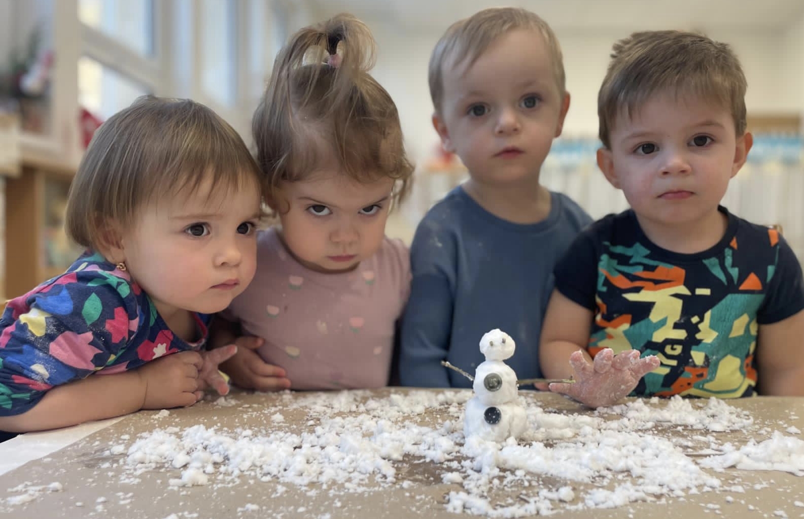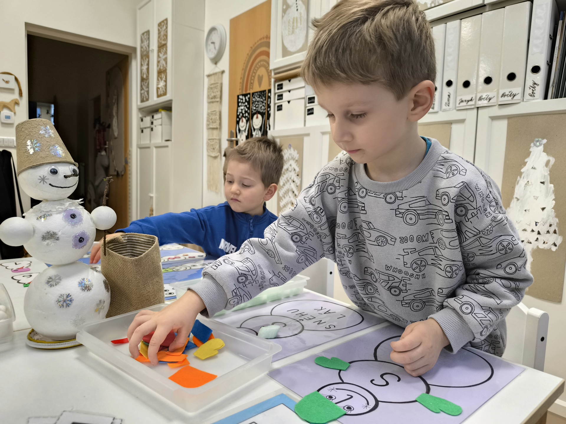 Sněhuláci všude kolem nás. Děti objevovaly svět sněhu a zimy všemi smysly a zapojily se do pestrých činností. Nechyběla radost, smích ani spousta zimní zábavy.