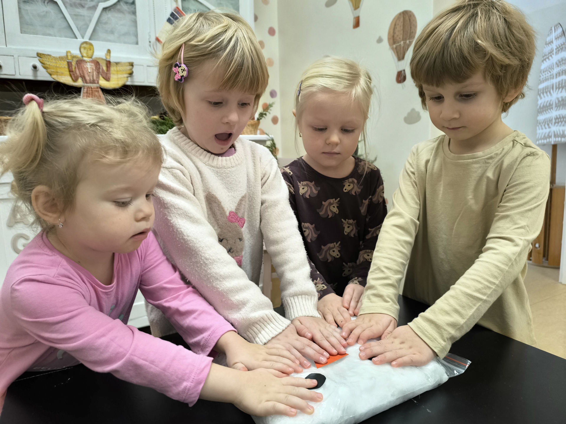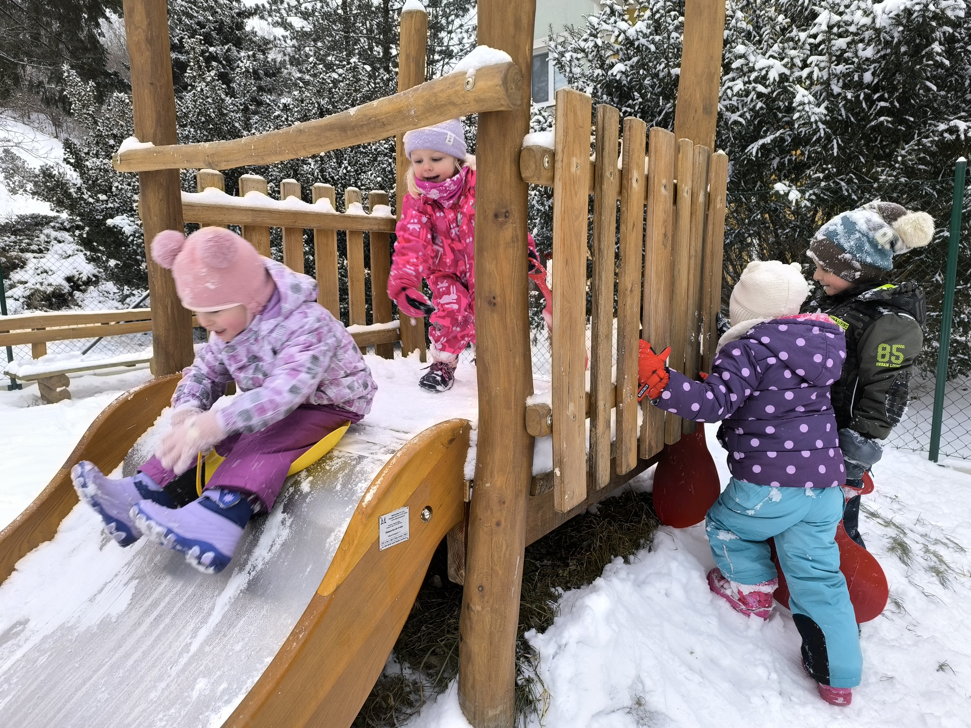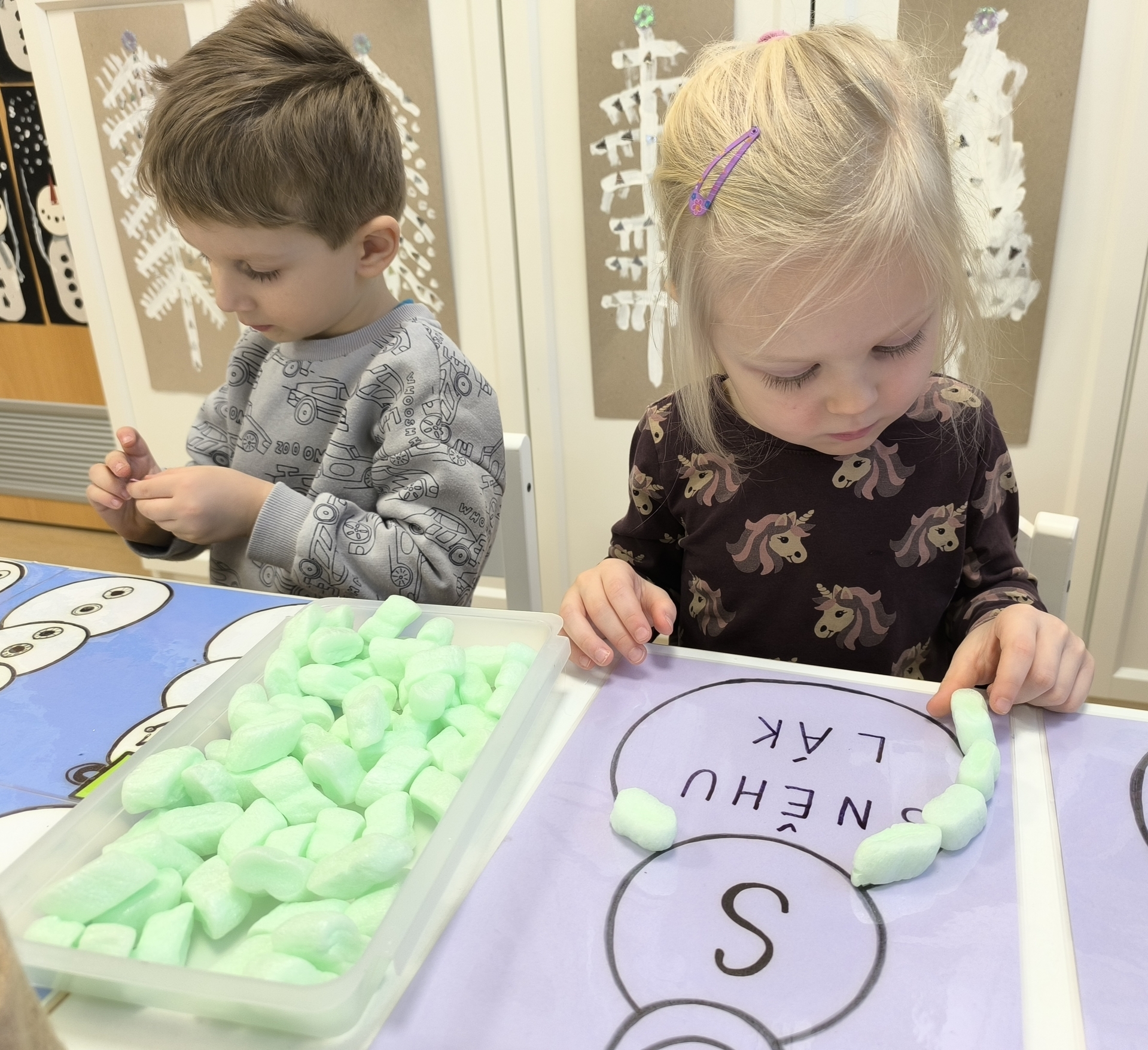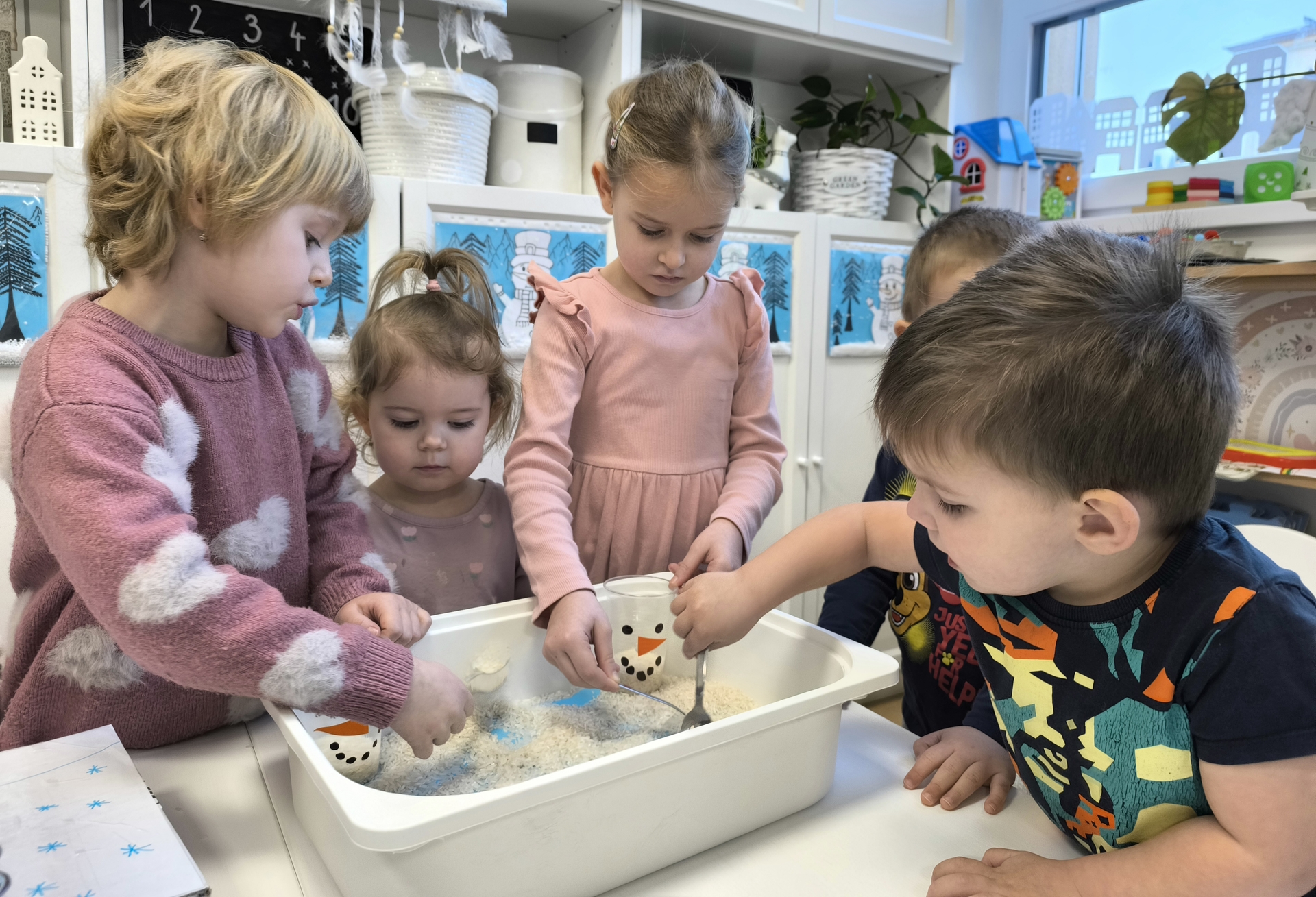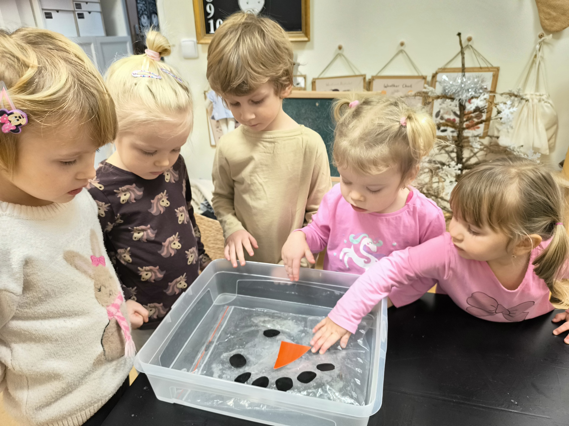 Sněhuláci všude kolem nás. Děti objevovaly svět sněhu a zimy všemi smysly a zapojily se do pestrých činností. Nechyběla radost, smích ani spousta zimní zábavy.