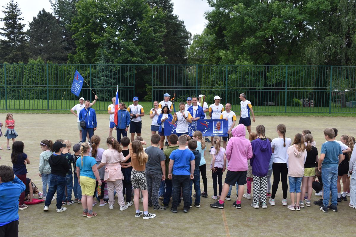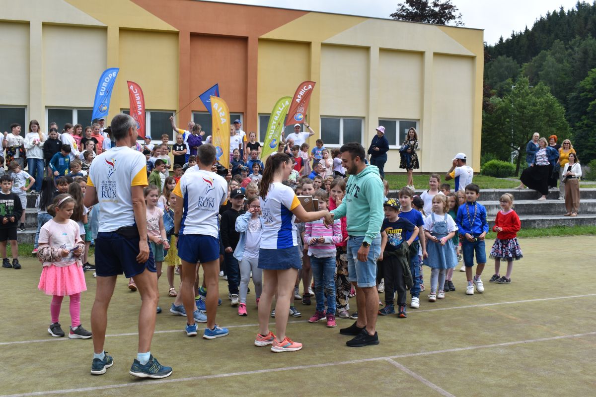Dne 29. 5. 2024 naši školu navštívili účastníci nejdelšího štafetového běhu. Jedná se o mezinárodní běh s hořící pochodní. Posláním je šířit mír, ochotu a lásku k sobě i druhým lidem. Žáci prvního stupně měli možnost se seznámit s běžci napříč různými státy. Na začátku programu tito běžci mluvili cizími jazyky, které děti rozpoznávaly a přiřazovaly k nim příslušné státy. Po představení běžců následovalo zamýšlení se nad tím, co vše mír obnáší, a jak jej můžeme podpořit. Nechybělo ani motto k Mírovému běhu "Mír začíná u mě", stejně jako úryvek z písně "Peace Run" s jednoduchým pohybovým doprovodem. Poté už následoval samotný běh kolem mateřské školy.