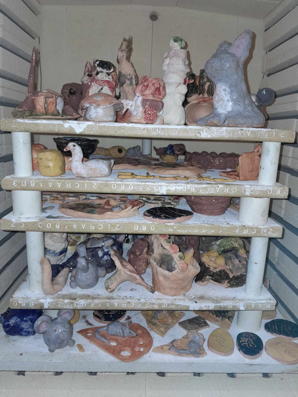 Děti navštěvující keramický kroužek se neustále zdokonalují v tvoření s hlínou. Je tu další várka povedených výrobků. Mgr. Eliška Hořanská
