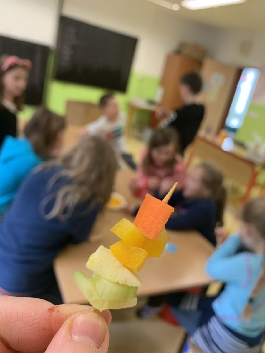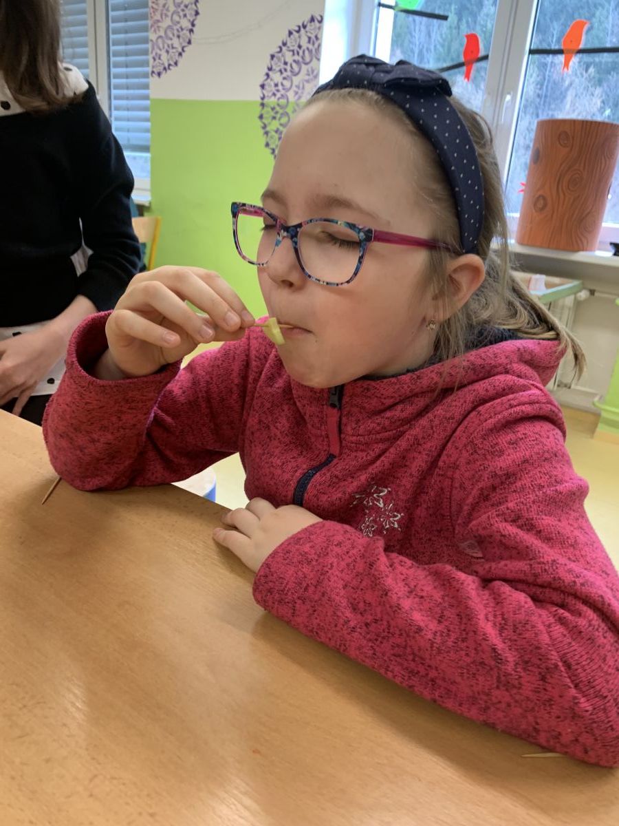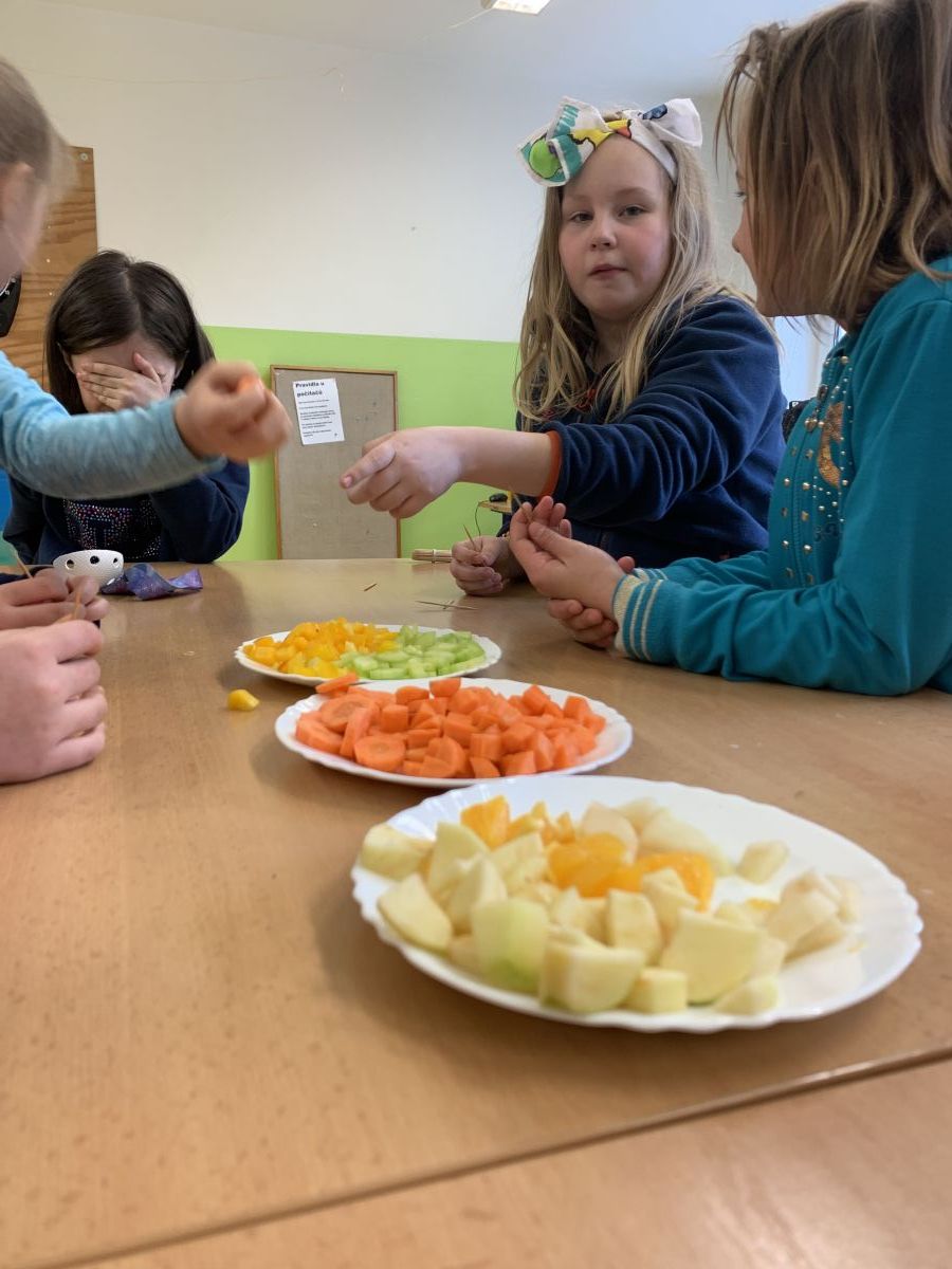 Že s dětmi rádi mlsáme, to se o nás dobře ví. Sladkosti jsme výjimečně odložili stranou a na Světový den zdraví uspořádali malou ochutnávku ovoce a zeleniny. Ochutnali jsme různé kombinace a chutě jsme rozpoznávali na čas.