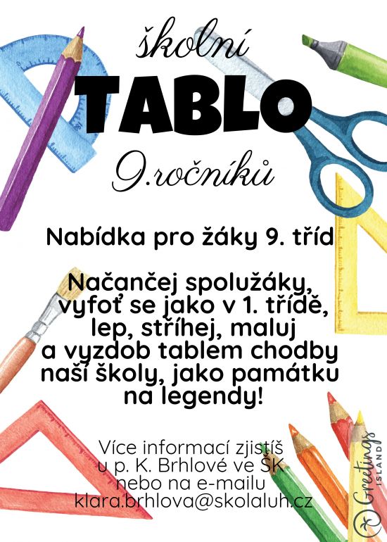 Jsi deváťák? Vytvořme společně tablo Vaší třídy a vyzdobme jím naši školu.
