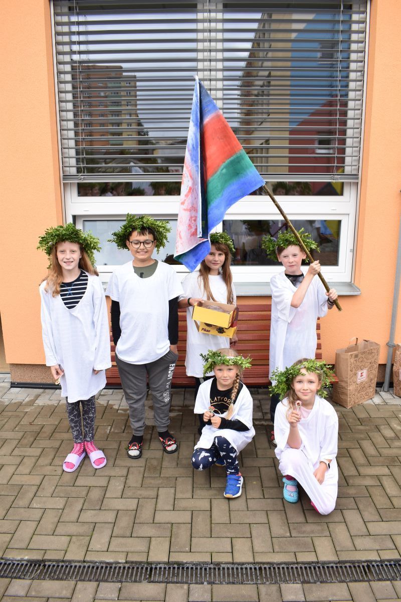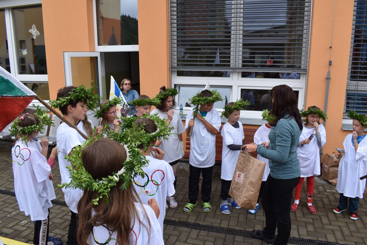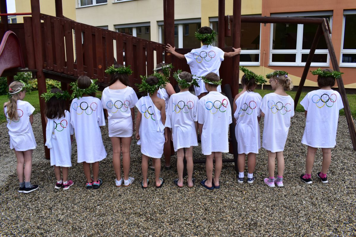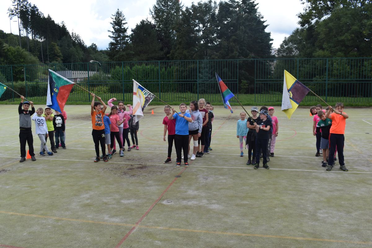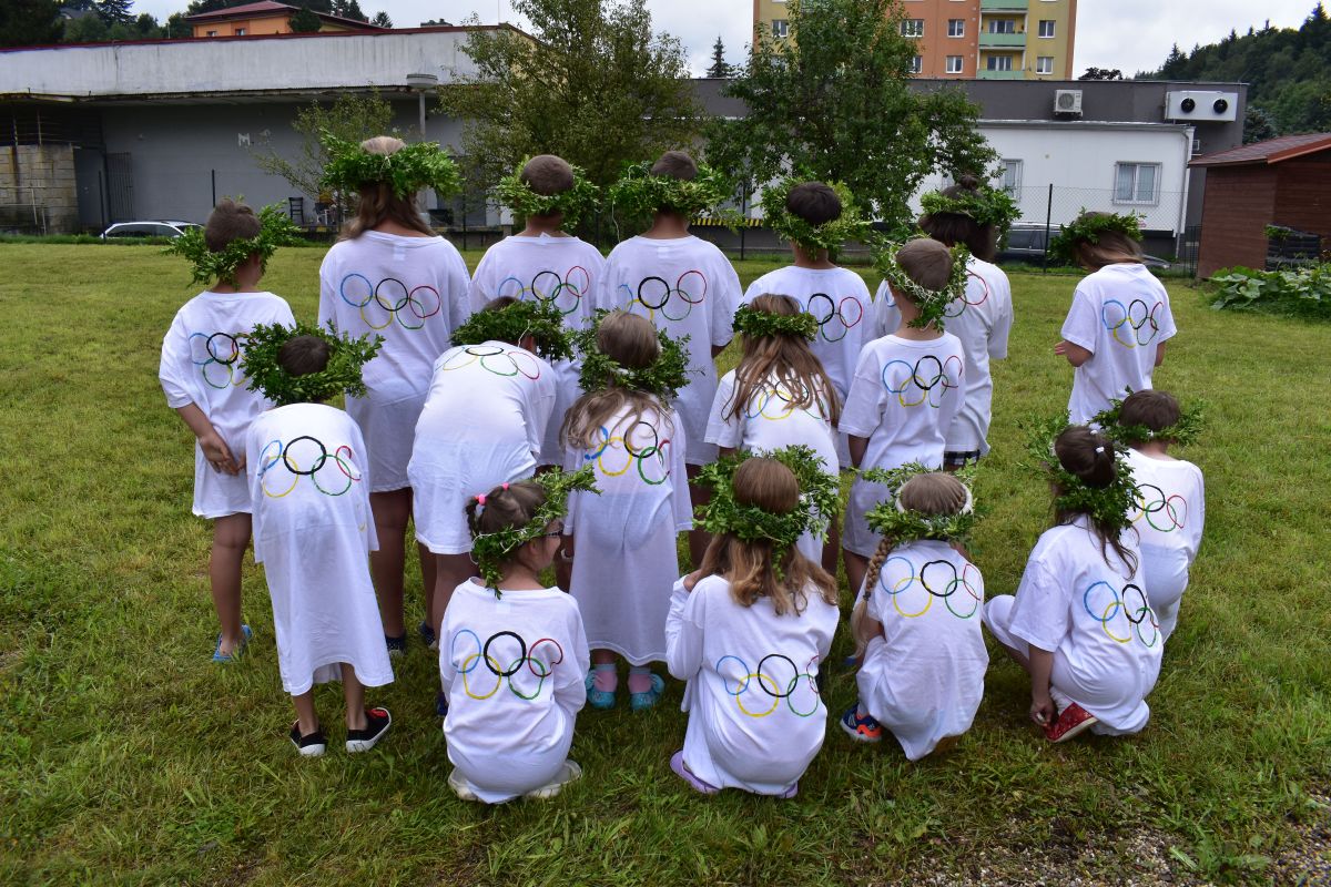 První den se děti rozdělily do týmů. Každý tým si vymyslel název země a namaloval vlajku. Odpoledne se pak zápolilo v atletických disciplínám.