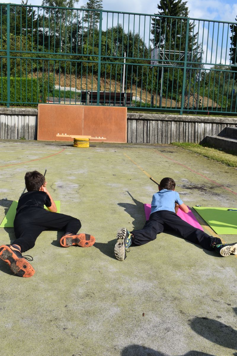 Během dalších dnů jsme se seznámili s lukostřelbou, střelbou ze vzduchovky, vyzkoušeli jsme si vytrvalostní běh a plaveckou štafetu. Svou zdatnost jsme prověřili na lezecké stěně a správné rozhodování při hře Přežití v poušti.
