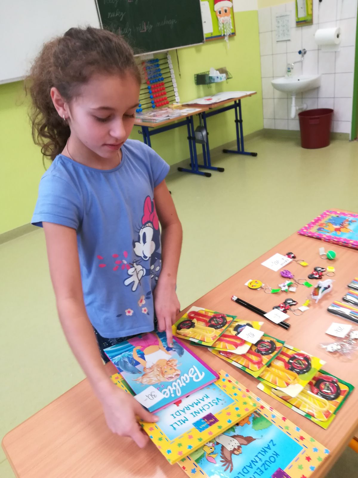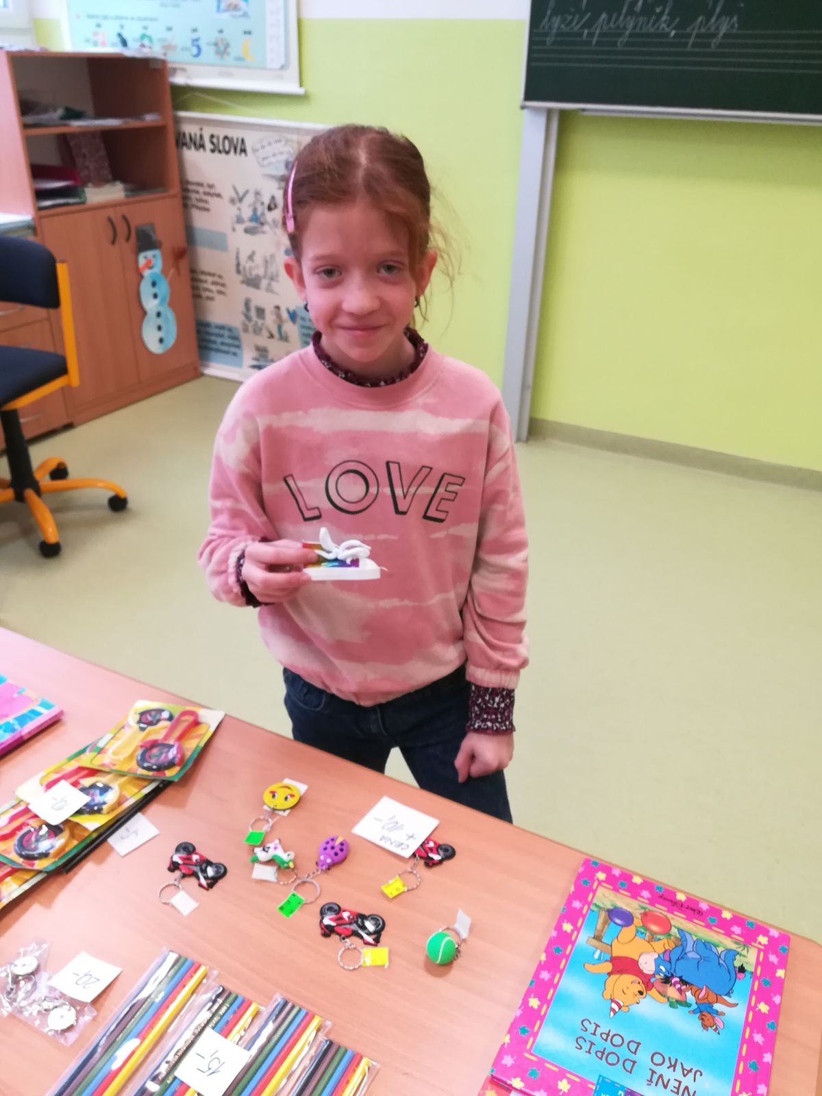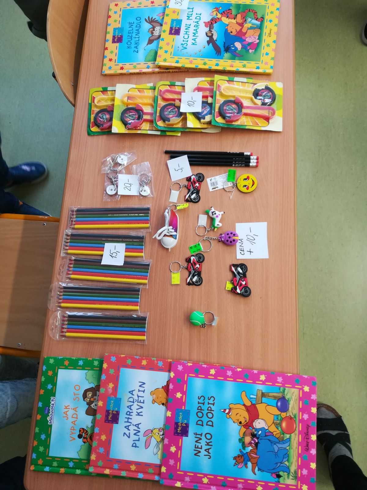Tentokrát byly ke koupi krásné knížky, pastelky, tužky, atraktivní přívěšky na klíče, zábavné minihry a bonbónky. Zážitky dětí jsou zachyceny na následujících snímcích.