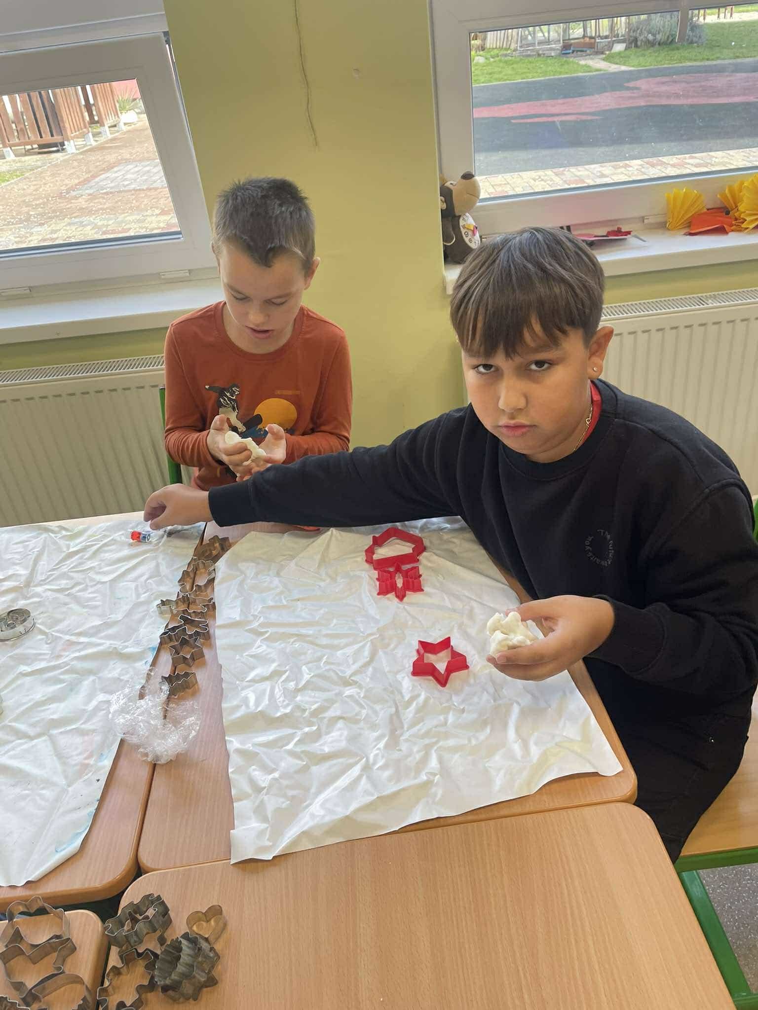 Vánoční koledování se blíží, proto se i třída IV. A zapojila do příprav. Ze studeného porcelánu děti vykrájely všelijaké vánoční motivy, do kterých špejlí udělaly dírky, aby se ozdoba mohla pověsit na stromeček. Teď už stačí jen dírkou provléct provázek a ozdoby zabalit do balíčků. Tyto výrobky a spoustu dalšího na Vás bude čekat už tento čtvrtek na našem vánočním jarmarku. Tak určitě přijďte! Procházková Tereza a třída IV. A