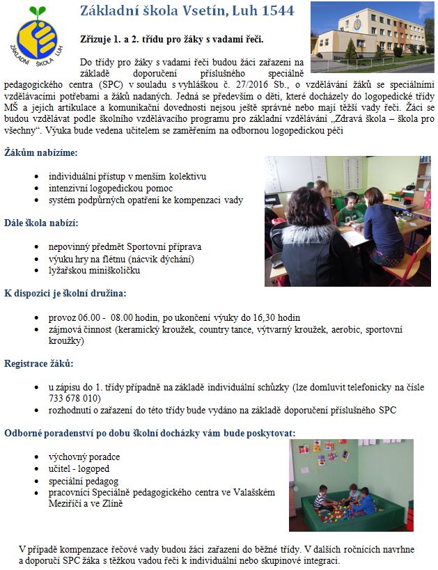 Třídy pro žáky s vadami řeči
