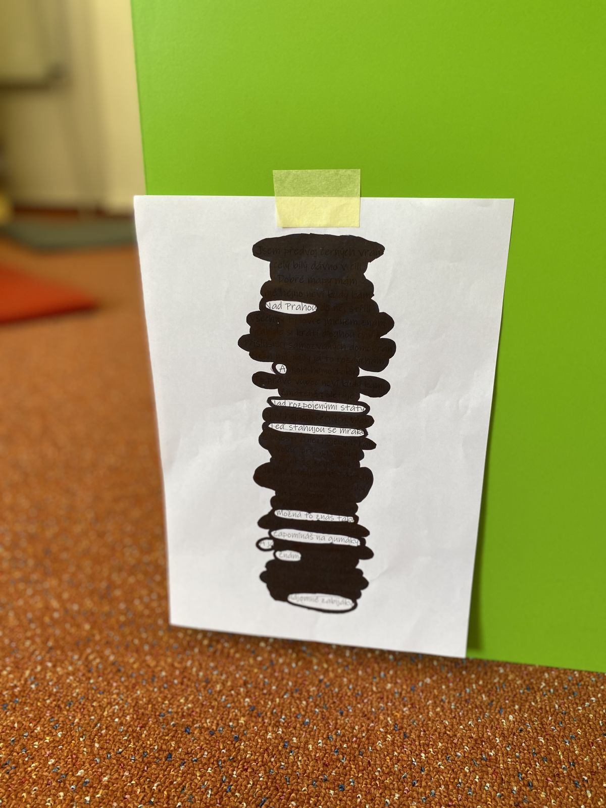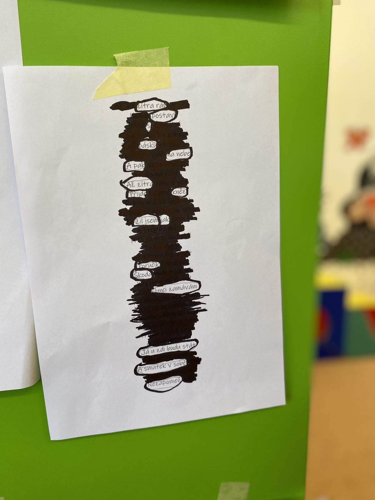 Hodiny českého jazyka v 8. třídě jsme předposlední školní týden pojali tvořivě. Navštívili jsme knihovnu, kde jsme si vytvořili báseň způsobem začerňovaní v původním textu, tzv. black out poetry. Další dny jsme pak tvořili scénáře a natáčeli reklamy na knihy. Na naše výtvory se můžete podívat uvnitř článku.