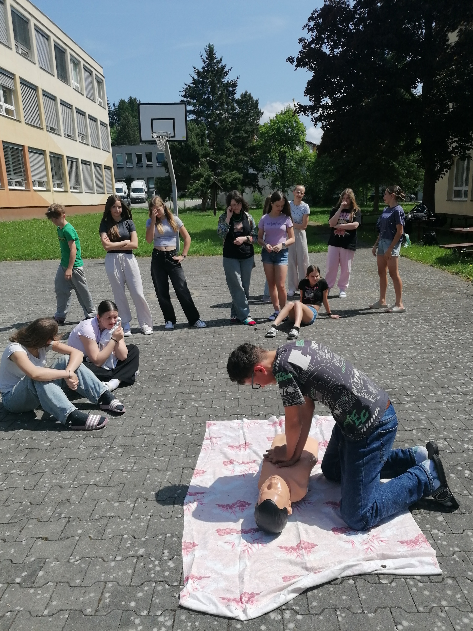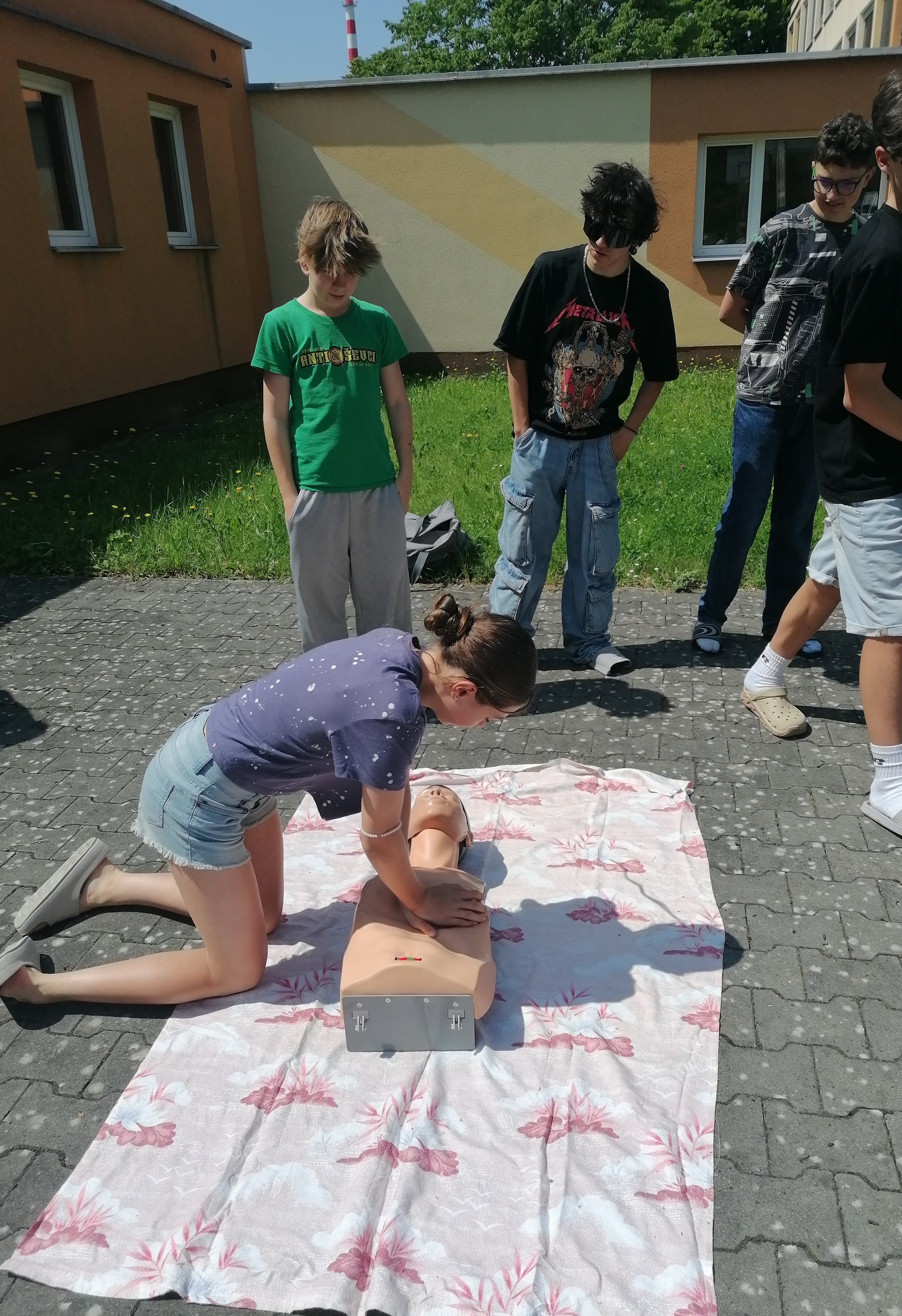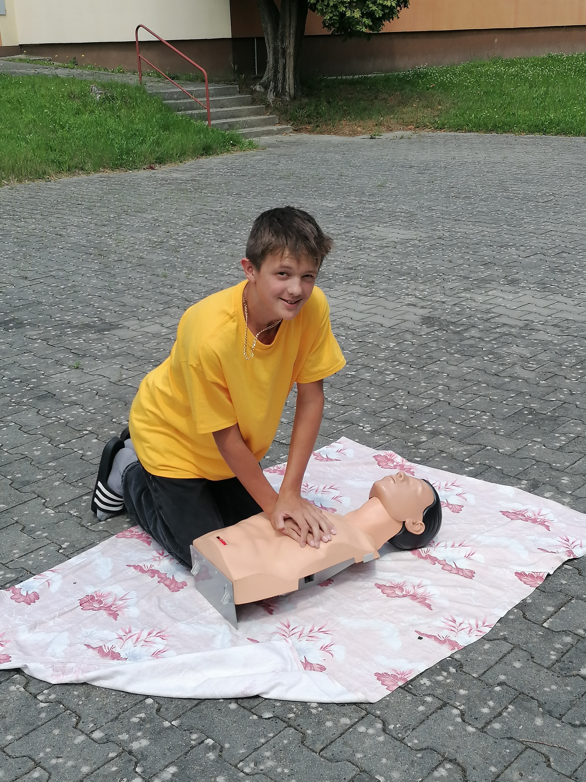 …i ty můžeš zachránit život. Je potřeba nepanikařit a rychle jednat. Naši osmáci si koncem školního roku zopakovali 1. pomoc při zástavě dechu, včetně uvolnění dýchacích cest a také nepřímou srdeční masáž. Šlo jim to skvěle! Mgr. Alena Brhlová