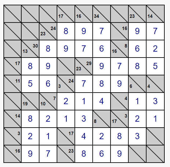 Tato logická číselná hra spočívá v doplňování čísel do prázdných políček. Součet čísel v každé svislé nebo vodorovné skupině musí být roven číslu uvedenému vlevo nebo nad touto skupinou. Do prázdných políček se vpisují čísla 1–9 a každé číslo v této skupině může být použito pouze jednou.
