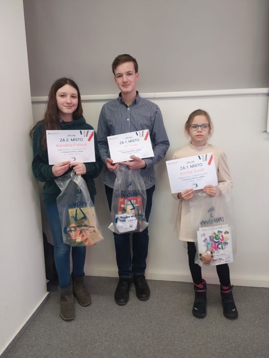 Emmě, Káji i Jirkovi moc gratulujeme a držíme pěsti, aby byly jejich práce stejně úspěšné i v krajském kole, jehož výsledky budou vyhlášeny koncem května.
