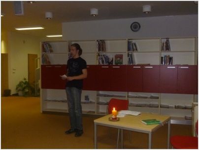 Takovou odvahu museli prokázat i Danka Baránková a Šimon Matějček z IX. B, když společně účinkovali 21. listopadu 2013 v Masarykově veřejné knihovně ve Vsetíně na celostátním festivalu „Den Poezie“. Četli zde své vlastní básně a dokázali otevřeně nabídnout veřejnosti svou nejniternější duševní zpověď, aby ukázali, jak silná dokáže poezie být: „Je to úmysl a trochu náhoda/stát se presidentem svého národa/stát se básníkem jenž předhonil nás všecky/stát se skřivánkem jenž ukrad jádro z pecky.“
