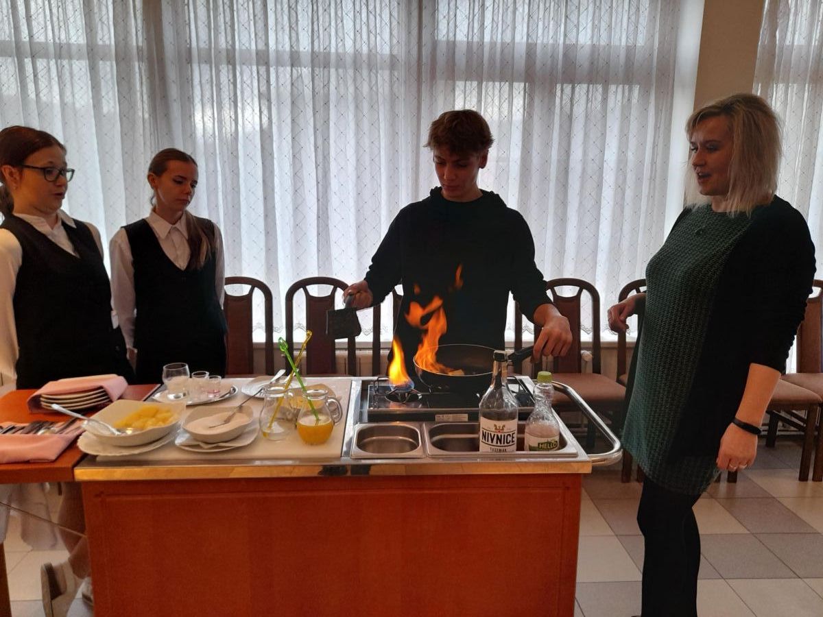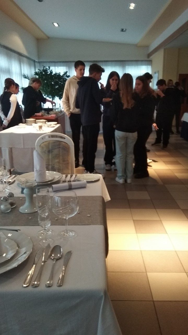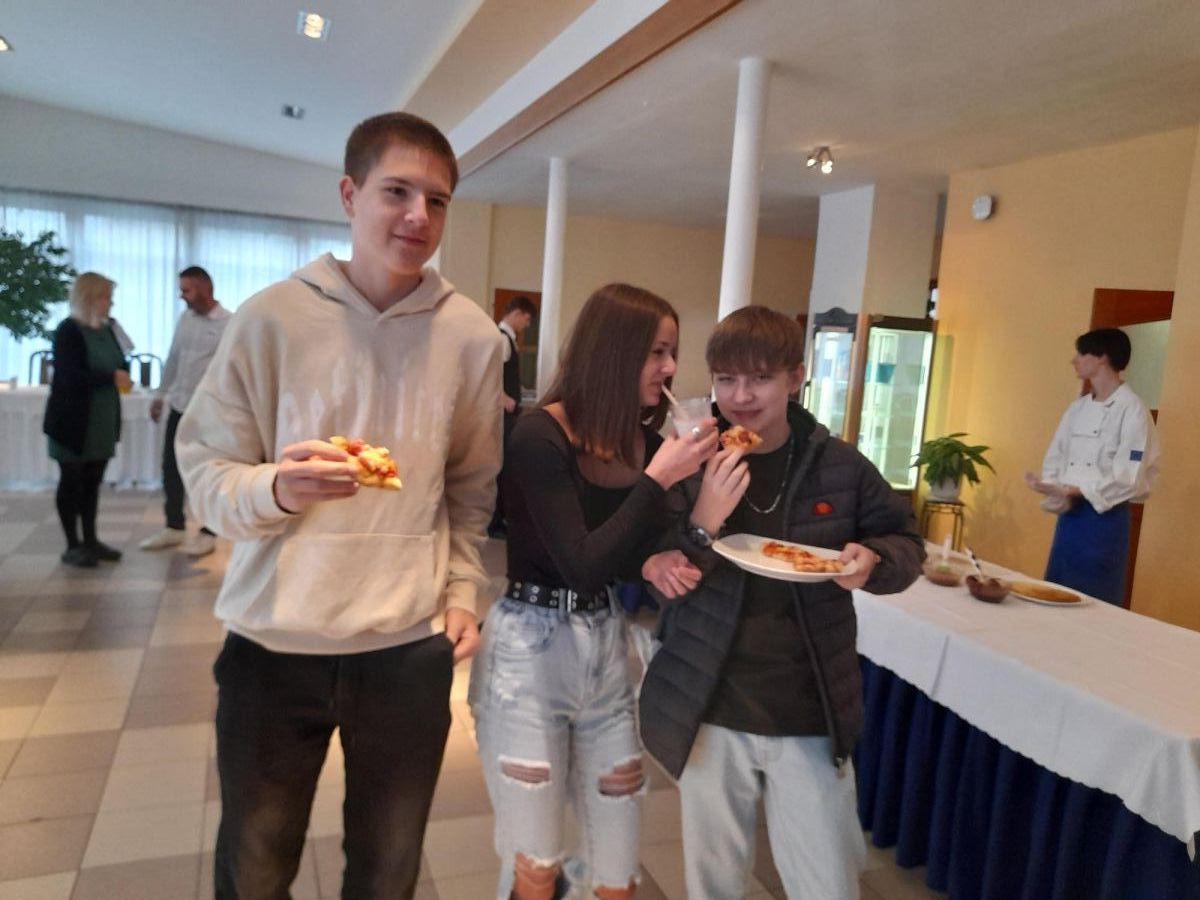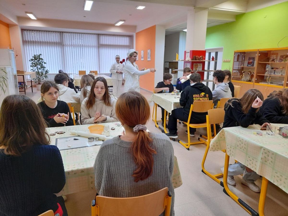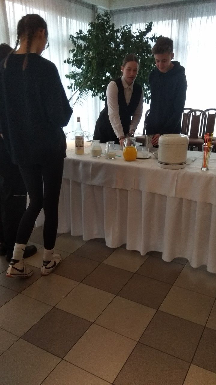 Když jsme přišli, tak nás příjemně uvítali a ukázali nám prezentaci o daném oboru gastronomie. Následovně jsme se přemístili do třetího patra, kde na nás čekala „zábava“. Mohli jsme si udělat pizzu, namíchat drinky, ochutnat palačinky nebo si zkusit flambovat ananas a připravit výborné kafé. Když jsme si prošli všechny prostory - přípravny, byl nám poskytnut výklad o etiketě - stolování v restauraci (ukázkou byl svatební stůl). V přízemí jsme se věnovali zdobení perníčků a tvarovali myšky z marcipánu. Za nás deváťáky, děkujeme za úžasnou akci s doprovodem paní učitelky Drahomíry Šeré.