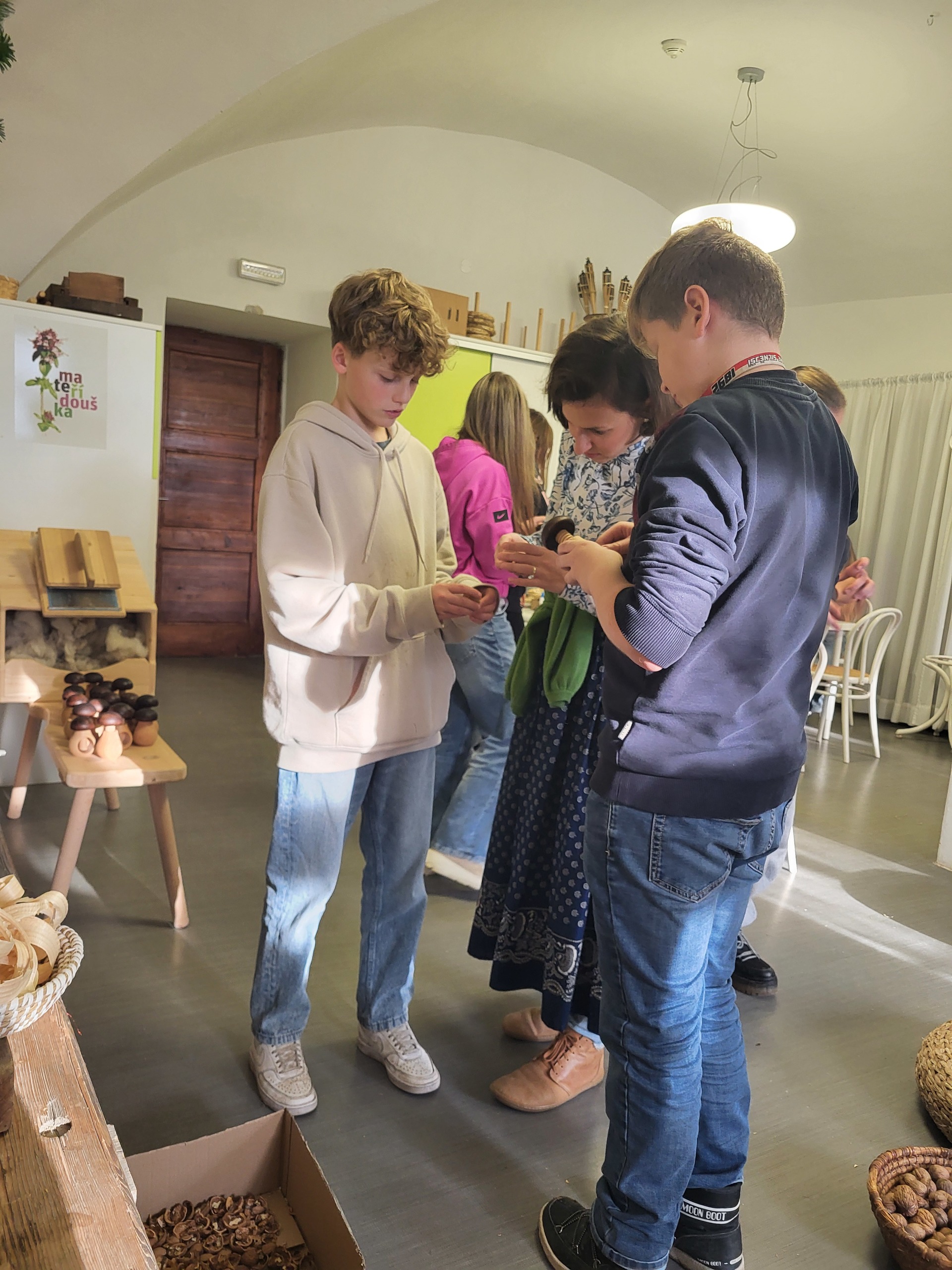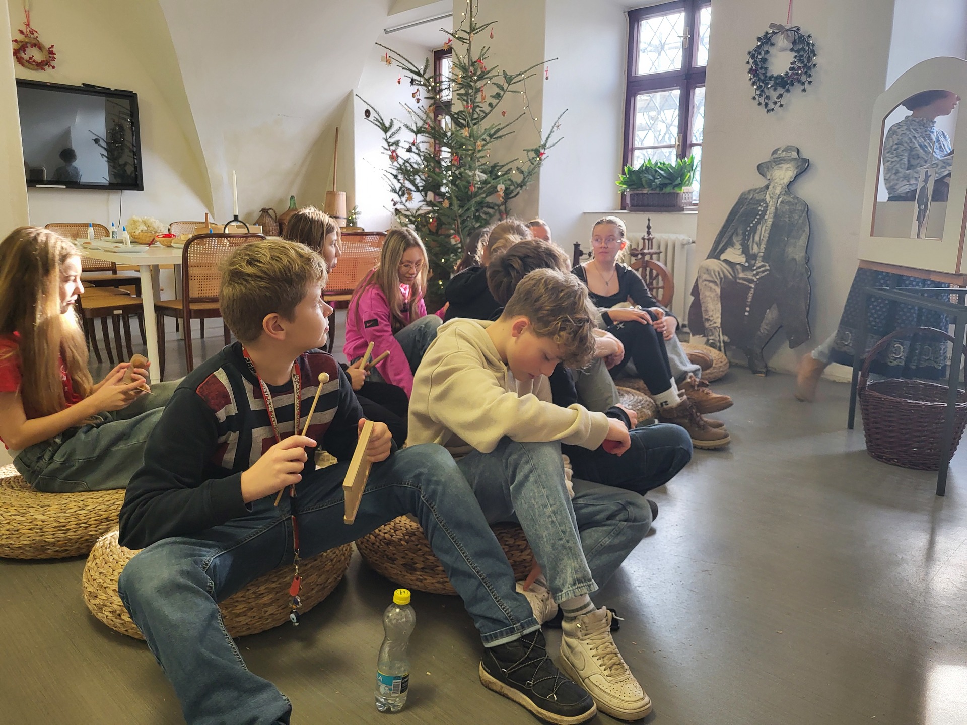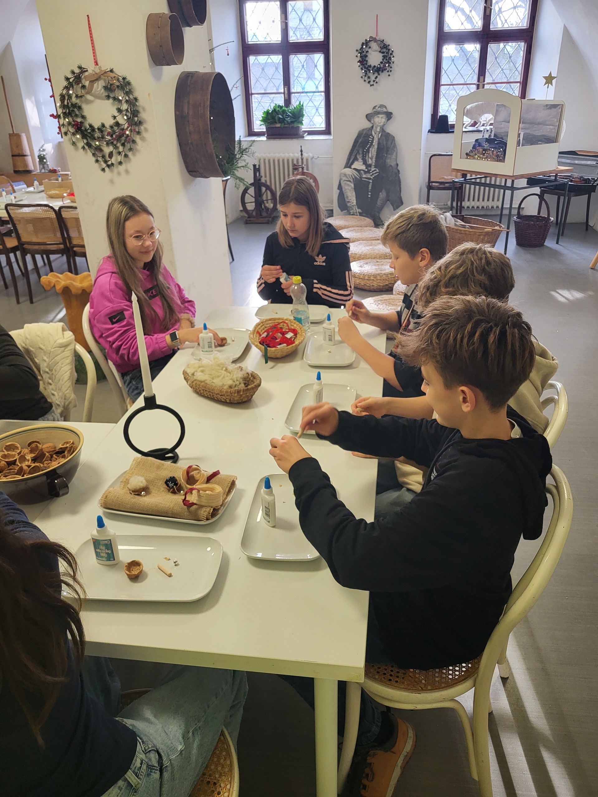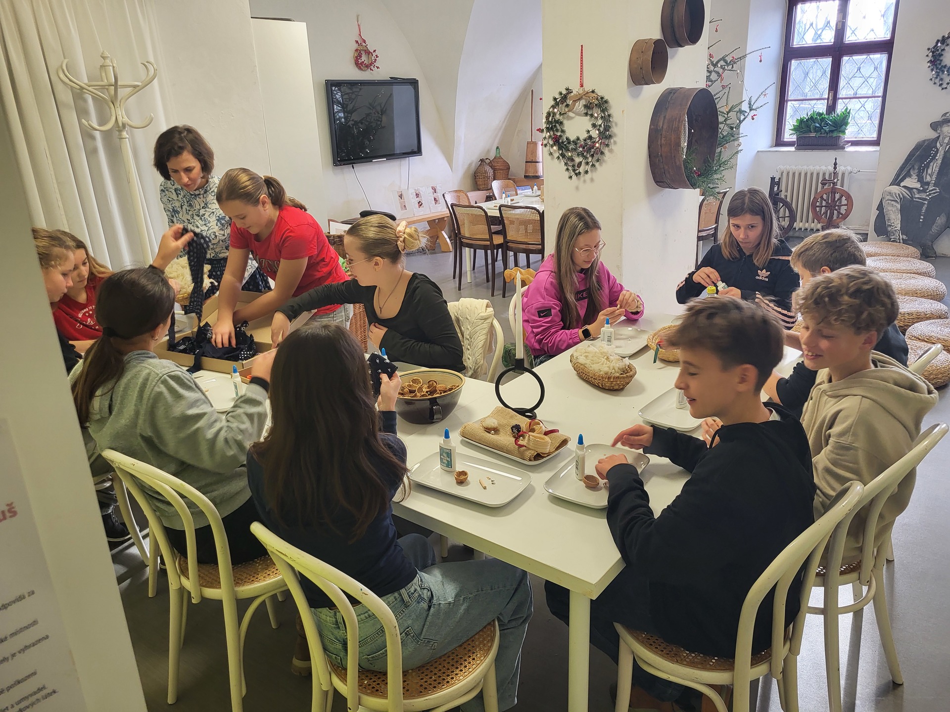 Louskání oříšků, tradiční loutkové divadlo, koledy, modrotisk, krpce, vizovické pečivo. To vše, a ještě víc, poznali žáci šestého ročníku na lektorském programu vsetínského zámku "Vánoce na Valašsku ". Žáci si vyzkoušeli také svoji zručnost, a z látky modrotisku si vyrobili krásnou ozdobu na stromeček ve skořápce z vlašského oříšku. Bylo krásné sledovat, jak v nás malý oříšek s rolničkou, dokázal zažehnout hřejivou vánoční atmosféru. Mgr. Zuzana Šerá