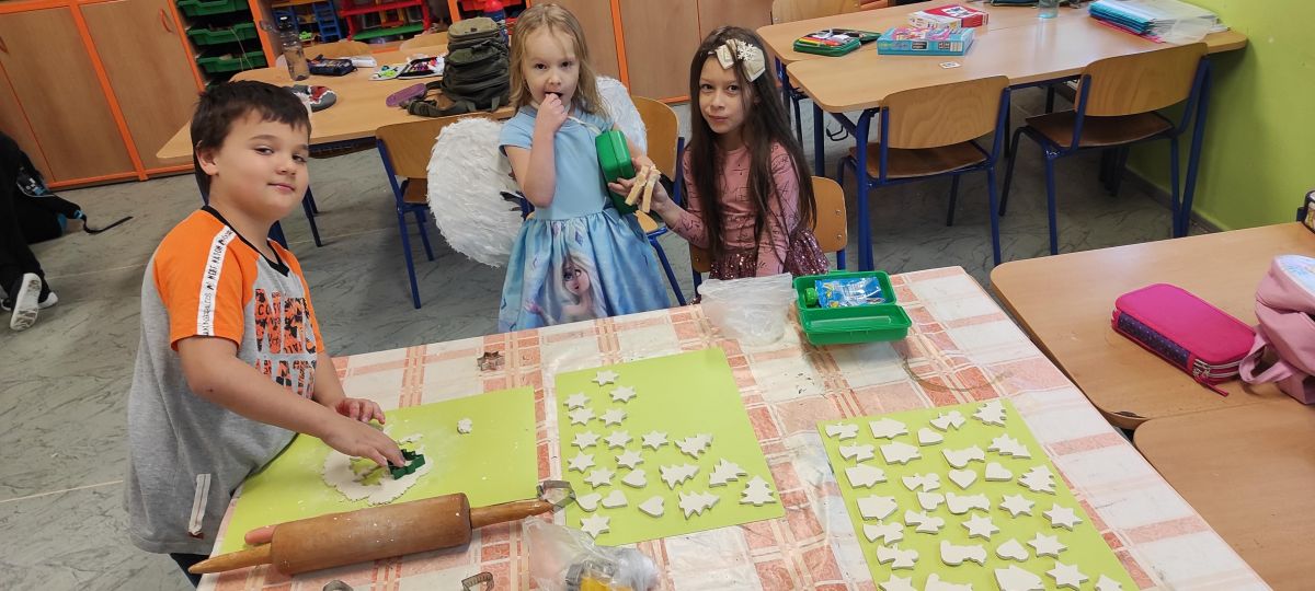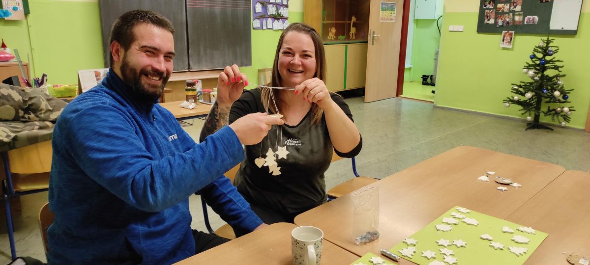 I my, děti z přípravné třídy, jsme se připravovali na vánoční akce, na jarmark. Vyráběli jsme věci na prodej doma i na společném tvoření ve škole. Na rodiče čekalo i malé překvapení v podobě písniček a tanečků a tím i malé odhalení toho, co všechno se za dveřmi přípravné třídy může odehrávat.