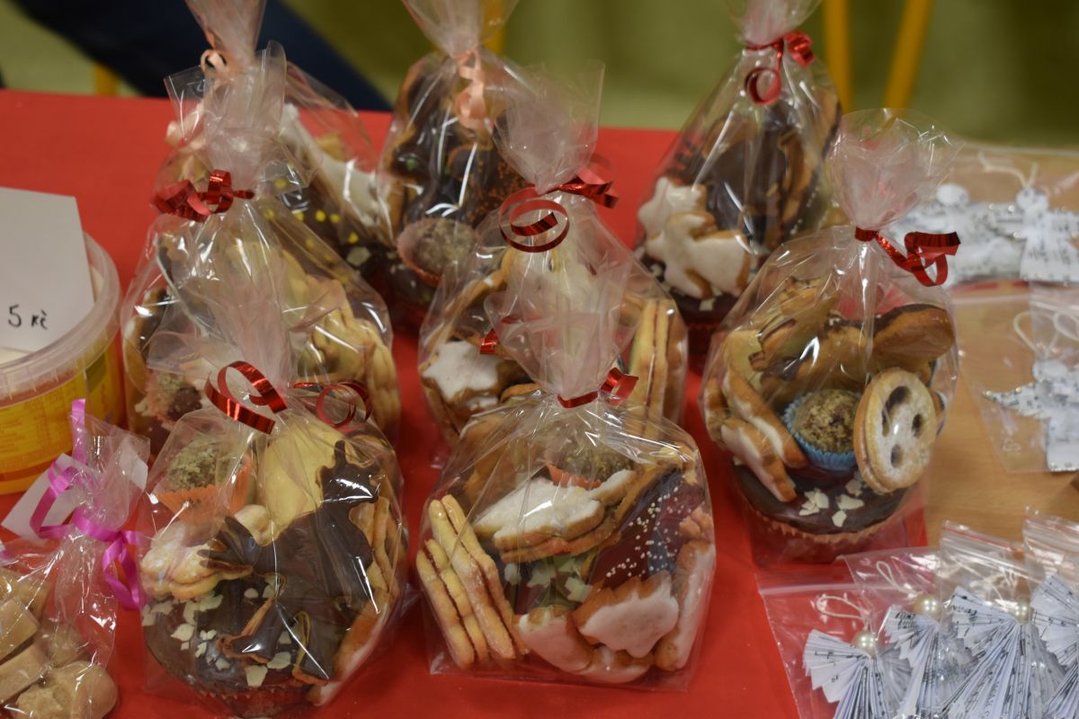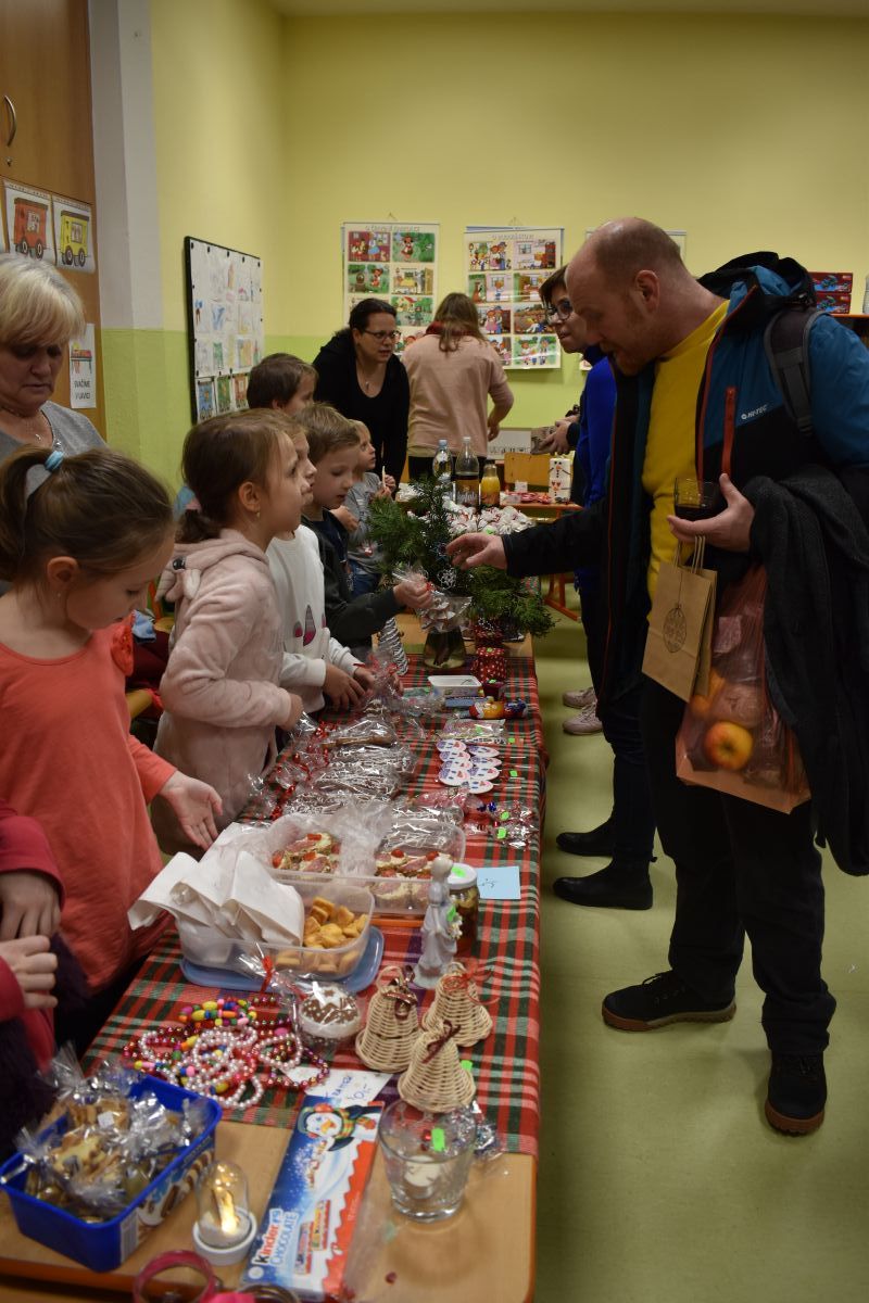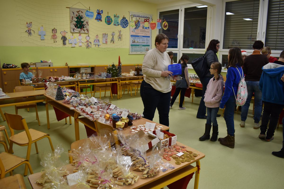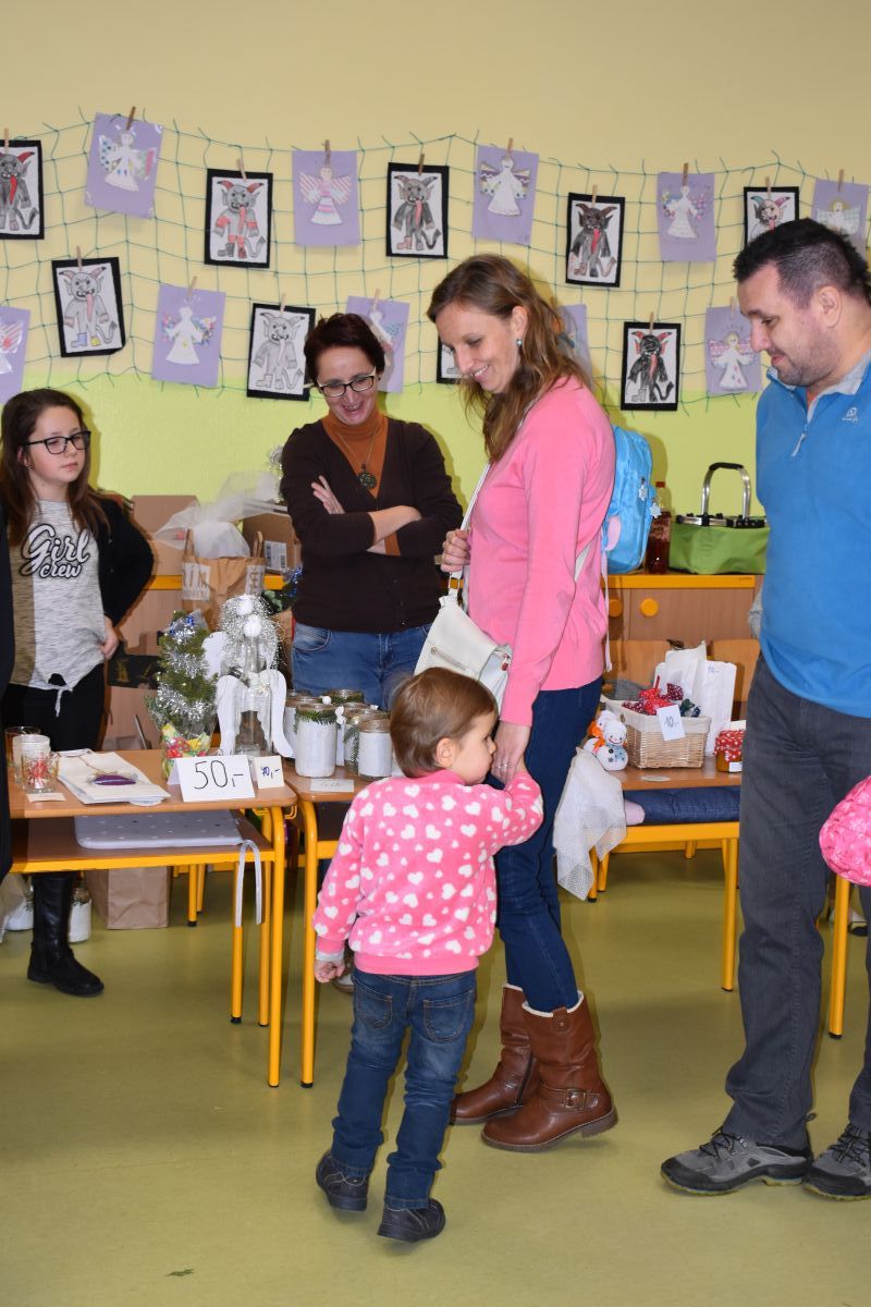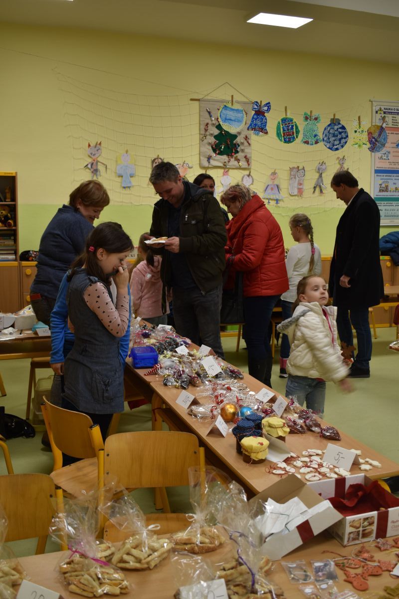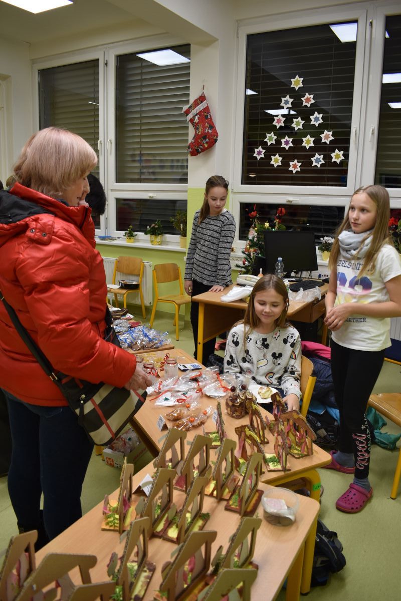 Jako každý rok se pavilon prvního stupně proměnil na vánoční městečko, které lákalo návštěvníky rozličnými vůněmi, dobrotami, dárečky, koledami v živém Betlémě.