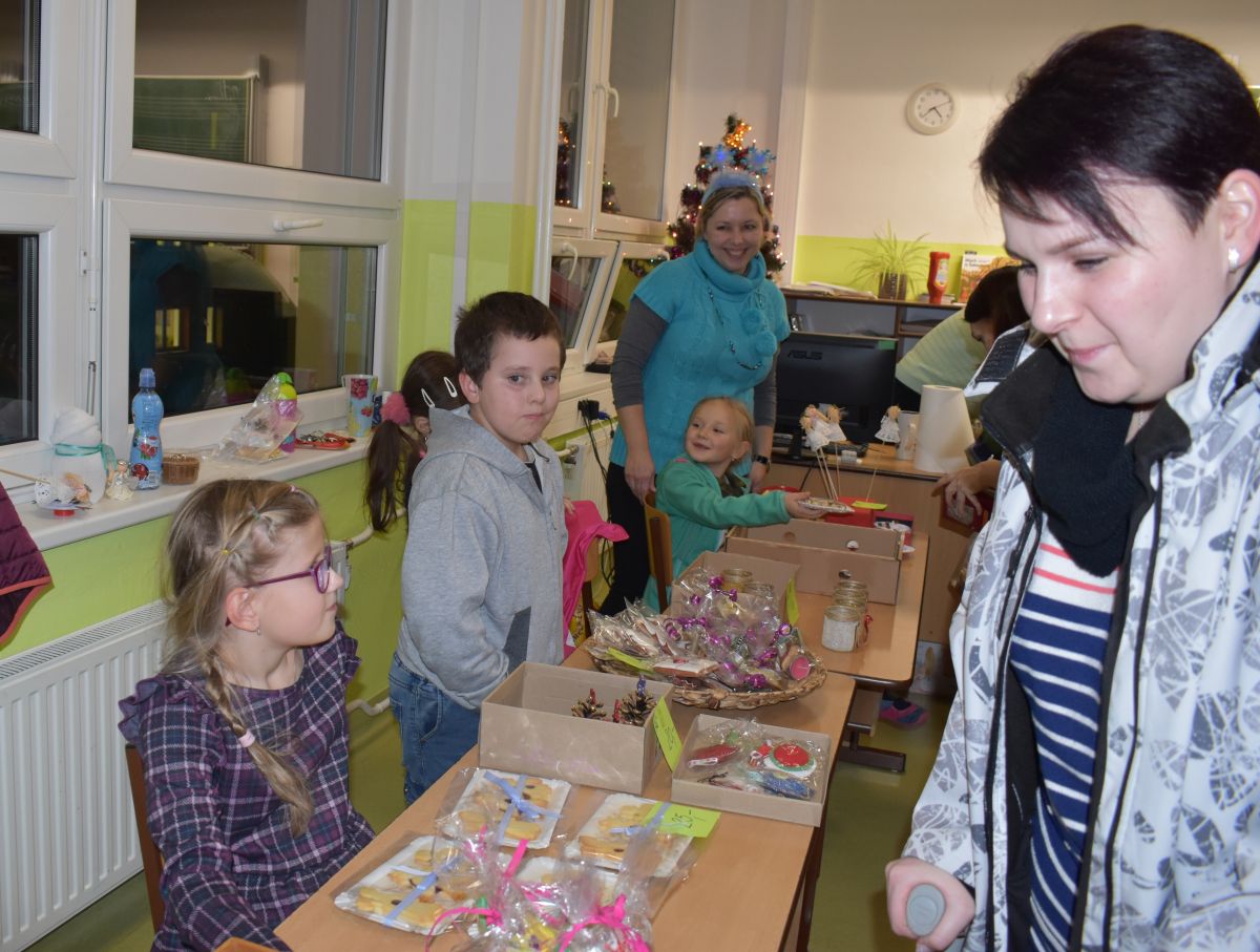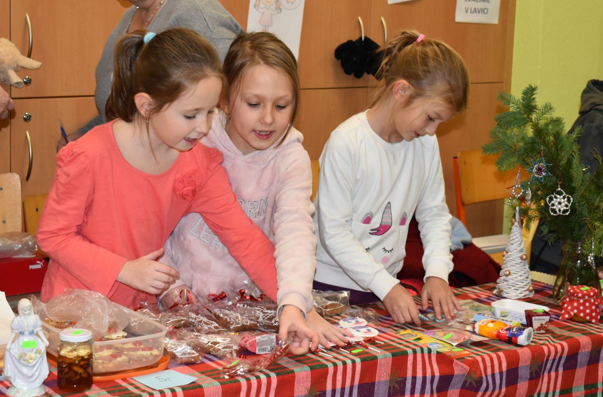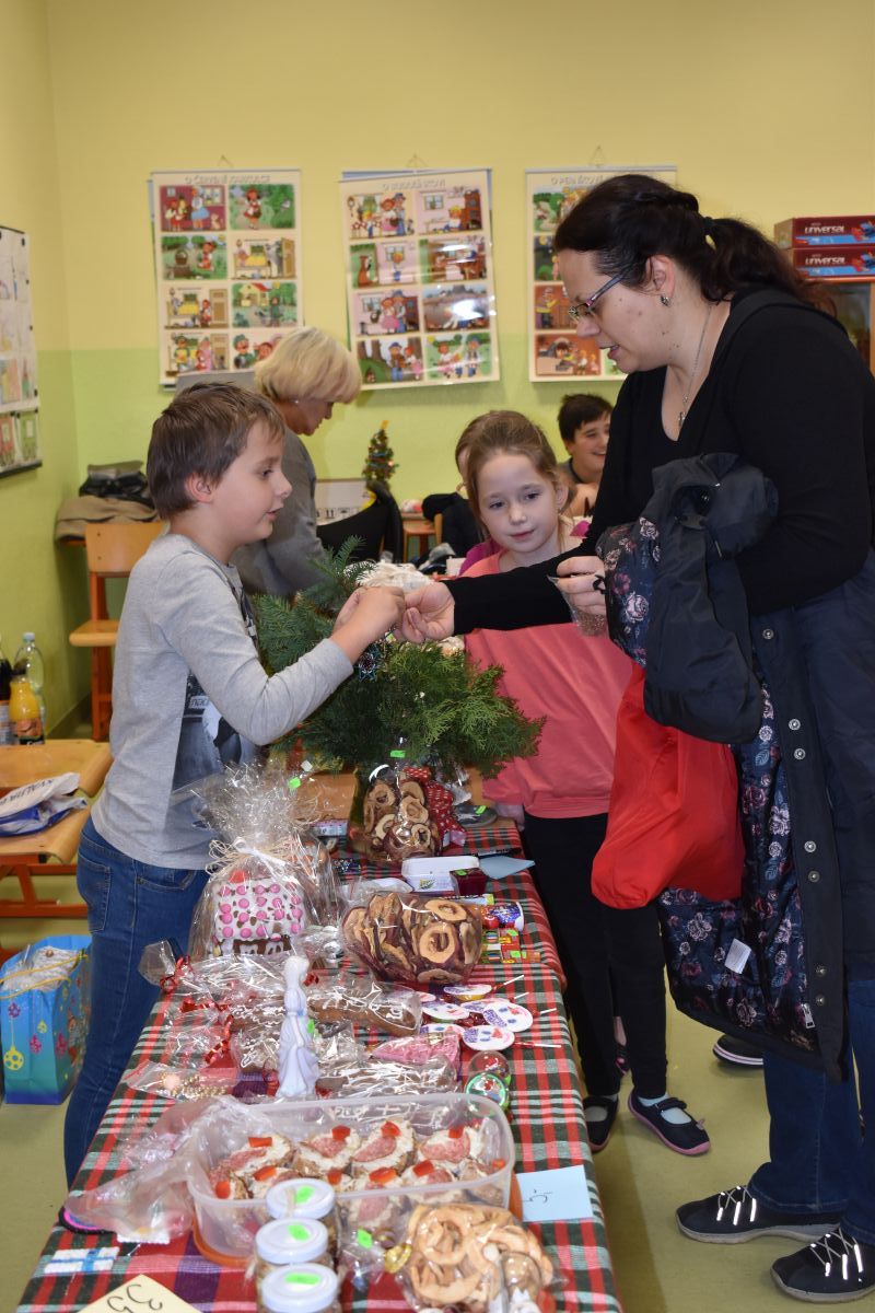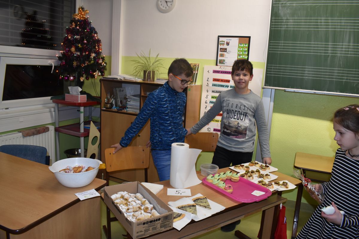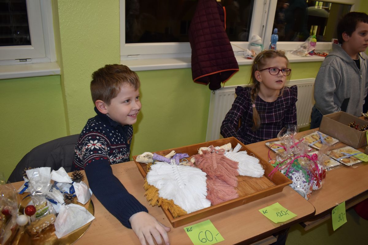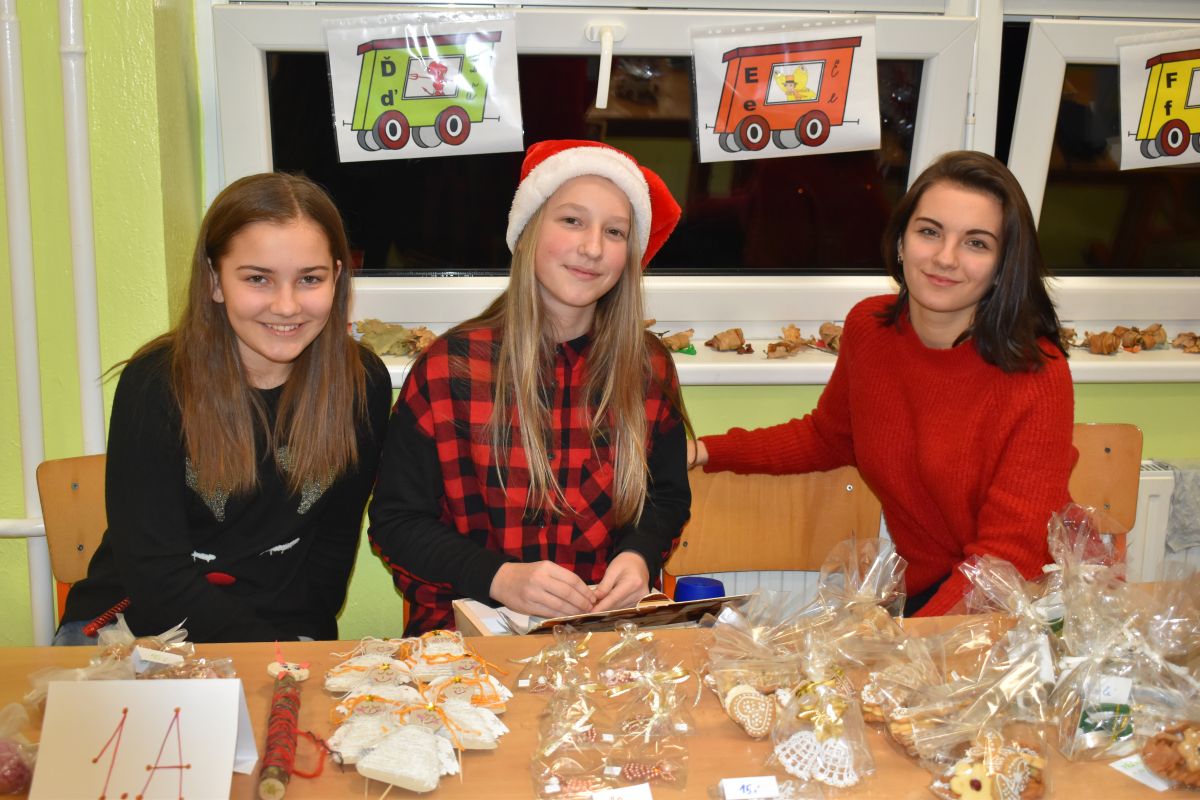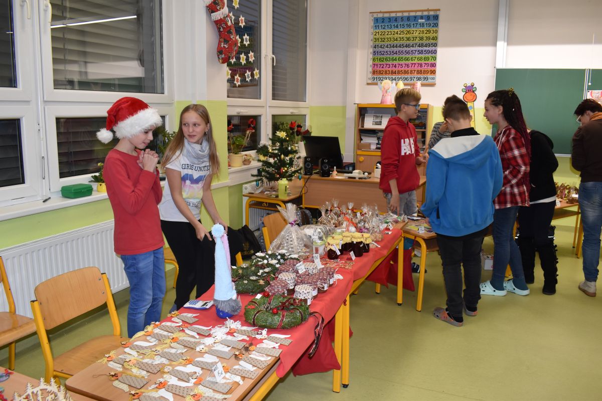 Jako každý rok se pavilon prvního stupně proměnil na vánoční městečko, které lákalo návštěvníky rozličnými vůněmi, dobrotami, dárečky, koledami v živém Betlémě.