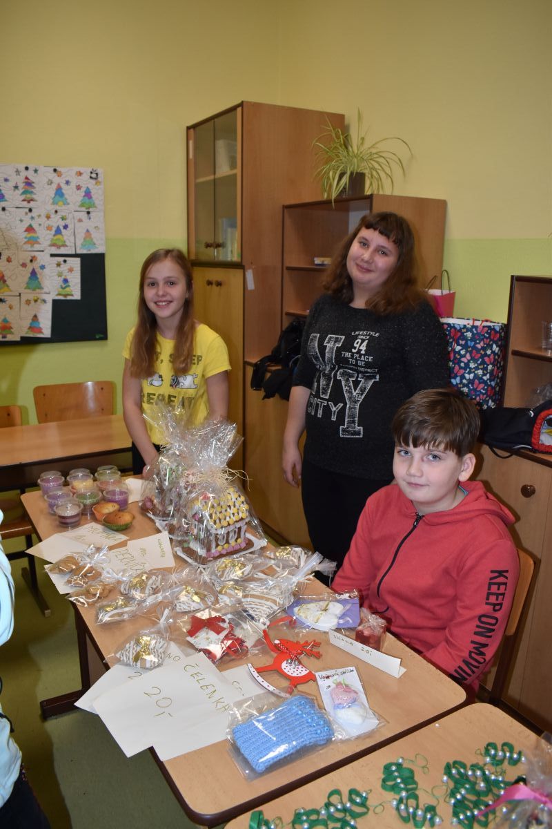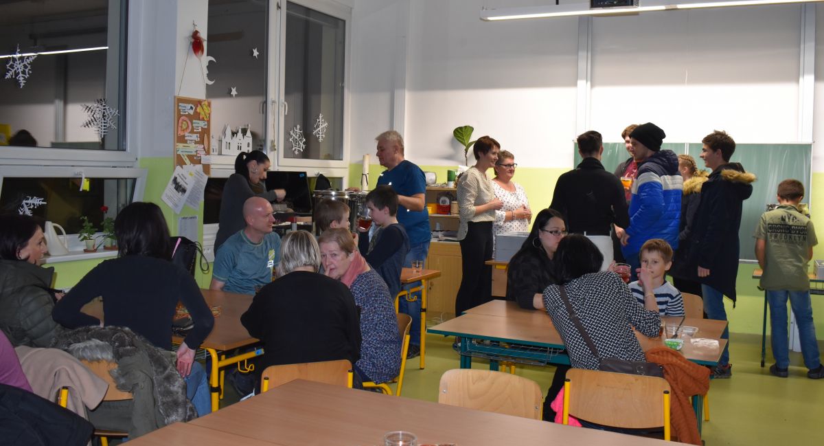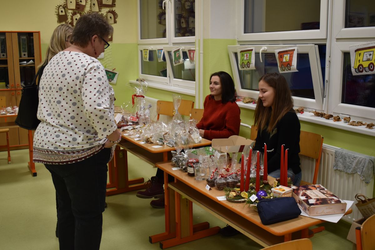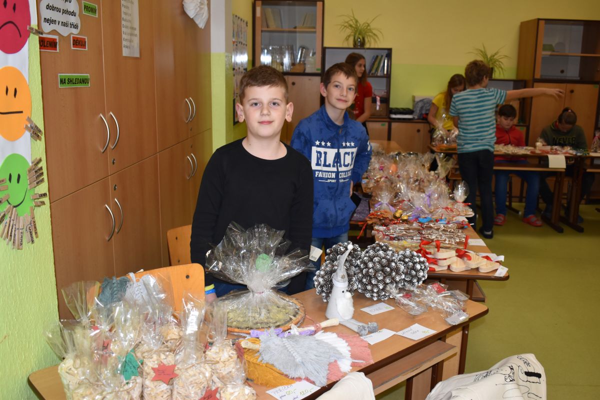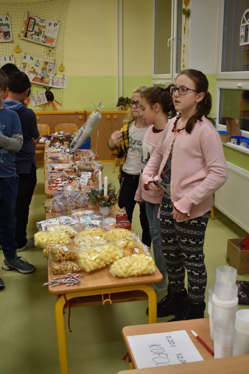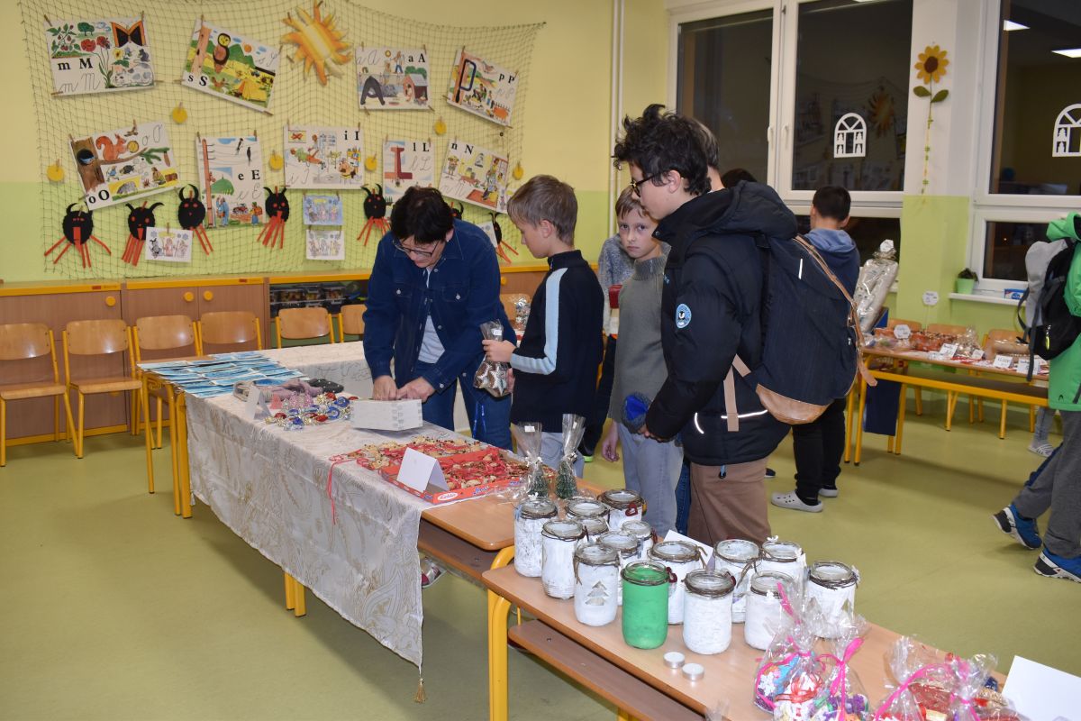 Jako každý rok se pavilon prvního stupně proměnil na vánoční městečko, které lákalo návštěvníky rozličnými vůněmi, dobrotami, dárečky, koledami v živém Betlémě.