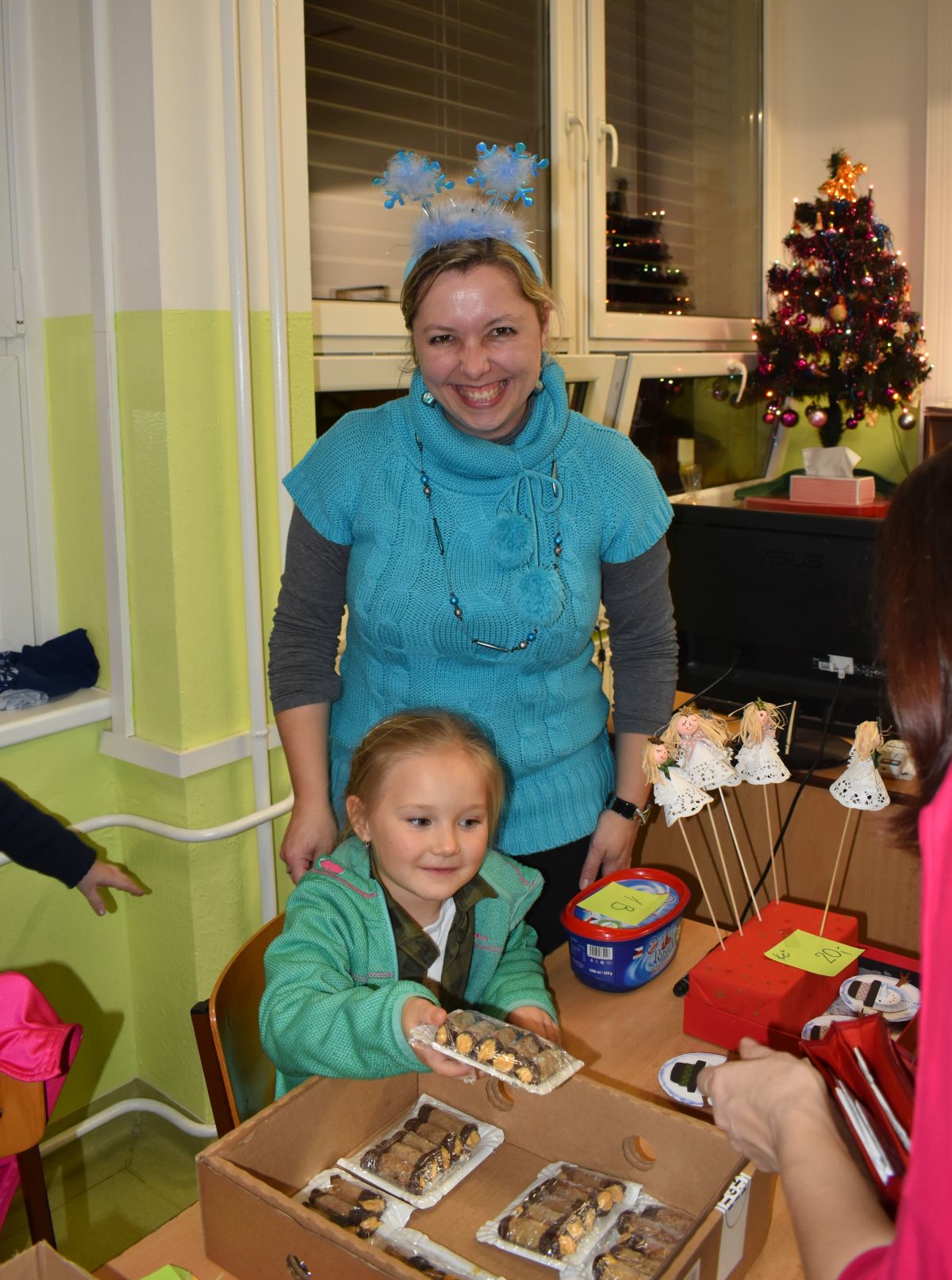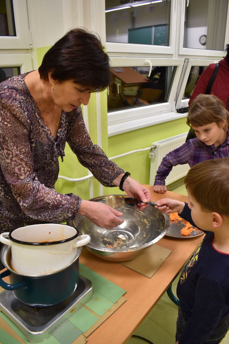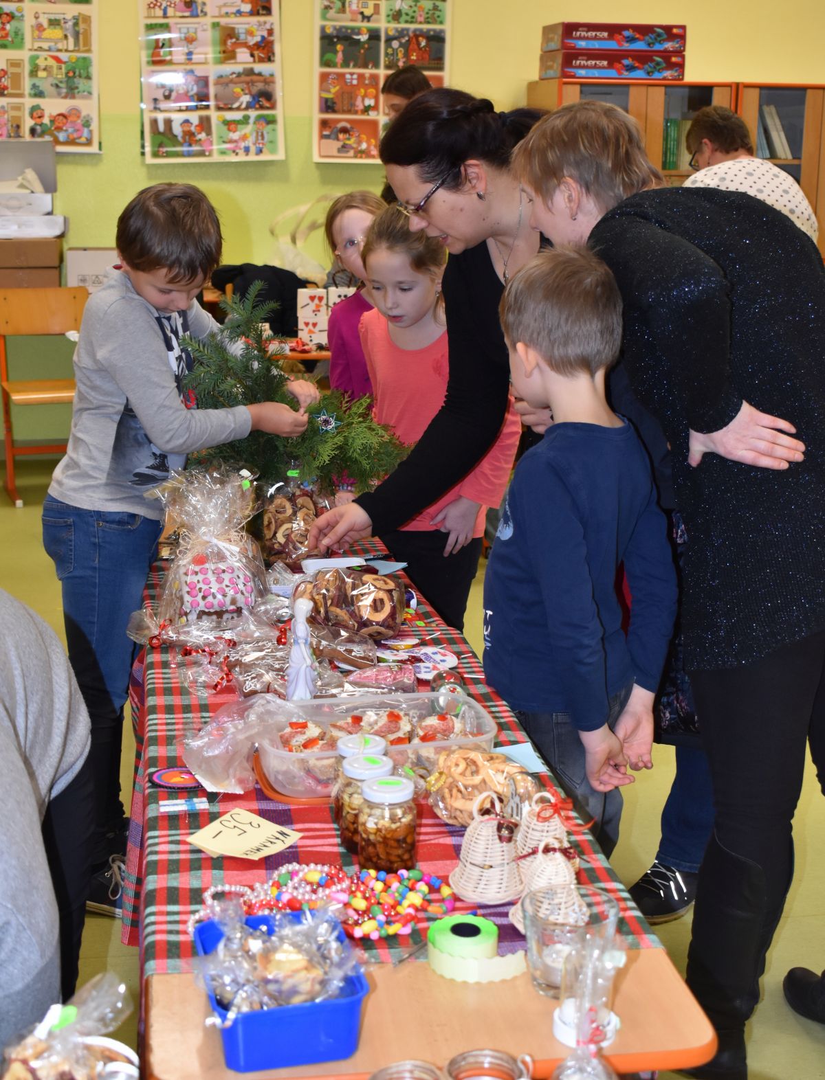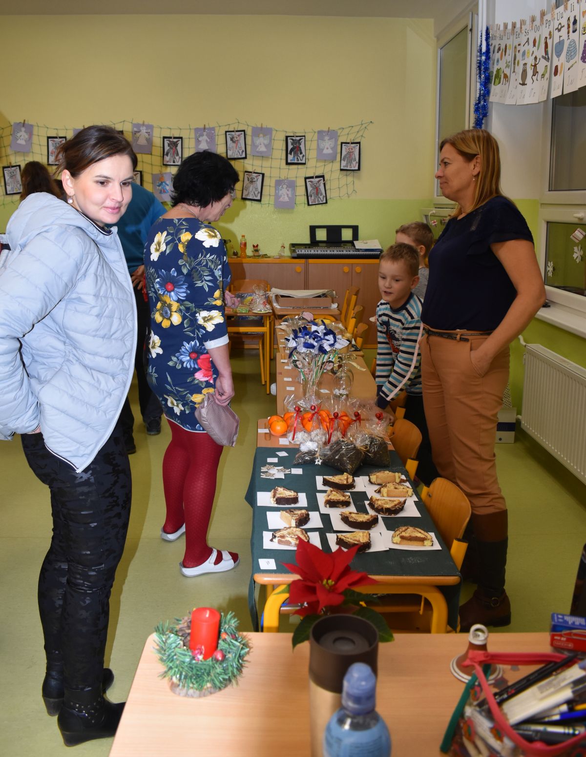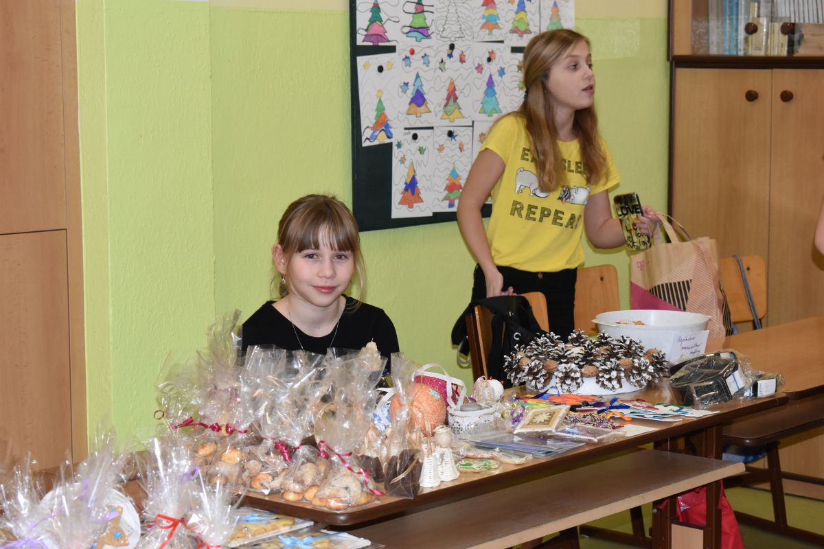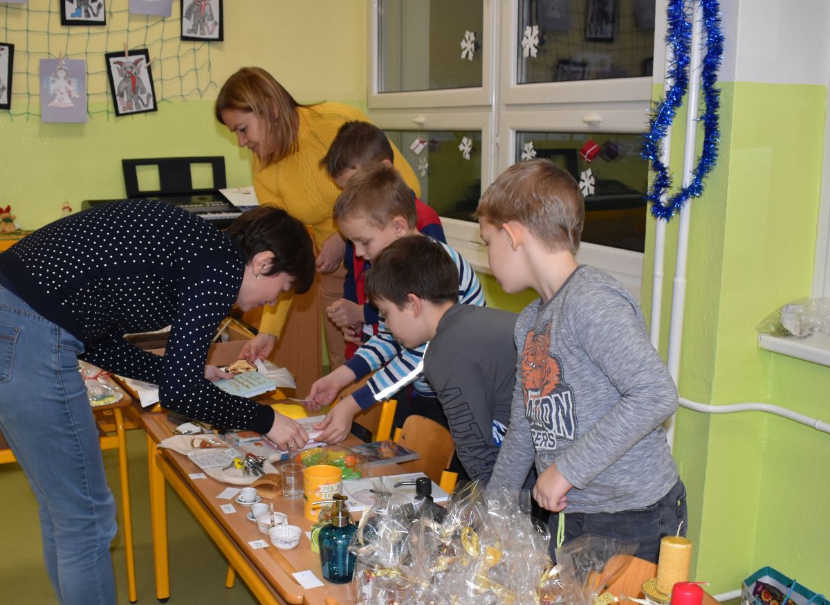 Jako každý rok se pavilon prvního stupně proměnil na vánoční městečko, které lákalo návštěvníky rozličnými vůněmi, dobrotami, dárečky, koledami v živém Betlémě.